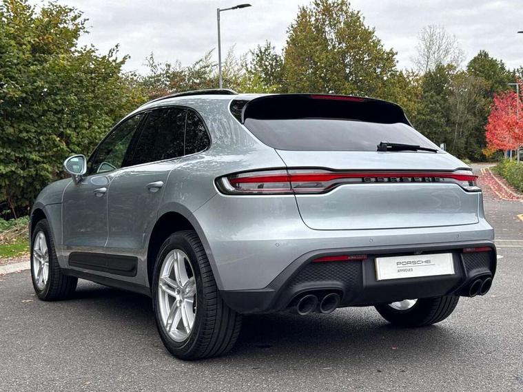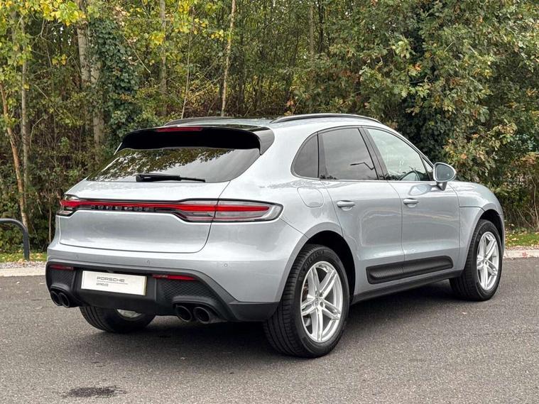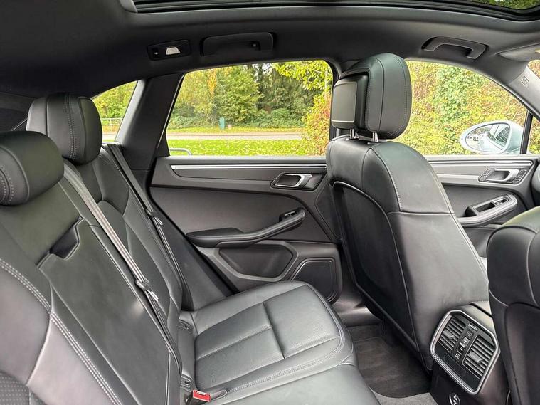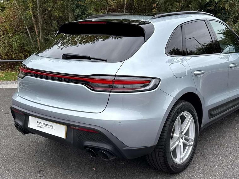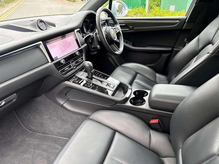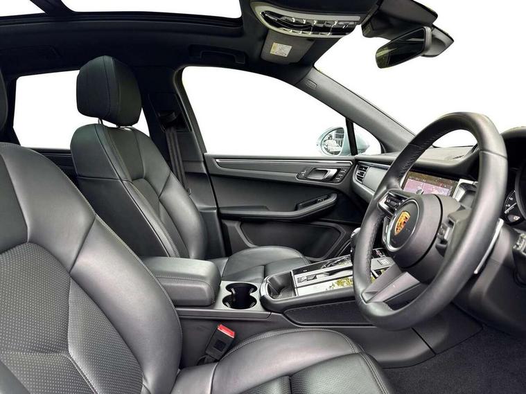 Analogue clock on dashboard, Automatic start/stop system, Automatic tailgate, eCall emergency call system, Instrument cluster with high resolution 4.8-inch TFT display, gear indicator for PDK, service interval display, external temperature indicator, fuel gauge, Off-road button, On board computer, Porsche Communication Management (PCM) including online navigation module, mobile phone preparation, audio interfaces and voice control system, Sports button in centre console, 7-Speed Porsche Doppelkupplung (PDK) with automatic mode and manual controls (gearshift paddles) on steering wheel, Direct fuel injection (DFI), Gasoline particulate filter, VarioCam camshaft control for inlet and exhaust valves, 2 USB sockets in rear centre console, Apple CarPlay with Siri voice recognition, Connect Plus including online navigation, LTE communication module with SIM card reader, wireless internet access, Porsche Car Connect services, DAB Digital radio, Porsche Vehicle Traking System Plus (PVTS Plus), Smartphone compartment with wireless charging, Two USB C charging and connectivity ports in the front centre console storage compartment, Active radiator grille shutters, Automatic headlight activation including welcome home lighting, Bumper system with high strength cross members and two deformation elements + One threaded fixture point for towing eye contained in onboard tool kit, Dynamic cornering lights, speed-sensitive headlight and dynamic range control, adverse weather function, four-point LED daytime running lights, Electric front and rear windows with remote closing function + anti trap + one touch, Electrically folding and heated exterior mirrors, Front light modules with LED position lights and direction indicators, Front windscreen wipers with two speeds, intermittent wipe and rain sensor, Front with integrated cooling air intakes, Fully galvanised body, Heated rear window with automatic switch off, High level 3rd LED brake light integrated into roof spoiler, Loading edge protection in aluminium, Rear side wing doors, Rear window wiper with intermittent function and washer jet, Roof spoiler in high gloss black, Towbar preparation, 3 adjustable rear headrests, 3 rear seats, 4 way adjustable front head restraints, 40:20:40 split folding rear bench seat, Cloth hook b-pillar, Fold up centre console armrest with fore/aft adjustment, Front and rear bottle holders in door panels, Front passenger seat, Glove compartment, Isofix fastening system for child seats on outer rear seats, Luggage compartment cover, Particle/pollen filter with active carbon filter, Rear armrest with 2 cupholders, Storage bin in centre console, Storage compartment in side of luggage compartment and storage compartment in spare wheel recess, Storage pocket in front and rear doors, Two integrated cup holders in front with variable diameter, Two socket 12V power outlets in front console and luggage compartment, Uncovered storage compartment in centre console, Ambient comfort lighting pack - Macan, Lower exterior trim package in black - Macan, 3-point automatic seatbelts with front and outer rear seats pretensioners and force limiter + manually height adjustable seatbelt + reminder warning, Auto hold function, Black painted brake calipers, Child locks on rear doors, Curtain airbags along entire roof frame and side windows from A pillar to the C pillar, Electronic parking brake, Front passenger airbag deactivation facility for installation of child seats indicator in overhead console, Front side airbags integrated into seat, Full size driver and passenger airbags, Internally vented brake discs with diameter of 350mm at front and 330mm at rear, Multi-Collision braking, Porsche hill control (PHC), PTM(Porsche Traction Management) and All-wheel drive with map-controlled multi-plate clutch, Roll over sensor for curtain airbag and seatbelt pretensioners, Side impact protection in doors, Tyre pressure monitoring system, Vehicle stability system, Porsche stability management (PSM) including ABS, ASR, ABD, MSR and trailer stability management, Vented discs brake with 4 piston aluminium monobloc fixed caliper at front, Vented discs brake with combination floating calipers at rear, Alarm system with ultrasonic interior surveillance, Dashcam prep, Engine immobiliser with key transponder, Remote control central locking, Accent trims with silver coloured finish, Tyre repair kit,