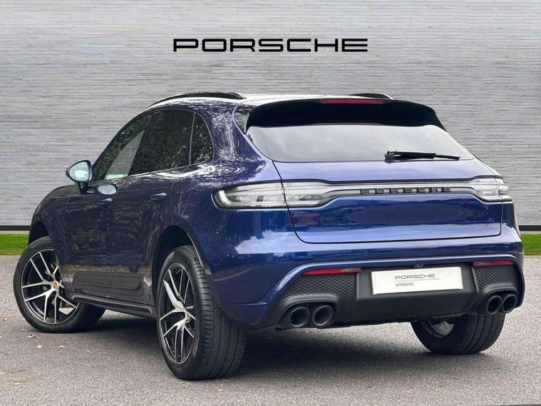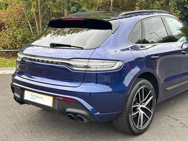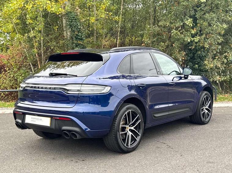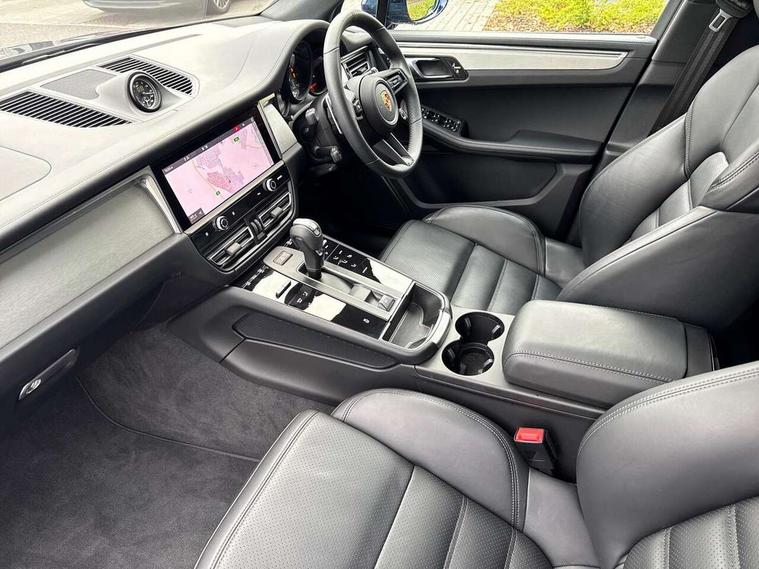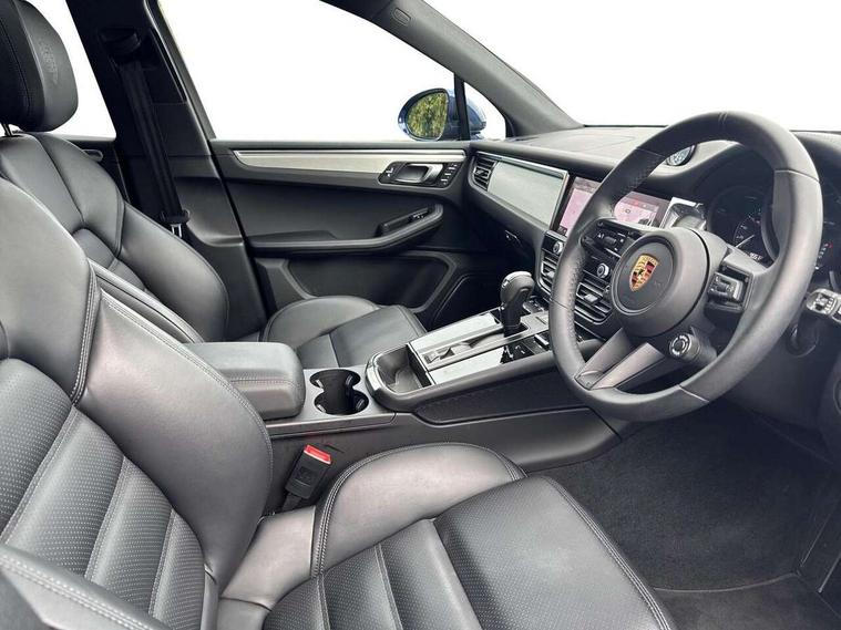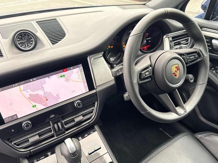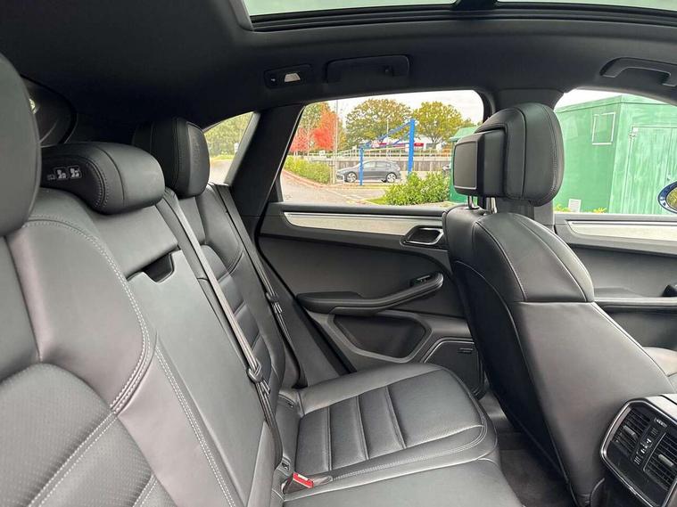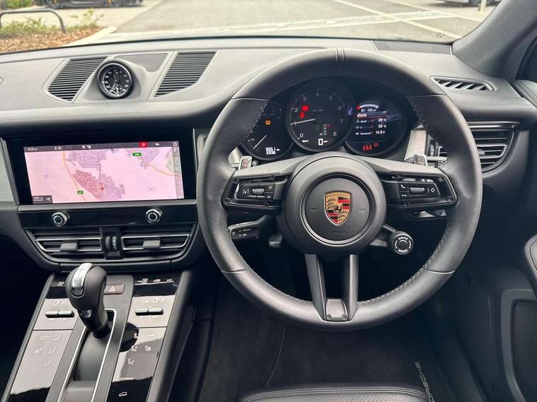 Analogue clock on dashboard, Automatic start/stop system, Automatic tailgate, eCall emergency call system, Instrument cluster with high resolution 4.8-inch TFT display, gear indicator for PDK, service interval display, external temperature indicator, fuel gauge, Off-road button, On board computer, Porsche Communication Management (PCM) including online navigation module, mobile phone preparation, audio interfaces and voice control system, Sports button in centre console, 7-Speed Porsche Doppelkupplung (PDK) with automatic mode and manual controls (gearshift paddles) on steering wheel, Direct fuel injection (DFI), Gasoline particulate filter, VarioCam camshaft control for inlet and exhaust valves, 2 USB sockets in rear centre console, Apple CarPlay with Siri voice recognition, Connect Plus including online navigation, LTE communication module with SIM card reader, wireless internet access, Porsche Car Connect services, DAB Digital radio, Porsche Vehicle Traking System Plus (PVTS Plus), Smartphone compartment with wireless charging, Two USB C charging and connectivity ports in the front centre console storage compartment, Active radiator grille shutters, Automatic headlight activation including welcome home lighting, Bumper system with high strength cross members and two deformation elements + One threaded fixture point for towing eye contained in onboard tool kit, Dynamic cornering lights, speed-sensitive headlight and dynamic range control, adverse weather function, four-point LED daytime running lights, Electric front and rear windows with remote closing function + anti trap + one touch, Electrically folding and heated exterior mirrors, Front light modules with LED position lights and direction indicators, Front windscreen wipers with two speeds, intermittent wipe and rain sensor, Front with integrated cooling air intakes, Fully galvanised body, Heated rear window with automatic switch off, High level 3rd LED brake light integrated into roof spoiler, Loading edge protection in aluminium, Rear side wing doors, Rear window wiper with intermittent function and washer jet, Roof spoiler in high gloss black, Towbar preparation, 3 adjustable rear headrests, 3 rear seats, 3 zone auto climate control separate temperature setting+air recirculation include quality sensor, airflow regulation+AC MAX button+humidity sensor, 4 way adjustable front head restraints, 40:20:40 split folding rear bench seat, Cloth hook b-pillar, Fold up centre console armrest with fore/aft adjustment, Front and rear bottle holders in door panels, Front passenger seat, Glove compartment, Isofix fastening system for child seats on outer rear seats, Luggage compartment cover, Particle/pollen filter with active carbon filter, Rear armrest with 2 cupholders, Storage bin in centre console, Storage compartment in side of luggage compartment and storage compartment in spare wheel recess, Storage pocket in front and rear doors, Two integrated cup holders in front with variable diameter, Two socket 12V power outlets in front console and luggage compartment, Uncovered storage compartment in centre console, Ambient comfort lighting pack - Macan, Lower exterior trim package in black - Macan, 3-point automatic seatbelts with front and outer rear seats pretensioners and force limiter + manually height adjustable seatbelt + reminder warning, Auto hold function, Black painted brake calipers, Child locks on rear doors, Curtain airbags along entire roof frame and side windows from A pillar to the C pillar, Electronic parking brake, Front passenger airbag deactivation facility for installation of child seats indicator in overhead console, Front side airbags integrated into seat, Full size driver and passenger airbags, Internally vented brake discs with diameter of 350mm at front and 330mm at rear, Multi-Collision braking, Porsche hill control (PHC), PTM(Porsche Traction Management) and All-wheel drive with map-controlled multi-plate clutch, Roll over sensor for curtain airbag and seatbelt pretensioners, Side impact protection in doors, Tyre pressure monitoring system, Vehicle stability system, Porsche stability management (PSM) including ABS, ASR, ABD, MSR and trailer stability management, Vented discs brake with 4 piston aluminium monobloc fixed caliper at front, Vented discs brake with combination floating calipers at rear, Alarm system with ultrasonic interior surveillance, Dashcam prep, Engine immobiliser with key transponder, Remote control central locking, Accent trims with silver coloured finish,