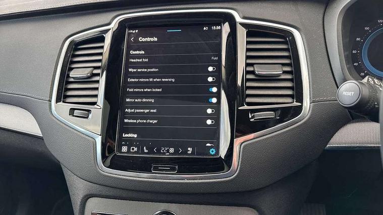 12.3" Progressive Driver Display, 360 degree surround view parking camera with side proximity sensors, 9" centre console portrait touch screen, Adjustable steering wheel force, Bluetooth hands free telephone connection, Driver alert control with lane keeping aid, Driver assistance (pilot assist and adaptive cruise control), Driver awareness - Blind spot information system with steer assist, cross traffic alert with autobrake and rear collision warning and mitigation, Emergency call service, Front and rear park assist, Google Automotive Services - Navigation with Voice recoginition and google assistant, Handsfree power tailgate opening and closing, Oncoming Lane Mitigation, Power operated tailgate, Service interval indicator, Speed limiter, Speed sensitive steering, Trip computer, Volvo on call, Wireless Mobile Phone Charger, 8 speed automatic transmission with start/stop + manual change functions, Touring chassis, DAB Radio (Digital Audio Broadcasting), Premium Sound by Harman Kardon, dirac unison, dolby pro logic II surround sound, 13 speakers/600W output and fresh air subwoofer, Steering wheel remote infotainment controls, Active bending headlights with adaptive shadow technology, Adaptive brake lights with high level LED brake lights, Auto dimming interior + exterior mirrors, Auto folding and heated power door mirrors, Automatic headlight levelling system, Automatic LED Headlights + Active high beam incorporating daytime running lights, Body colour bumpers, Front and rear power windows, Headlight cleaning system, Heated front windscreen, High gloss black door mirrors and window surround, High gloss black front and rear bumper deco, High gloss black mesh front grille with surround, Home safe and approach lighting, Integrated roof rails in high gloss black, LED front fog lights with cornering light function, Power glass tilt and slide panoramic sunroof with sun curtain, Puddle lights, Rain sensor with automatic windscreen wiper activation, Rear side wing doors, Rear wash/wipe with intermittent wipe setting, Roof antenna, Roof spoiler, Visible VIN plate, 12V socket front tunnel console, rear passenger compartment and cargo area, 2 seat bench in 3rd row, 2nd Row centre armrest with and cupholders, 3 seat bench in 2nd row, 4 zone electronic climate control with Clean zone air quality system + pollen filter, A-pillar parking ticket holder, Advanced interior air cleaner PM2.5, Air conditioning for 3rd row of seats, Ambient door and instrument panel lighting, B Pillar ventilation, Bright metal luggage threshold, Centre console cupholders and storage, Floor mats, Front and rear door pocket and front cupholder illumination, Front and rear reading lights, Theatre lighting and centre armrest storage illumination, Front footwell and side step illumination, Front headrests, Front seat cushion extensions, Heated front seats, Heated rear seats, Heated steering wheel, Height/reach adjustable steering column, Illuminated front and rear tread plates, Illuminated luggage compartment, Illuminated tailgate, Illuminated vanity mirrors + ticket holder, Illumination lockable glovebox compartment, Integrated sun curtains in rear doors, Isofix outer rear child seat preparation in 2nd row, Load protection net, Luggage compartment divider with grocery bag holder, Outboard armrest with cupholder and storage for third row passengers, Power driver seat with multi directional lumbar support and memory for seat and exterior mirrors, Power folding 2nd row headrests, Power passenger seat with multi directional lumbar support and memory, Rear footwell and side step illumination, Rear headrests, Semi automatic load cover, Single front passenger seat, Underfloor luggage compartment storage, 7 three point seatbelts, City safety with steering support includes pedestrian, cyclist and large animal detection and front collision warning with full auto brake, Drivers knee airbag, Dual stage driver/passenger airbags, First aid kit, Front seats SIPS airbags, Hill descent control - off drive mode, Hill start assist, IC (Inflatable Curtains) - Full Length, Passenger airbag cut-off switch, Power child locks on rear doors, Power parking brake with auto hold function, Road sign information display, Run off Road Mitigation, Run off Road Protection, Seatbelt reminder and pretensioners for all seats, SIPS (Side Impact Protection System), Slippery road and hazard light alert, Stability and Traction Control with Spin control, Engine Drag Control and Corner Traction Control, Tyre pressure monitoring system, Vehicle deceleration control with Anti-lock Brake System, Electronic Brake Distribution and Emergency Brake Assist, Warning triangle, WHIPS whiplash protection system - front, Anti-theft alarm including immobiliser/volume sensor + level sensor, Care key with user defined top speed, Key integrated remote control central locking + fuel flap with deadlocking system and auto open/close power windows, Keyless drive includes keyless entry and keyless start, Locking wheel nuts, Private locking for glovebox and tailgate, Tailored Instrument Panel and Door Tops with Contrast Stitching, Tempa spare wheel and jack,