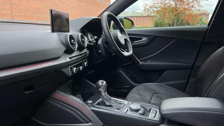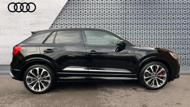 Audi drive select, Audi smartphone interface, Automatic start/stop system with recuperation, Bluetooth interface includes bluetooth audio streaming, Cruise control, Driver's information system - 3.5" colour display, Instrument dials with S logo, MMI SD card integrated nav with 3D map display, dynamic route guidance with TMC, MMI search, natural voice recognition and myAudi special destinations, Power operated tailgate, Progressive steering, Service interval indicator, S sports suspension with lowered by 20mm, 2 x SDXC card reader, Audi music interface - apple iPod, apple iPhone, USB storage media, compatible MP3 players, 2 x USB charging points and 1 x Aux-in, CD Drive, DAB digital radio and AM/FM radio, MMI radio plus with 7" colour MMI screen and MMI controller, Black window trims, Electrically adjustable and heated door mirrors with integrated LED side indicators, Enhanced rear spoiler, Exhaust tailpipes in black, Front and rear electric windows, Front windscreen with grey tinted sunband, Headlight washers, Interior mirror, LED headlights with LED rear lights + dynamic rear indicators, LED indicator lights, Manual folding door mirrors, Privacy glass - dark tinted rear and rear side windows from B-pillar backwards, Rain and light sensors, Rear wiper, S design body styling - underbody protection, SQ2 - front bumper with S design inlets, rear diffuser in silver and roof spoiler, S design radiator grille with horizontal struts and SQ2 logo, 3 spoke flat bottomed high multi-function leather sport steering wheel with gearshift paddles, 60/40 split folding rear seat bench, Black cloth headlining, Dual zone electronic climate control, Floor mats with contrast stitching, Front centre armrest, Front headrests, Front sport seats with S embossed logo, Height/reach adjust steering wheel, Illuminated door sill trims with S logo, ISOFIX child seat mounting for front passenger with airbag deactivation and outer rear seat including top tether attachment point for outer rear seats, Manual seat adjustment including seat height adjustment for front seats, Stainless steel pedals, Storage compartments - Glovebox, cupholder compartment in centre console, storage compartment in rear centre console, front and rear door pockets, Three rear headrests, Black styling pack - Q2, Extended interior upholstery pack - Q2, Non smoking pack - Q2, 3x3 point rear seatbelts, 6 airbags - Front, curtain and front side airbags, Electromechanical parking brake, Electronic stabilisation control including ABS, ASR and EDL, Extended and proactive pedestrian protection, Hill hold assist, Multi collision brake assist, Pre-sense front with pedestrian recognition, S model enhanced braking system, Seatbelt monitoring, Tyre pressure warning light, Warning triangle and first aid kit, Anti theft alarm, Anti theft wheel bolts, Central locking system with remote control key, Electronically operated child locks, Aluminium interior element, 19" 5 twin spoke V design alloy wheels with diamond cut finish,