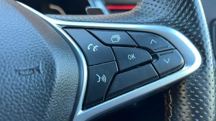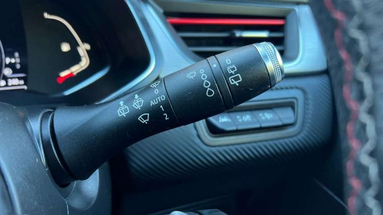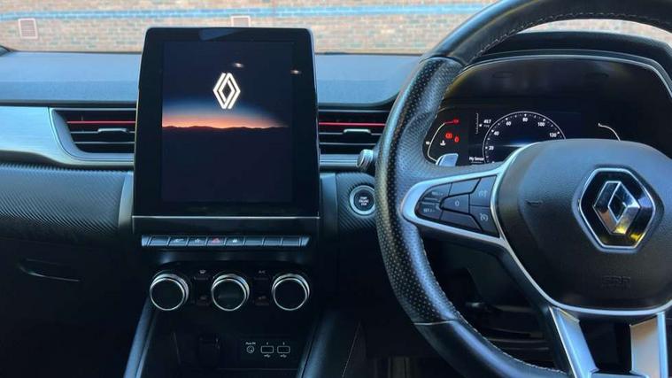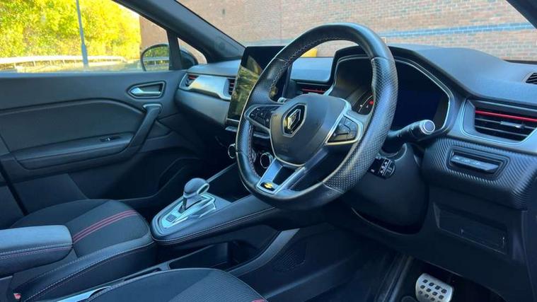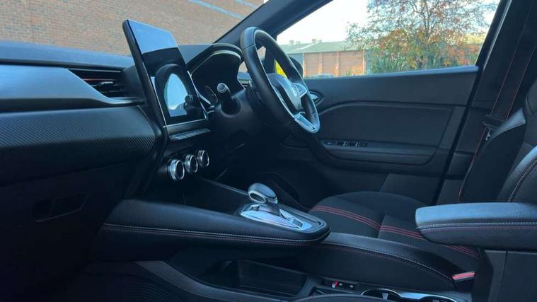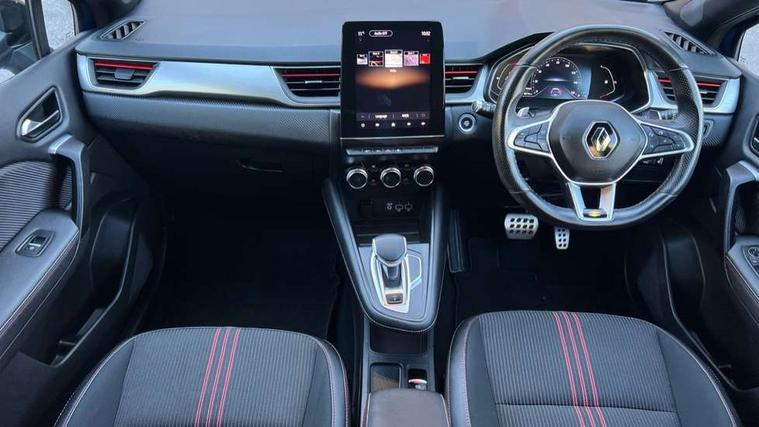 10" TFT Driver information display, Cruise control + speed limiter, eCall emergency call system, Eco mode, Front and rear parking sensors with rear view camera, Gear change indicator, Lane departure warning system, Lane keep assist, Multisense with 3 driving modes + 8 ambient lighting colours, Traffic sign recognition with over speed prevention, Trip computer, Variable assistance power steering, EasyLink Nav 9.3" portrait touchscreen with navigation, bluetooth, DAB radio, USB ports, compatible with Apple carplay/Android auto, Aluminium Renault sport door sills, Auto dimming rear view mirror, Automatic front wipers with rain sensors, Automatic headlights, Automatic high beam - AHB, Black side door protection with chrome effect, Body colour door handles, Body coloured bumpers, C Shaped LED front and rear lighting signatures with 3D effect on the rear lights, Double chromed exhaust tailpipes element, Drivers one touch window with anti-pinch feature, Electric adjustable/heated/folding door mirrors, Electric rear windows, Extra tinted glass in rear windows and tailgate, Frameless rear view mirror, Front bumper with F1 blade and honeycomb front grille, Front grille with chrome upper trim, Full LED headlights, Grey front and rear skid plate, LED front fog lights, LED rear fog light, Longitudinal roof bars, Rear wiper, RS Line badges on front wing and hatch door, Shark fin antenna, 12V Accessory socket, 3 rear headrests, 60/40 split and fixed base rear seat bench, Aluminium pedals, Automatic climate control with one touch demist function, Black roof lining, Centre console storage tray, Flying console with e-shifter, Front head restraints, Glovebox, Heating system with pollen filter, Height adjustable driver's seat, Height adjustable passenger seat, Height/reach adjust steering wheel, ISOFIX child seat fixing points on rear outermost seats, LED front roof lights, Middle console with armrest and storage, Perforated leather steering wheel with red stitching and RS Line badge, Rear air vents, Red insert on air vent, RS Line synthetic leather/cloth upholstery with red lines and red stitching, Sliding rear bench, 3 rear seatbelts, ABS+EBA, AEBS, Distance warning alert, Driver and front passenger, side, head and curtain airbags, Driver height adjustable seat belt, Electric parking brake with auto hold function, Electronic stability control, Front and rear no seatbelt warning sound, Front dash warning indicator in case of heavy braking, Front driver and passenger side airbag deactivation, Hill start assist, Rear door and window child locking function for rear door, Tyre pressure warning light, Anti drill door locks and locking fuel cap, Central door locking, Deadlocking system, Hands free keycard with push button and start/stop function, RAID (Renault Anti-Intruder Device) automatic door locking, Carbon style soft touch dashboard, 18" Le castellete diamond cut alloy wheels,