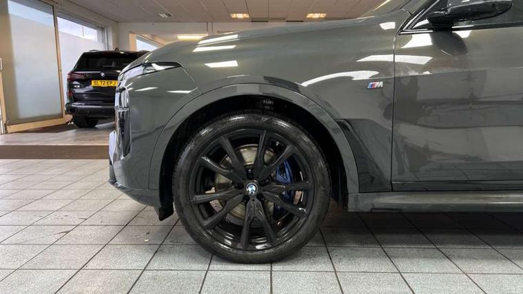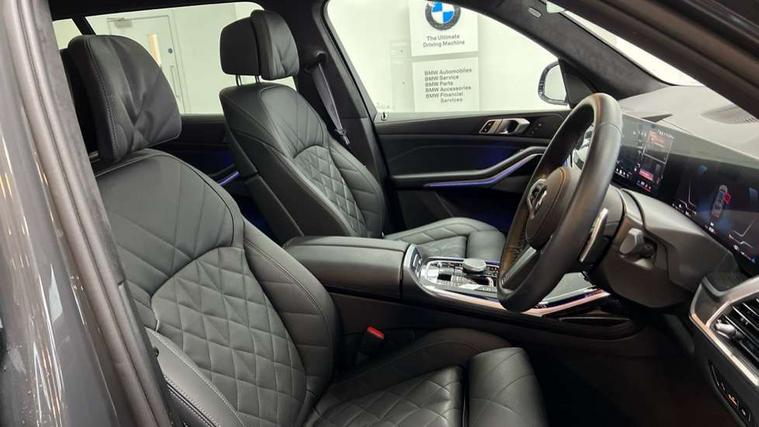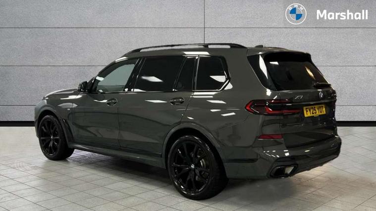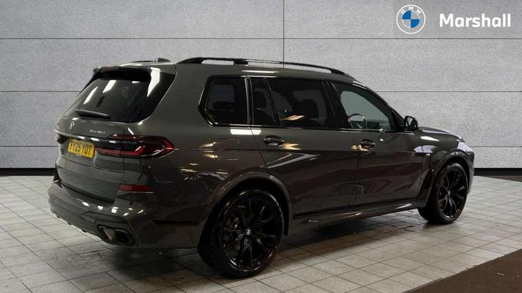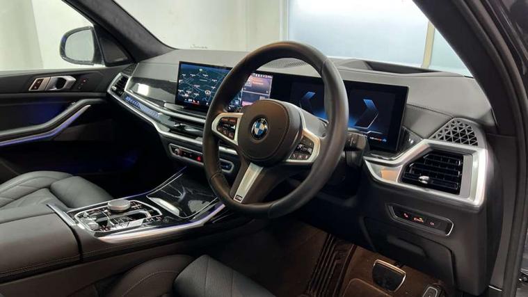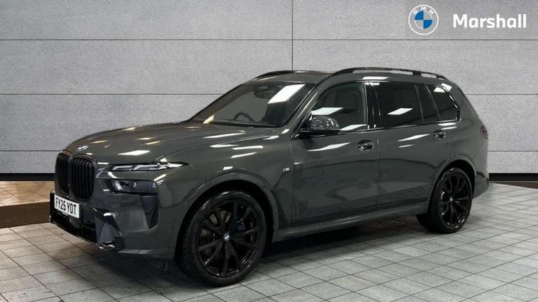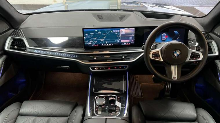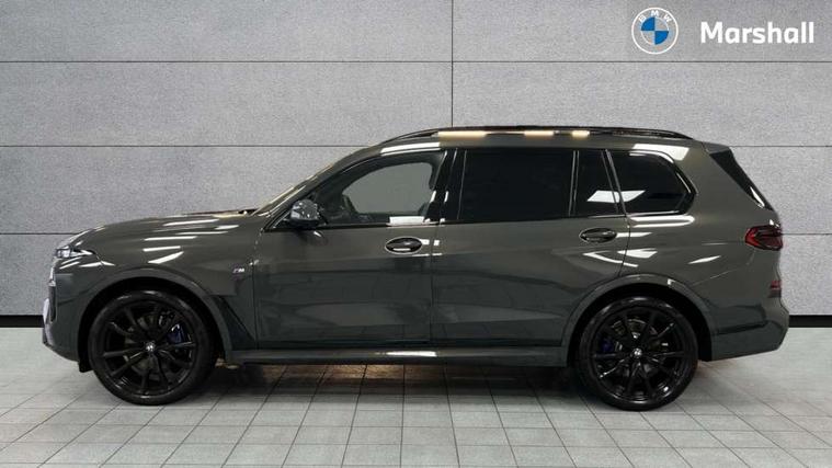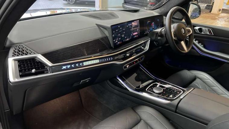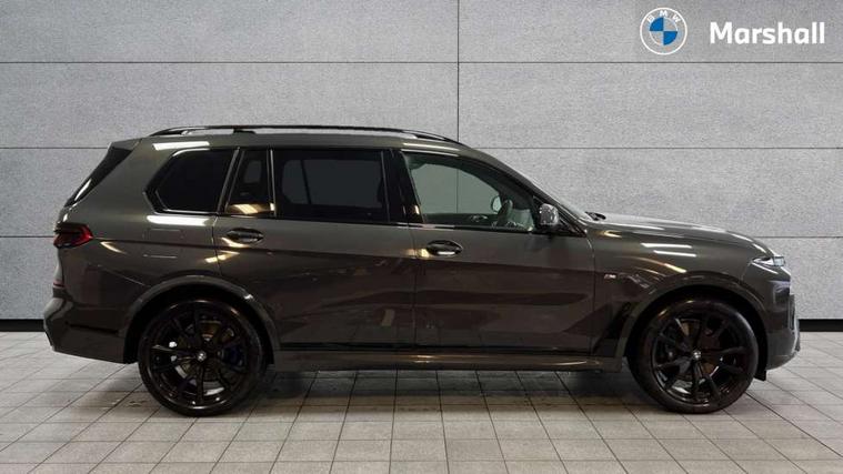 2 rear USB-C ports, Attentiveness assist, Automatic start/stop function, Automatic tailgate operation, BMW ConnectedDrive online services, BMW Drive recorder, BMW gesture control, BMW Teleservices, Brake pad wear indicator in front and rear, Condition based service, Integrated owner's handbook, Live Cockpit Professional with head up display including 12.3" instrument cluster and 14.9" central display, Parking assistant pro including reversing assistant, PDC, lateral parking aid, reversing assist camera, parking drive off monitoring, 48V Mild hybrid technology, 8 speed automatic with steptronic transmission including automatic hold function and gearshift paddles on the steering wheel, Drive experience switch with comfort mode + ECO PRO + sport mode, Permanent all wheel drive, 2x Front USB (1x USB-C, 1x USB-A), DAB radio, Personal eSim, Acoustic glazing, Adaptive air flap control bars in high gloss black, Air breather and door claddings in high gloss chrome, Body coloured wheel arches, Dynamic brake lights with LED technology, Electrically adjustable and heated aspheric folding side mirrors with auto dimming, electric fold in function, automatic parking function, Exterior and central air inlets in front bumper painted pearl chrome, Follow me home headlight function, Frameless interior mirror, Front and rear electric windows, Heated windscreen washer nozzles, High beam assist, High gloss black shadow line roof rails, High gloss black shadowline trim in side/window frame, window recess cover, window guide, B and C pillar, mirror triangle, mirror base, mirror frame, Integrated turn indicators, LED daytime running lights, LED rear lights, LED third brake light in rear spoiler, Rain sensor with automatic headlight activation and windscreen wiper control, Rear side wing doors, Sump guard front and rear painted in silver, Trailer stabilisation logic, 12V - Power sockets with 2x centre console and 1x luggage compartment, 2 seat bench in 3rd row, 2x cupholders in front, rear centre armrest and two in third row seats, 3 seat bench in 2nd row, 3 spoke M leather multifunction steering wheel, 40:20:40 split folding rear seat backrests, Ambient lighting strip in the instrument panel with illuminated, Armrest in front centre console, Compartment in front of cupholder, Driver and front passenger sunvisors with illuminated vanity mirrors and ticket holder, Electrical steering column with adjustable height and length with activation and control on the steering column, Entry sills with illuminated M inscription, Fold down flush into floor of luggage compartment 50:50, Front and rear colour co-ordinated with all standard carpet colours, Front and rear door pockets, Front and rear side armrests integrated into door trim, Front seat back pockets, Grab handles, Height adjustable front headrests, Height adjustable rear headrests, Lockable glove compartment, Nano filter, Single front passenger seat, Soft close doors, Storage tray and compartment with lid in centre console, Wireless charging tray, Additional storage compartment pack - X7, Ambient light interior pack - X7, Connected Package Professional - X7, Interior lighting pack - X7, Luggage compartment pack - X7, M aerodynamics pack - X7, M Sport pack - X7, 3 point seatbelts on all seats, front pyrotechnic belt tensioners, stopper and belt force limiters, front and outer rear seats, Acoustic protection for pedestrians, Active protection, Airbag - Front driver and passenger, side airbags and Head airbags, Anti lock braking system (ABS) with cornering brake control, Automatic Stability Control (ASC), BMW emergency call, Child seat ISOFIX attachment rear outer seats in 2nd row and both seats in 3rd row includes top tether, Comfort access system with digital key, Comfort cushion seats for outer seats in 2nd row, Crash sensor inclu activation of airbags, interior light, safety battery terminal clamp, hazard warn flasher, unlock doors, deactivation of fuel pump, DSC - Dynamic Stability Control, Dynamic Traction Control - DTC, Electromechanical parking brake with automatic drive away release and auto hold function, Front and rear brake discs with interior ventilation, Hill descent control, Integrated braking system, Manual child lock in rear doors, PC iBrake PostCrash approach control warning with light braking function, Tyre pressure monitoring system, Tyre pressure sensors, Variable torque distribution, Warning triangle and first aid kit, Alarm, Central locking including 2 vehicle keys with integrated emergency key, Engine immobiliser, Locking wheel bolts, Galvanic embellisher for controls,