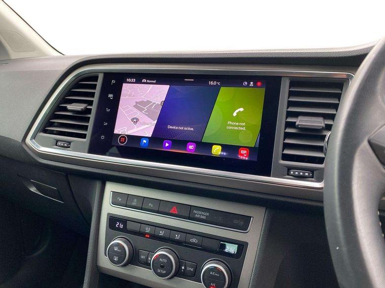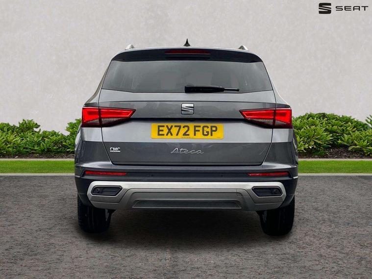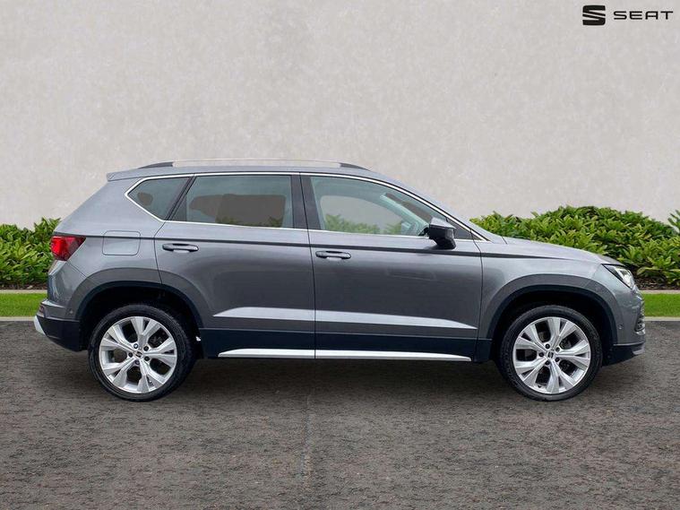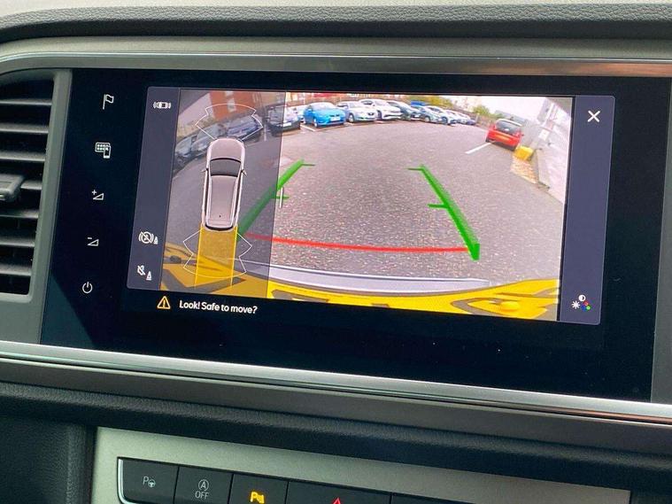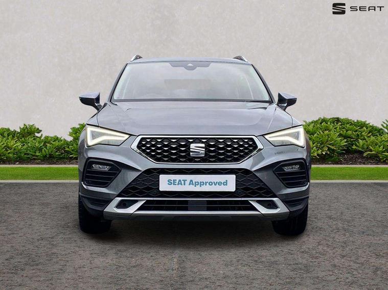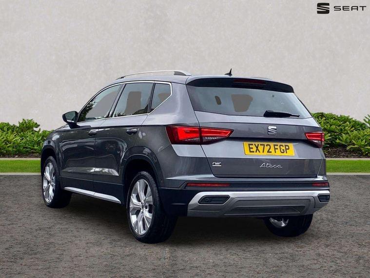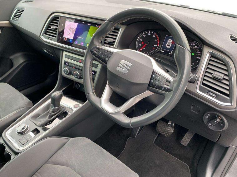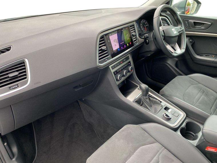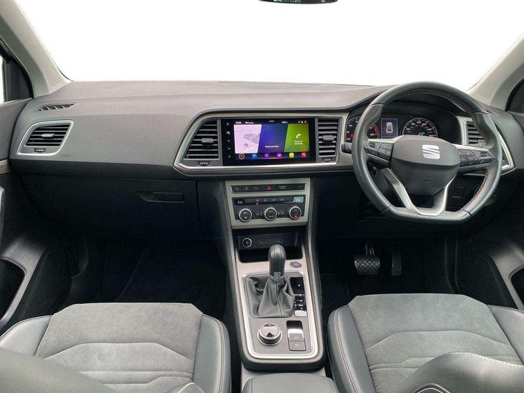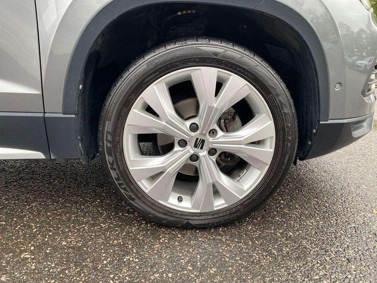Colour multi-function on board computer display, E-call, Outside temperature gauge, Progressive power assisted steering, Rear view camera, SEAT drive profile with driving experience button - Normal, Sport, Eco and Individual mode, gearshift, steering and throttle response, Self parking functionality (includes front and rear parking sensors), Trip computer, Wireless full link smartphone integration, Wireless phone charger, Steering wheel mounted audio/phone controls, Black simulated exhaust pipes, Black wheel arch surrounds, Body colour bumpers, Chrome front grille frame, Chrome roof rails, Chrome side window trim, Dark tinted rear windows, Daytime running lights, Door mirrors with welcome light silhouette, Dynamic headlight range control with self adjusting whilst driving, Electric adjustable/heated/folding door mirrors, Front and rear electric windows, Front grille hot stamping, Full LED headlamps with lens and LED front fog lamps with cornering function, Illuminated aluminium front door sill, LED rear tail lights with dynamic indicators, Rear fog lights, Rear side wing doors, Rear wash/wipe, Reflex silver side mouldings, 12v socket in front, 3 seat bench in 2nd row, 60/40 split folding rear seat, Drawer under right front seat, Dual zone climate control, Front and rear head restraints, Front centre armrest, Front seat back storage pockets, Height adjustable driver and passenger seat with lumbar adjustment, ISOFIX points in outer rear seats with top tether anchorage points, Leather steering wheel and gear knob, Microsuede upholstery with front comfort seats, Rear armrest and easy back seat release mechanism from boot, Single front passenger seat, Steering wheel mounted gearshift paddles, Convenience pack - Ateca, Interior lighting pack - Ateca, Navigation system pack with DAB - Ateca, Safe and driving pack with lane assist - Ateca, 3x3 point rear seatbelts, ABS, Traction control system (TCS), Electronic stability control (ESC) and Electronic differential lock system (XDS), Airbags - Driver and front passenger airbag with deactivation, front side, two curtain and driver's knee airbags, Electric parking brake with auto hold function, Front and rear seatbelt reminder, Hill hold control, Manual rear child locks, Tiredness recognition system, Traction control, Tyre pressure monitoring system, Alarm, Keyless entry, Locking wheel bolts, Chrome interior detailing, 18" Brillaint silver alloy wheels,