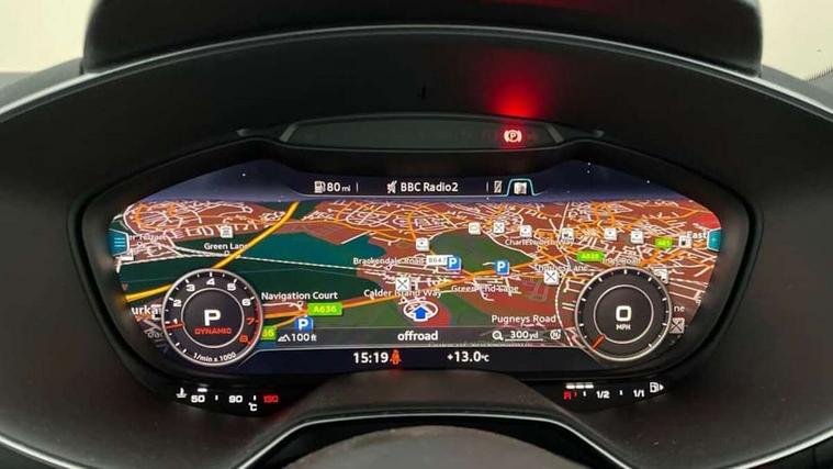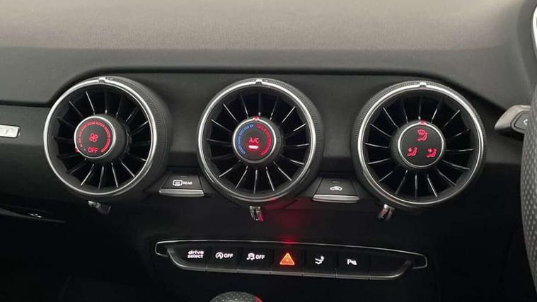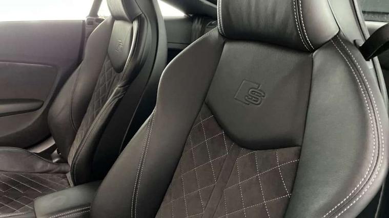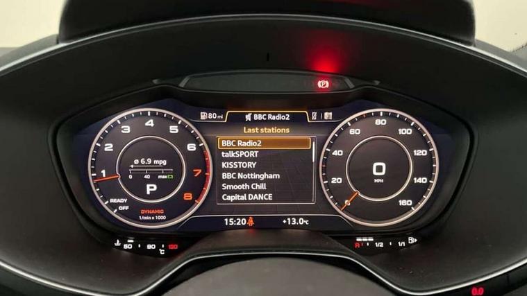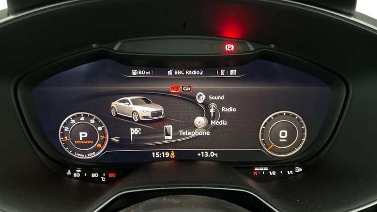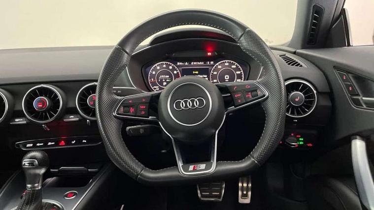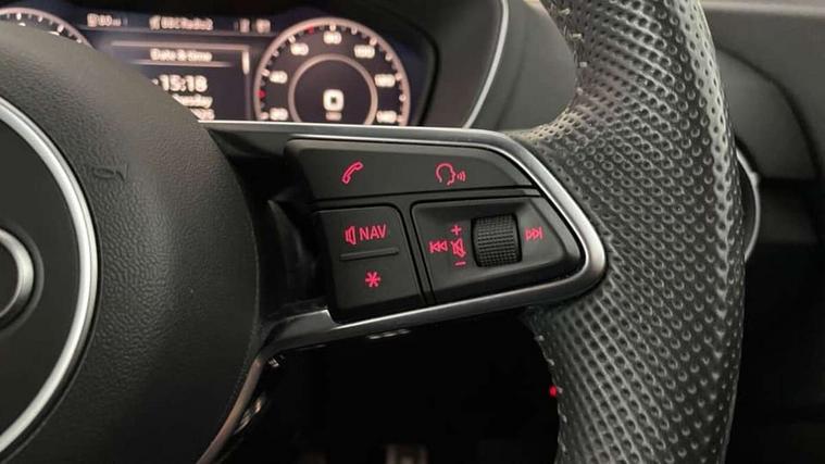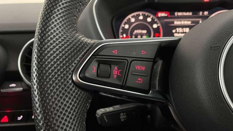 Audi drive select with 4 Pre configured modes, Audi virtual cockpit - 12.3" high-resolution LCD display with fully customisable instrument cluster, Cruise control + speed limiter, MMI touch panel, Mobile phone preparation with bluetooth interface, Progressive power assisted steering, Service interval indicator, Start/Stop system with energy recuperation, TP memo, S line sports suspension, AM/FM radio, Audi music interface, Bluetooth audio streaming, DAB Digital radio, MMI Radio with CD player and SD/XC card slot, Auto dimming rear view mirror, Auto headlight range control, Body colour bumpers, Body colour electrically adjustable and heated door mirrors with built in LED side indicators, Dynamic rear indicators, Electric folding door mirrors, Electric front windows, Front fog lights, Green tinted heat insulating glass, Headlight wash system, High gloss black radiator grille, LED daytime running lights, LED headlights with LED rear lights + dynamic rear indicators, Light and rain sensors, Retractable rear spoiler, S line badges on front wings, S Line body styling, S Line front and rear bumpers, S line rear diffuser with platinum grey insert, S line sill plates, Sunband for windscreen, 12V socket, 3 spoke flat bottomed high multi-function leather sport steering wheel with gearshift paddles, 4 way electric lumbar support for driver and front passenger, Air conditioning, Black headlining, Door sill trims with S line logo, Extended aluminium look with stainless steel pedals, Front centre armrest, Front super sports seats, Heated front seats, Height adjustable driver's seat, Height adjustable front head restraints, Height/reach adjust steering wheel, ISOFIX child seat mounting for front passenger seat with airbag deactivation, Perforated leather gearknob, Rear head restraints, Rear top tether child seat ISOFIX attachment, S Line badge on steering wheel, Split folding rear seat, Tool kit, Top tether anchor plate for isofix child seat, Non smoking pack - TT/TT RS, 3 point front seat belts, ABS, ASR traction control, Brake energy regeneration, Curtain airbags, Driver and front passenger airbag with front passenger airbag deactivation, EDL traction control, Electromechanical parking brake, ESP, First aid kit, Front side airbags, Head airbags, Hill hold assist, Seatbelt warning, Tyre pressure warning, Warning triangle, Anti theft alarm, Anti theft wheel bolts, Immobiliser, Keyless Go, Remote central locking, Matt brushed aluminium inlays, Tyre repair kit,