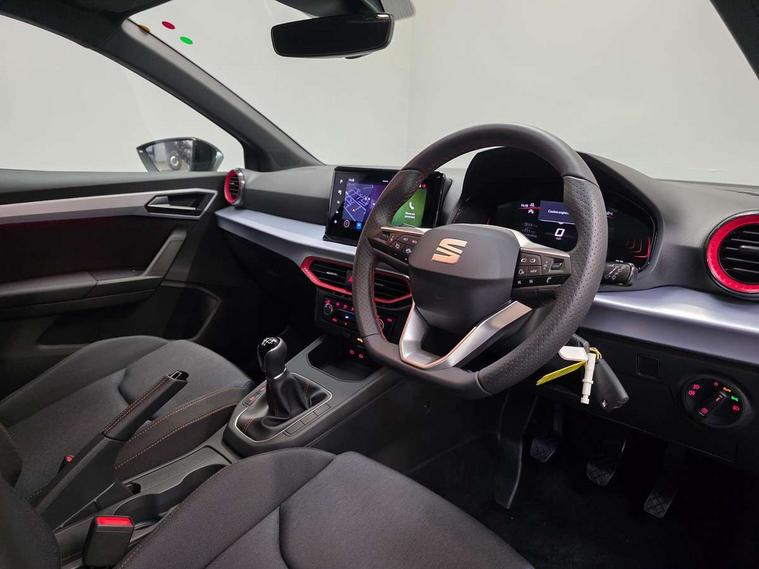 'Lights On' Reminder warning buzzer, 8" Digital cockpit, 9.2" touchscreen navigation system with type C USB socket, Voice control and DAB/AM/FM radio, Auto start and stop system, Bluetooth audio streaming with handsfree system, Digital clock, E-call, Full link smartphone integration with mirror link, wireless apple carplay, Google android auto + USB Type C cable for apple and android devices, Lane assist, Low fuel warning light, Outside temperature gauge, Power Steering, Rear parking sensor, Seat connect plus with safety, service, remote and online, SEAT logo boot release, Speed limiter, Traffic sign recognition, Trip computer, Sports suspension, 6 speakers, Auxiliary input socket, Radio/MP3 player, SD card slot, Steering wheel mounted controls, Anti theft roof antenna, Auto dimming rear view mirror, Automatic rain sensing wipers, Black door mirror caps, Body colour bumpers, Body colour door handles, Brilliant black window surrounds, Dark tinted rear windows, Electric adjustable/heated/folding door mirrors, Electric front windows, Electric headlight adjustment, Electric rear windows, Front/rear fog lights, FULL LED automatic headlights with dynamic headlight range control, coming and leaving home, LED daytime running lights, LED 3rd brake light, LED tail lights, Rear roof spoiler with FR twin exhausts, Rear side wing doors, Rear wiper, 3 seat bench in 2nd row, 60/40 split folding rear seat, Ambient interior lighting, Chrome detailing and black headlining, Cloth upholstery, Dual zone climate control with combination filter, Front courtesy lights, Front cupholders x 2, Front reading lights, Gear shift indicator, Glovebox, Height adjustable front and rear headrests (five), Height adjustable front seats, Height/reach adjust steering wheel, Illuminated air vent surrounds, Illuminated boot, Instrument lighting with brightness control, Isofix, Leather multifunction flat bottomed sports steering wheel, Passenger sunvisor, Single front passenger seat, Sports seats, Sunvisors with mirror and driver side card holder, Safety and driving pack (S) - Ibiza, 3 point seatbelts on all 3 rear seats, ABS, Active front headrests, Child locks on rear doors, Electronic stability control, Energy recovery system, Front driver and passenger side airbags with curtain airbag and front passenger airbag deactivation, Hill hold control, Multi-Collision braking, Seat belt reminder for front and rear seats, Tiredness recognition system, Tyre pressure monitoring system, Locking wheel bolts, Perimeter alarm and interior monitoring with backup horn and tow away protection, Remote central locking + deadlocks, 17" Alloy wheels in Brilliant silver,
