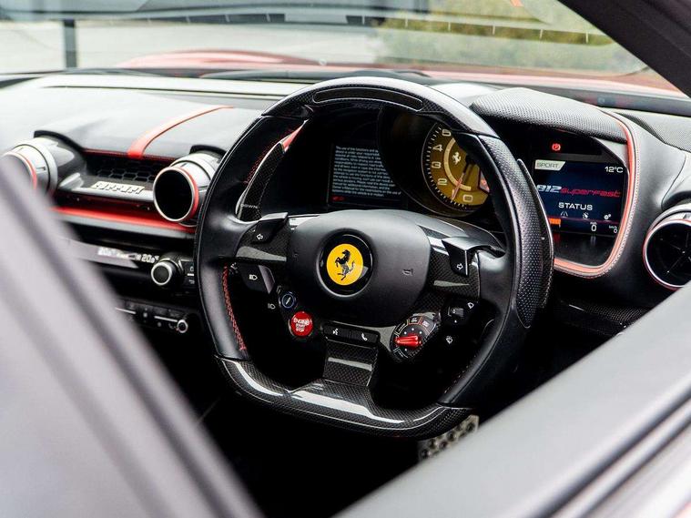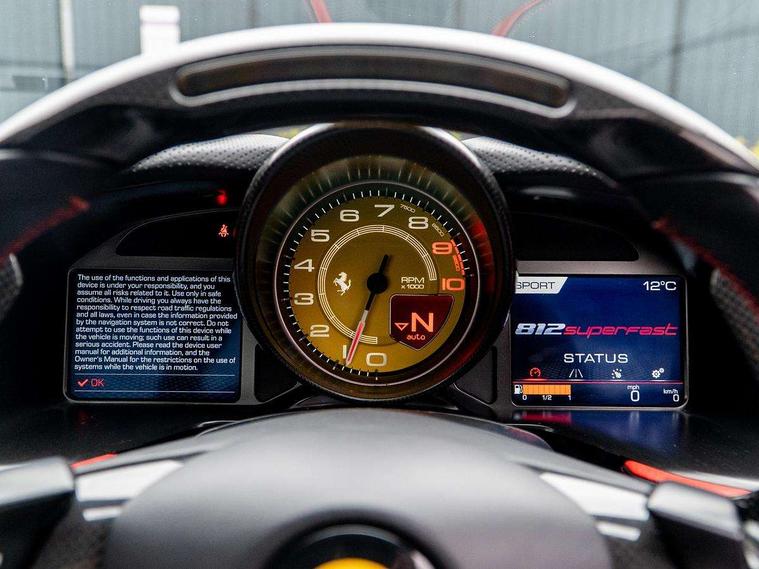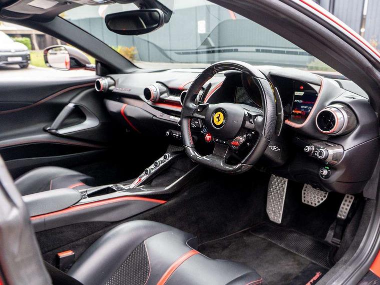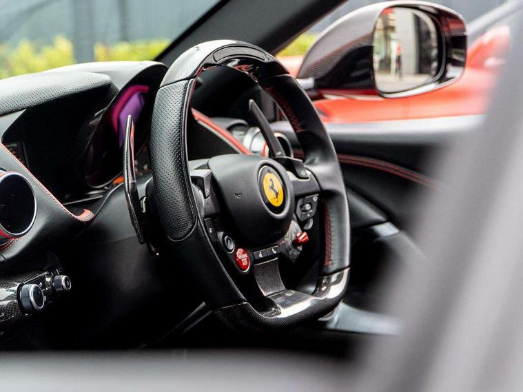 Cruise control, Electric speed sensitive power steering, Front and rear parking sensors, Infotelematic system with maps navigation, Race Manettino, Electronic differential, Launch control, Magneto-rheological suspension, Bluetooth audio streaming, USB port, Car cover set, Electrochrome powerfold/heated door mirror, Electrochrome rear view mirror, Full LED headlights, LED rear lights, Rain and light sensors, Dual zone air conditioning, Front headrests, Leather upholstery, Start button on steering wheel, Tilting rear shelf, ABS/EBD, Driver and passenger airbags, Electronic stability control, Retractable side airbag, Traction control, Tyre pressure monitoring system, Anti theft satellite system, Keyless Start, Remote central locking, Transponder key, Tyre puncture repair kit,