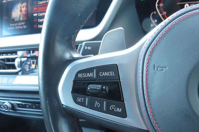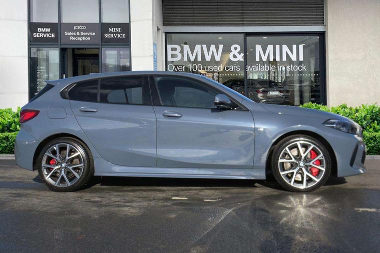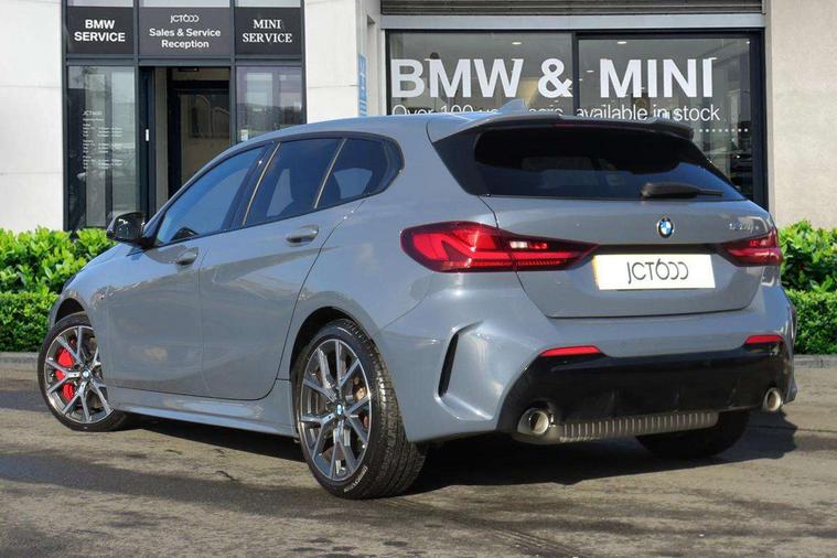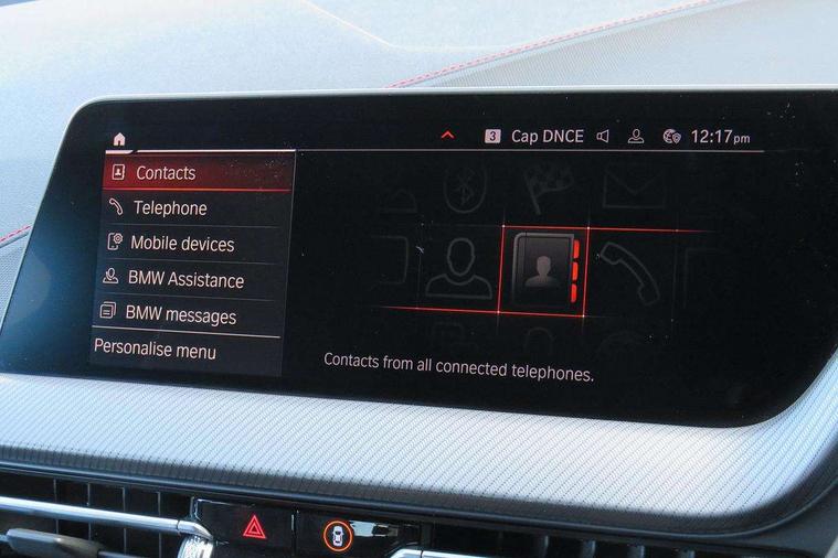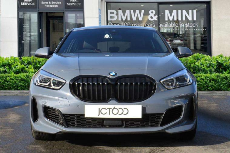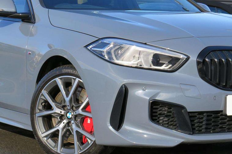 Active guard plus, Attentiveness assist, Bluetooth / WiFi interface for wireless connection of mobile terminal devices and audio streaming, BMW ConnectedDrive online services, BMW Teleservices, Check Control warning system for monitoring of lights and door/luggage compartment open warning, Cruise control with brake assist, Eco pro mode, Electric power steering with Servotronic steering optimised at all speed ranges, Front axle single joint with specific axle kinematics to minimise drive influences on steering + provide increased rigidity agile driving behaviour, Integrated owners handbook, Lane departure warning system, Oil sensor for level and grade, On board computer, Optimum shift indicator, Personal Profile, Pull away assistant, Rigidly mounted rear subframe - Multi link construction with separate spring / damper configuration and excellent driving characteristics, Speed limit Info including no-overtaking indicator, Speed limiter, Aluminium lightweight construction, Anti roll bar front and rear, Balancer shaft, Double VANOS twin scroll turbocharging system, Drive Performance Control, Eight speed sport automatic transmission with gearshift paddle switches, Electronic differential lock, High precision injection, Larger fuel tank capacity (50 litres), M sport suspension with M128i xDrive specific settings, Petrol Particulate Filter, Twin tube gas filled shock absorbers with degressive characteristic curve, VALVETRONIC engine management, DAB Digital radio, Auto dimming rear view mirror, Automatic headlight beam throw control, Automatic windscreen wipers and automatic headlight, Black chrome tailpipe finishers, BMW individual high gloss shadow line with extended content, Body colour door handles, Body colour mirror caps, Body colour roof trims, Chrome 'M' logo side designation, Chrome kidney grille frame with Satin Aluminium struts, Direction indicator side lights in exterior mirrors, Fading support, Folding side mirrors with auto dimming/folding wing mirrors with auto dimming, Follow me home headlights, Front and rear bumper system with replaceable deformation elements, Front and rear electric windows with open and close fingertip control, anti trap facility and comfort closing, Front door sill finishers in black plastic with M designation in metallic look, Green tinted heat protection glazing, Heated, electrically adjustable exterior mirror aspheric on driver side, convex on passenger side, High gloss shadowline window frame, Recess cover mirror frames and B/C pillar embelisher trim, High level third brake light, Integrated front windscreen with washer jets, Kidney frame and struts in high gloss black extended, LED daytime running lights, LED eyebrow turn indicators, LED front fog lights, Lightweight engineering, Matt black air guide grilles, Matt black wheel arch trim, Model designation on electric bootlid, Nearside reverse light in rear light cluster, Preparation for high beam assistant, Rear fog lights, Rear side wing doors, Rear window wiper, Shark fin antenna, Trailer stabilisation logic, Visible VIN plate, Welcome lighting, 12V power socket in front centre console with blanking plug, 3 rear seat head restraints, 3 seat bench in 2nd row, Ambient interior lighting, Anthracite headlining, Centre armrest in black/red highlight including embroidered 'ti' designation in red, Child seat ISOFIX attachment for two outer rear seats and front passenger seat with anchorage points, Conditioned based service, Driver and front passenger seat heating, Folding rear clothes hook, Four grab handles integrated in roof lining, Front and rear door pockets with bottle holders, Front and rear side armrest integrated into door trim, Front armrest, Front sports seats, Glove compartment, Height adjustable front head restraints, Instrument panel top section , door armrests and door panels in black/red highlight, Luggage compartment for bag hooks on left and right, foldable luggage compartment liner and two lashing eyelets, Manual adjust steering wheel, Multi-function controls for steering wheel, Single front passenger seat, Storage compartment in centre console, Sun visors with vanity mirrors and insert tab, Three spoke M sport design multi function leather steering wheel in unique red stitching, Two front centre console cupholders, Two zone automatic air conditioning, Additional interior lighting pack - 1 Series, Additional storage compartment pack with code 493 -1 series, BMW live cockpit professional pack- 1 Series, Connected pack professional - 1 Series, Interior lights pack - 1 Series, M Sport exterior styling aerodynamics pack - 1 Series, 2 tone horn, 3 point seatbelts on all seats, front pyrotechnic belt tensioners, stopper and belt force limiters, rear coded belt buckles, Airbags - Front driver/passenger, front and rear curtain head protection, front side, manual deactivation of front passenger airbag, Anti lock braking system (ABS) with brake assist, BMW emergency call, Brake drying, Braking readiness, Child proof locking system in rear door, City braking function, Comfort modes, Cornering brake control, Crash sensor activating central locking release, hazard warning lights, fuel cut off, interior lighting + activation of safety battery terminal clamp, Driver and front passenger seat belt security check, Dynamic stability control + (DSC+), Dynamic Traction Control - DTC, Electrically operated hand brake including automatic hold function, Front and rear disc brakes, M Sport brakes with red calipers, M Sport seatbelts, Seatbelt warning, Side impact protection, Tyre pressure monitoring system, Warning triangle and first aid kit, Central locking switch for all doors, fuel filler cap and luggage compartment, Deadlocking function system to all doors, Drive away locking system on all doors and luggage compartment with de-activated in iDrive settings, Locking wheel bolts, Remote control with integrated key with High-gloss Black inlay and M designation and 1 button for open/ close lock, window, open luggage 