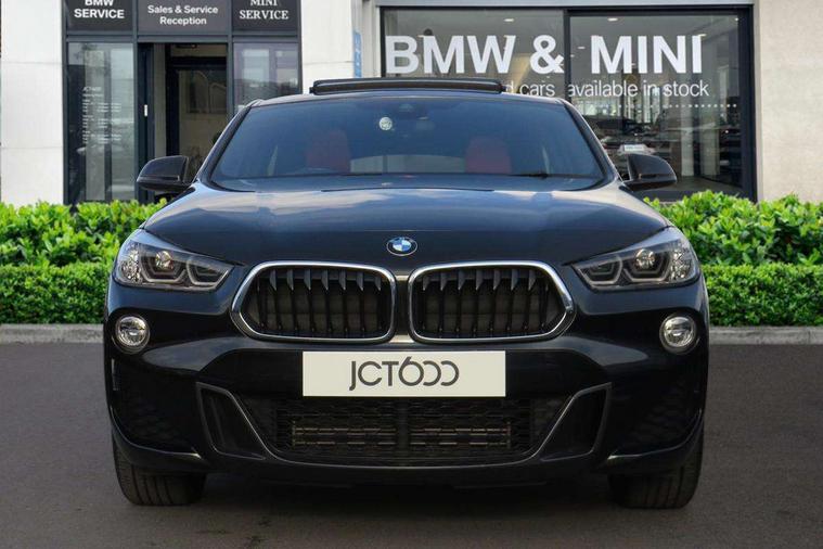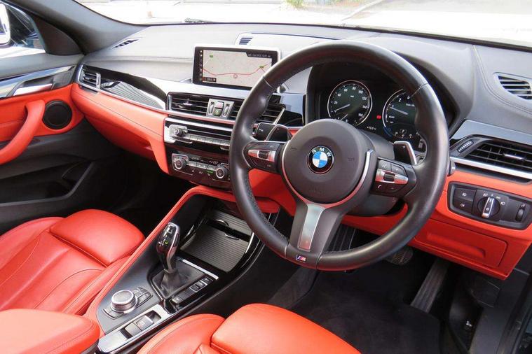 Active Guard incl speed limiting and lane departure functions with auto steering, and front collision warning with brake intervention, Automatic powered tailgate, Bluetooth hands free facility with USB audio interface, BMW Navigation system with 8.8" monitor, BMW Online services, BMW remote services, BMW Teleservices, Brake pad wear indicator in front and rear, Check Control warning system for monitoring of lights and door/luggage compartment open warning, Eco pro mode, Instrument cluster with black optic and 5.7" colour display + speedometer + tachometer + fuel gauge + instant fuel economy, Lights on warning by audio warning signal when ignition is switched off, On board computer - average speed+fuel consumption, service interval, clock/date, odometer/trip meter, outside temperature display and ice warning, Optimum shift indicator, Personal Profile, Real time traffic information, Speed limiter, TMC for lifetime of vehicle, 12V compressor with integrated sealant injection bottle and hose, Anti roll bar front and rear, Balancer shaft, Drive performance control with ECO PRO comfort + sport mode, Electronic differential lock, Performance Control, Sport automatic transmission, Twin tube gas filled shock absorbers with degressive characteristic curve, 2x USB sockets in front, 6 Speaker Loudspeaker system, Bluetooth audio streaming, BMW professional radio with CD player, DAB Digital radio, Steering wheel mounted audio/telephone controls, Adjustable headlights, Automatically dimming rear view mirror, BMW badge on bonnet, tailgate with integrated tailgate release and C pillars, Body colour door handles, Body colour mirror caps, Body colour roof trims, Chrome kidney grille with black vertical slats, Clear lenses direction indicator lights, Dark shadow front air intakes, Direction indicator side lights integrated in exterior mirrors using LED technology, Door mirror integrated indicators, Dynamic brake lights, Electrically adjustable and heated door mirrors glass aspheric on driver's side and convex on passenger side, Fingertip control / anti-trap function on electric window, Front and rear bumper system, Front and rear electric windows, Green tinted heat protection glazing, Halogen headlights, Heated windscreen washer jets, High gloss black front side air intake with matt black insert, High gloss black in window frame, recess covers and B-Pillar trim, High gloss shadowline in mirror frame and B-Pillar trim, High level third brake light, LED front fog lights, LED headlights with extended contents - cornering, high beam assist, LED day running lights with dynamic beams-through for urban and motorway, Lightweight engineering, M logo designation in side chrome, M rear spoiler, Model designation in left tailgate, Model designation in right tailgate, Rain sensor with automatic headlight activation, Rear fog lights, Rear tail lights with LED technology and 3D design, Rear window aerial, Rear window wiper with wash/wipe function, Reversing light in rear light cluster, Shark fin antenna, Twin chrome exhaust tailpipes, Visible VIN plate, Welcome lighting, 40:20:40 manually split folding rear seat with two tilt positions for backrest, Ambient light in front centre console/cup holder area, Anthracite headlining, Armrest in centre section of rear seat backrest and folding, Automatic two zone climate control air conditioning, Child seat ISOFIX attachment for two outer rear seats and front passenger seat with anchorage points, Conditioned based service, Dakota leather upholstery + sport seats, Driver and front passenger seat heating, Driver/passenger sunvisors with ticket holders, Drivers folding storage compartment, Floor mats with black surround and M flag detail on front mats, Front and rear door armrests, Front armrest, Front door sill finishers with M designation, Front head restraints, Front sports seats, Gearshift paddles on steering wheel, Interior light in front centre interior mirrors and rear centre auto interior light activation when door is opened when ignition switched off, LED ambient lighting in upper door trim and dashboard trim, Luggage compartment lighting, Luggage compartment loading edge with stainless steel insert, M Sport multifunction leather steering wheel, Rake/reach adjustable steering wheel, Retaining strap on the left side of the luggage compartment, Three rear headrests, Two cupholders in front and rear centre console, Extended storage pack - X2, M Sport aerodynamic pack - X2, 3 point seatbelts on all seats, front pyrotechnic belt tensioners, stopper and belt force limiters, rear coded belt buckles, Airbags - Front driver and passenger, front and rear head, front side, curtain head protection, Anti lock braking system (ABS) with brake assist, ASC - Active stability control, BMW emergency call, Brake drying, Brake energy regeneration, Braking readiness, Child proof locking system in rear door, Crash sensor activating central locking release with hazard warning lights and interior lighting + battery safety cut-off, Driver and front passenger seat belt security check, DSC - Dynamic Stability Control, Dynamic Traction Control - DTC, Electrically operated parking brake with automatic drive release, Electronic parking brake, Front passenger airbag deactivation, Front ventilated brake disc, Hill descent control, Hill start assist, Multi collision braking system, Rear brake discs, Side impact protection, Twin horns, Tyre pressure monitor, Warning triangle and first aid kit, Auto door lock when driving, Central locking switch for all doors, fuel filler cap and luggage compartment, Engine immobiliser, Incorrect fuel protection system, Locking wheel bolts, Remote control including integrated key with M specific highlight, Remote control Thatcham category 1 alarm, Start/stop button with comfort go keyless engine start and auto start stop deactivation button, Dash top finished in black with decorative stitching line on upper section, High gloss black centre console, Reduced rolling resistance t