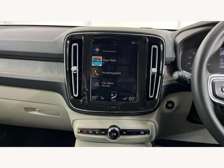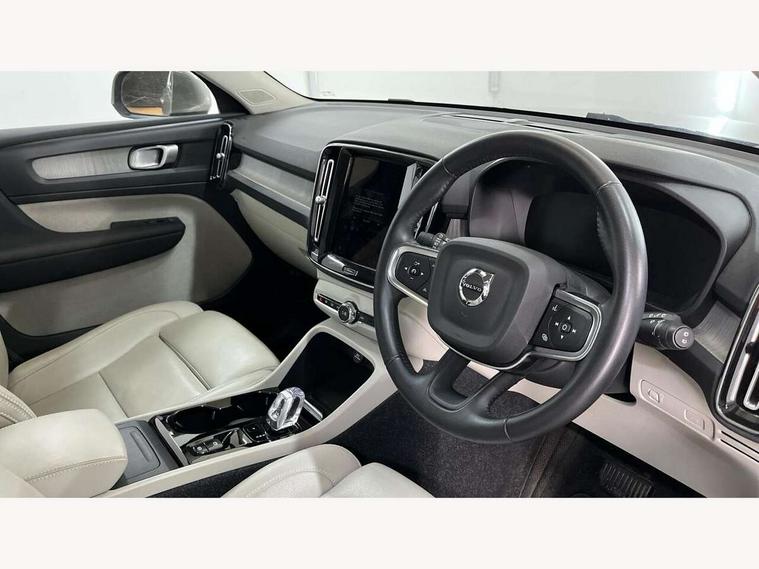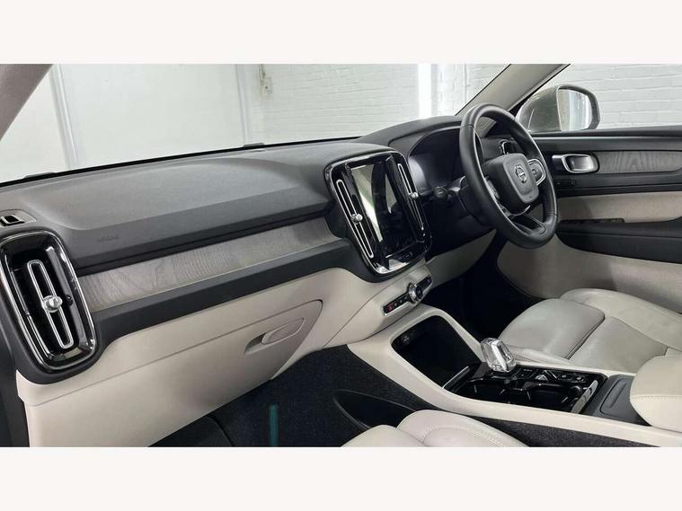 12.3" Active TFT crystal driver's instrument display, 9" centre console portrait touch screen, Adjustable steering wheel force, Bluetooth hands free telephone kit, Drive mode selector, Lane keep assist with driver alert control, Oncoming Lane Mitigation, Sensus navigation with European mapping and traffic information, Speed limiter, Speed sensitive steering, Voice activated control for key functions, Volvo on call, Dynamic chassis, DAB Digital radio, Steering wheel mounted remote controls, Active bending headlights, Adaptive brake lights with high level LED brake lights, Auto dimming interior mirror, Automatic headlamp levelling, Chrome window surround, Colour coordinated auto folding and heated power door mirrors, Dual exhaust pipes, Front aluminium tread plates, Front and rear electric windows, High gloss black front grille with chrome inserts, High gloss black sensus surround deco, High Gloss silver front and rear skid plate, Home safe and approach lighting, LED front fog lights with static cornering light function, LED Headlights + Active high beam incorporating daytime running lights, Rain sensor with automatic windscreen wiper activation, Rear side wing doors, Rear wiper, Roof antenna, Roof spoiler, Silver roof rails, Visible VIN plate, 12V socket in front tunnel console and luggage compartment, 2 zone electronic climate control and rear air vent, 3 seat bench in 2nd row, 3 spoke leather steering wheel with chrome trim, 60/40 split folding rear seat, Ambient front door and instrumental panel lighting, Bright metal luggage threshold, Centre console cupholders and storage, Driver's side lower dashboard credit card storage compartment, Front door pocket and front cupholder illumination, Front footwell illumination, Front headrests, Front reading light and theatre lighting, Front tunnel net pocket and integrated waste bin, Glovebox bag hook, Height/reach adjustable steering column, High gloss centre tunnel deco, Illuminated glovebox, Illuminated luggage compartment, Illuminated tailgate, Illuminated vanity mirrors, Isofix attachments on outer rear seats, Key integrated remote, Leather faced upholstery, Load protection net, Luxury floor mats, Multi directional lumbar support, Multicolour theatre lights, Orrefors Crystal gear lever knob, Rear armrest / integral cup holders / storage tray, Rear coat hook, Rear reading and courtesy lights, Single front passenger seat, Underfloor cargo storage, Power seat pack - XC40, 3x3 point rear seatbelts, City safety includes pedestrian, cyclist and large animal detection and front collision warning with full auto brake, Drivers knee airbag, Dual stage driver/passenger airbags, Electronic parking brake with auto hold, First aid kit, Front and outer rear seatbelt reminder and pretensioners, Front seats SIPS airbags, Hill descent control, Hill start assist, Inflatable curtain, Passenger airbag cut-off device, Road sign information display, Run off Road Mitigation, Run off Road Protection, SIPS (Side Impact Protection System), Slippery road and hazard light alert, Stability and Traction Control with Spin control, Engine Drag Control and Corner Traction Control, Tyre pressure monitoring system, Vehicle deceleration control with Anti-lock Brake System, Electronic Brake Distribution and Emergency Brake Assist, Warning triangle, WHIPS whiplash protection system - front, Anti-theft alarm including immobiliser/volume sensor + level sensor, Care key with user defined top speed, Key integrated remote control central locking + fuel flap with deadlocking system and auto open/close power windows, Locking wheel nuts, Private locking for tailgate, Driftwood inlays,