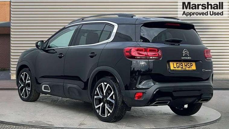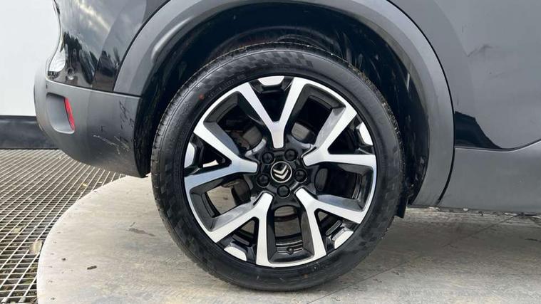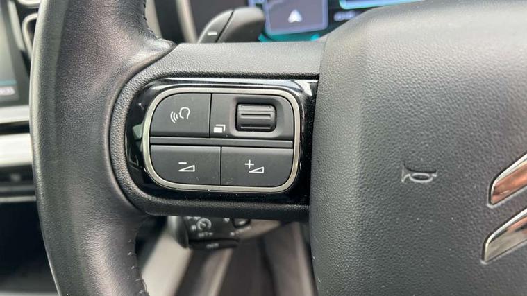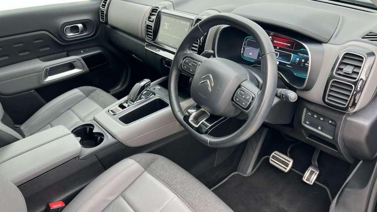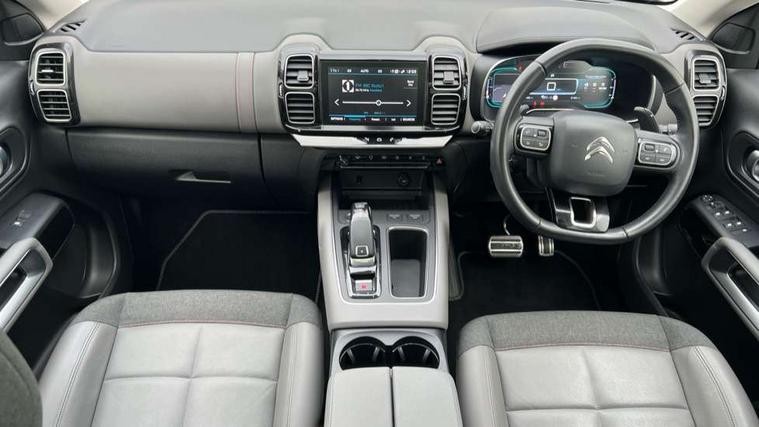 12.3" customisable TFT instrument display, Active blind spot monitoring system, Active cruise control with stop and go, Active lane departure warning system, Bluetooth telephone facility, Central 8" capacitive touch screen, Citroen connect box emergency assist system, Citroen connect Nav with connect box, Citroen connected CAM, Coffee Break Alert, Driver attention alert system, Eco+ mode, Electric power steering, Extended traffic sign recognition and recommendation, Exterior temperature indicator with ice warning, Foot operated hands free tailgate includes keyless entry and start, Front parking sensors, Gear efficiency indicator, Highway driver assist, Mirror screen with mirror link, apple carplay and android auto, Multi function trip computer, Park assist function with auto parallel and bay parking, Programmable cruise control and speed limiter, Rear parking sensors, Reversing camera displayed on the central screen, Smartphone wireless charging plate, Speed limit recognition and recommendation, Suspension with Progressive Hydraulic Cushions, 2x USB sockets in front, Auxiliary input socket, DAB (Digital Audio Broadcasting), AM/FM and MP3 compatible radio with two tweeters and four speakers, Voice recognition for radio, navigation and telephony features, 3D effect LED rear lights, Acoustic laminated front windows, Acoustic laminated windscreen with rain and brightness sensors, Airbump panels with colour insert on lower portion of the doors, Auto dimming electrochrome rear view mirror, Automatic headlight activation via windscreen mounted sensors, Automatic triggered rear windscreen wiper in reverse gear, Automatic windscreen wipers, Body colour door handles, C5 Aircross monogram on boot rear, Citroen logo and monogram on rear, Dark tinted rear windows and rear windscreen, Electric, heated and folding door mirrors with integrated LED indicator and kerb puddle light, Front fog lights with cornering function, Front windscreen wiper with magic wash cleaning system, Gloss black finish on A and B pillar and aerodynamic trim, Gloss black rear skirt, Gloss black upper and matte black lower grille, Guide me home headlight function, Halogen headlights, Halogen rear fog lights, Halogen rear number plate lights, Headlights left on audible warning, Heated rear windscreen with integrated antenna, Intelligent high beam headlights (auto dipping main beams), LED daytime running lights, LED front indicators, LED high level brake lights, Longitudinal roof bars, Matte black rear bumper facia, Matte black side sill with anodised silver colour touch, Matte black wheel arch extensions, One touch electric front/rear windows with pinch protection, Painted front bumper, Painted rear bumper, Panoramic opening glass roof with electric blind, Roof bars with anodised silver lower, Roof coloured rear spoiler, Satin chrome C signature, Satin chrome window surround, Twin exhaust effect trim, 12V socket in boot, 12V socket in cabin, 2 Central illuminated cup holders, 2 Position boot floor, 2 way lumbar adjustment for driver, 2x Rear coat hooks, 3 Independent full size rear seats with adjustable recline angle, 3x Grab handles retractable with damping, Advanced comfort seats, Air recirculation when reverse gear is engaged, Anti odour and pollen filter, Central front armrest with butterfly wing opening and illuminated storage compartment, Dashboard open central storage compartment, Dimmable white mood lighting, Driver and front passenger relax adjustable headrests, Dual zone automatic climate control, Electric driver seat adjustment (height, fore/aft and backrest angle), Fixing rings 4 in load compartment, Front and rear LED welcome/LED rear reading lights, Front carpet mats, Front door pockets store up to 1.5L bottle and A4 note pad, Front seat back map pockets, Height adjustable rear headrests, Height and reach adjustable leather steering wheel with 2 control zones, Hinged rear parcel shelf, Isofix child seat preparation for front passenger seat, Leather interior door handles, Leather steering wheel with satin chrome inserts and radio controls, Manual passenger seat adjustment (height, fore/aft and backrest angle), Multi function steering wheel, Open storage area next to gear selector, Rear centre console ventilation system, Rear door pockets store up to 0.5L bottle, Rear passenger air vents, Satin chrome digital instrument panel and touchscreen trim, Satin chrome gear lever, Satin chrome interior door handles, Seatbelt unfastened on the move audible and visual alert for front and rear seats, Smooth opening flocked glove box with lighting, Stainless steel front Citroen embossed sill scuff plates, City camera pack with front parking sensors - C5 Aircross, 2x Isofix child seat fitting on outer rear seats, 3x Rear three point retractable seatbelts with pretensioners and force limiters in the outer rear seats, ABS/EBD, Adaptive driver and front passenger airbags with passenger airbag deactivation function, Advanced active safety brake (AEBS2 with 24GHz radar), Collision risk alert, Driver and front passenger side airbags, DSC (Dynamic Stability Control) and ASR (Electronic Anti-skid System), Electric child locking functionality on rear windows and doors, Electronic parking brake, ESP including traction control and stability programme, Front and rear curtain airbags, Front three point retractable seatbelts height adjustable with pre tensioners and force limiters, Front ventilated disc brakes and rear disc brakes, Hill start assist, Post collision safety brake, Two tone horn, Tyre under inflation indicator, Alarm - perimetric and volumetric alarm with anti-lifting mechanism, Automatic door locking, Automatic hazard light activation upon heavy brake application, Electronic code immobiliser, Keyless entry and start, Remote central locking + deadlocks, Gloss black touch screen surround with integrated tactile buttons and chrome finisher, Leather effect dashboard facia, Satin chrome air vent decors, Soft touch matte dashboard with g