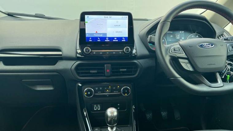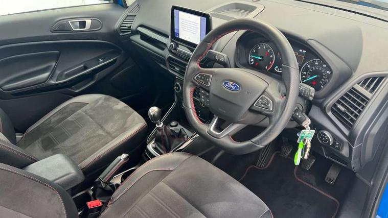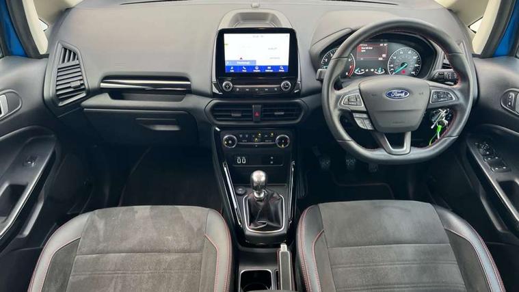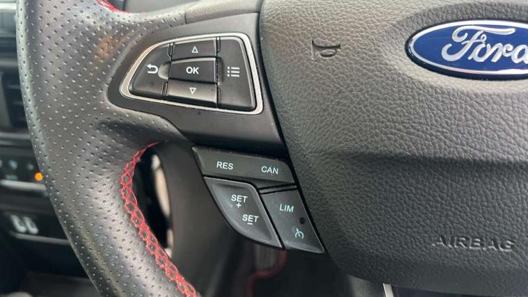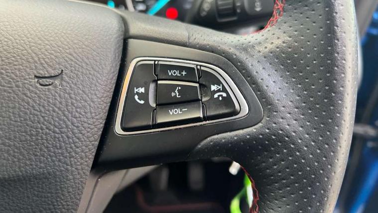 Cruise control, e-Call (emergency call), Easy fuel capless refuelling system, Ford SYNC 3 nav system with DAB radio, 8" screen, emergency assistance, Apple car play/Android auto, 2x USB, 6 speakers, Ford pass connect, Intelligent speed limiter, PAS, Rear parking sensors, Rear view camera, Traffic sign recognition, Trip computer, Sports suspension, Steering wheel mounted audio controls, Auto dimming rear view mirror, Automatic front wipers, Automatic headlights, Black roof rails, Body colour door handles, Body coloured bumpers, Chrome lower window surround, Electrically adjustable and heated door mirrors, Front fog lights, Headlight levelling control, Large rear spoiler, LED day running lights, LED third brake light, Power front and rear windows, Puddle lights, Quickclear' heated windscreen, Rear wiper, ST Line body styling kit - Black headlamp bezel, front and rear sport bumpers, body colour lower door claddings, ST-Line front grille, 12V socket in front and rear, 60/40 split rear seats, Ambient lighting, Centre console with sliding front armrest, Cooled glovebox, Courtesy lights with map reading light, Driver height adjust, Driver seat height/lumbar adjust, Driver's side glovebox, Driver/passenger sunvisors and lidded vanity mirrors, EATC - Electronic Auto Temperature control, Folding grab handles, Front head restraints, Front seat back map pockets, Illuminated glovebox, Illuminated luggage compartment, Isofix system on outer rear seats, Luggage compartment carpet, Neosuede/Partial sensico leather upholstery, Overhead console with sunglasses holder, Rake adjustable rear seats, Reach + rake adjustable steering column, Rear headrests, Sensico trimmed steering wheel, handbrake and gearshift gaiter with red stitching, ST-Line Front floor mats with red stitching, Stainless steel sports pedals, Storage drawers under front seats, Tie down hooks, Variable boot floor, 3x3 point rear seatbelts, ABS, Autonomous emergency braking, Child locks on rear doors, Curtain airbags, Driver airbag, Drivers knee airbag, Electronic Stability Programme with hill launch assist, Front passenger airbag deactivation, Front side airbags, Passenger airbag, Pre collision assist system with AEB, Seatbelt reminder for driver and front passenger, Traction control, Tyre pressure monitoring system, Immobiliser, MyKey system, Remote central locking, Thatcham 1 volume sensing alarm, Low rolling resistance tyres, Tyre inflation kit,