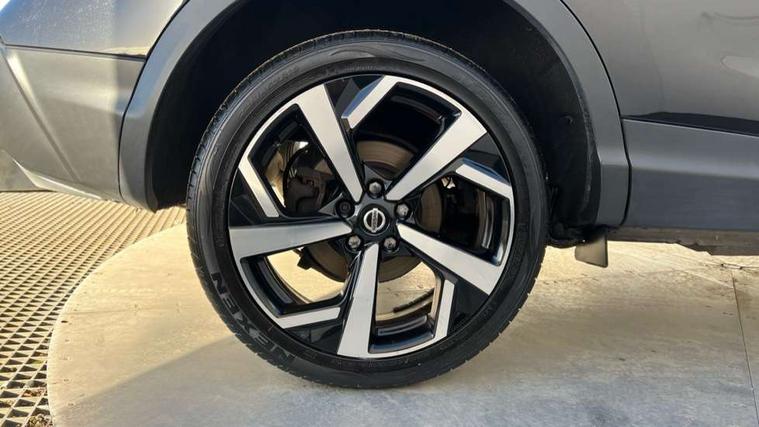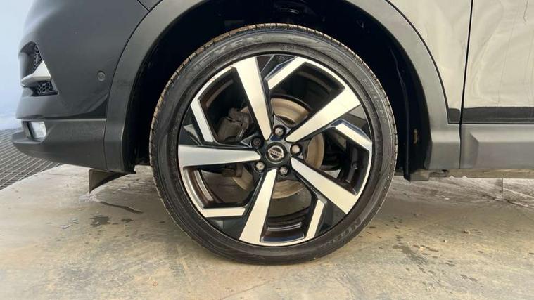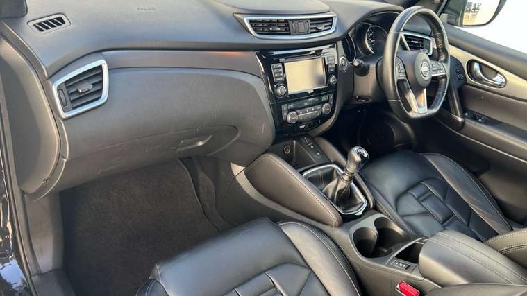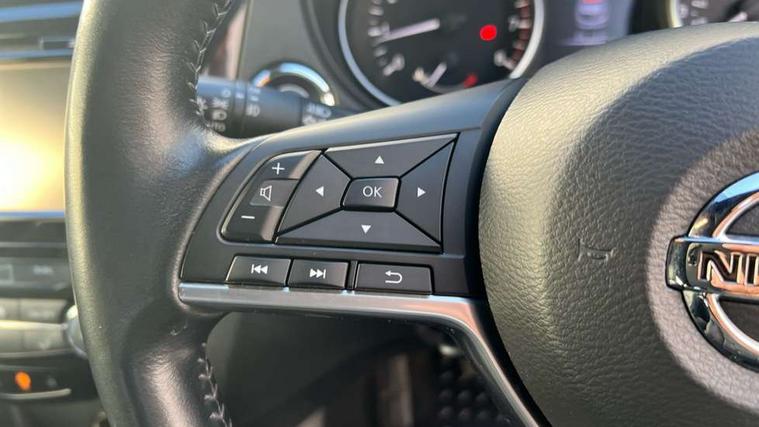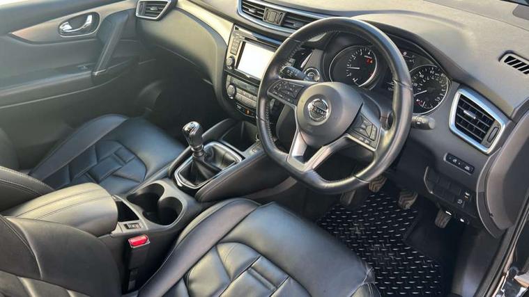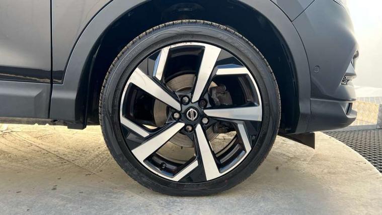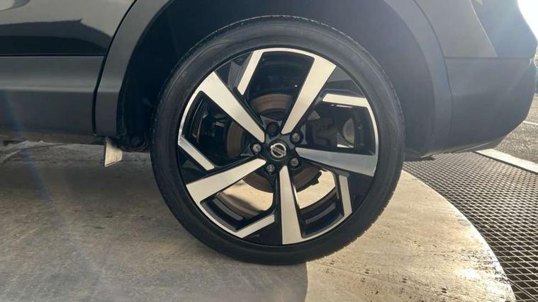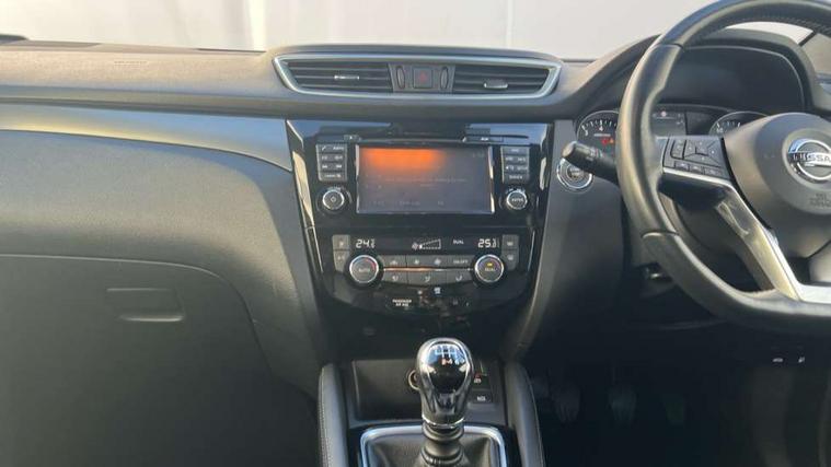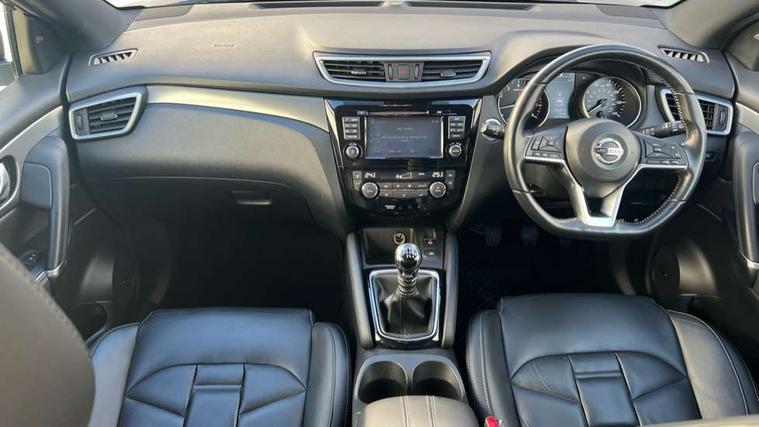 Advanced drive assist display 5'' TFT coloured screen, Android Auto, Apple CarPlay preparation, Bluetooth connectivity, Cruise control + speed limiter, Electric speed sensitive power steering, Front parking sensors, Intelligent around view monitor, Intelligent parking assist, Lane departure warning system, Nissan connect evo 7" touchscreen navigation and entertainment system, Normal or sport selectable steering, Outside temperature sensor, Push button starter, Rear parking sensors, Rear view camera, Service interval indicator, Smartphone integration, Stop/start system, Tomtom connected services, Traffic sign recognition, Trip computer, Voice control system, Nissan chassis control (intelligent ride control, intelligent trace control, intelligent engine brake), AM/FM radio, CD audio system, Aux-in socket, Bose premium 8 speaker system, DAB Digital radio, Steering wheel mounted audio controls, USB port, Anti dazzle rear view mirror, Auto wipers, Body colour bumpers, Body coloured door handles, Chrome window surround, Daytime running lights dip function when turn signal applied, Electric folding door mirrors, Electric front and rear windows with one touch illuminated window controls, Electric front/rear windows, Electrically adjustable door mirrors, Front fog lights, Gloss silver door mirror caps, Heated door mirrors, High beam assist, Intelligent auto headlights, LED indicators in door mirrors, Matt silver roof rails, Panoramic sunroof with one touch shade, Privacy glass, Rear roof spoiler, Rear wiper with reverse link, Shark fin antenna, Underbody vortex generators, 2 X front 12v power sockets, 3 height adjustable rear headrests, 60/40 split folding rear seat, Ambient lighting in centre console, Boot lighting, Centre console storage box/armrest, Chrome interior door handles, Configurable luggage board system, Dark headlining, Dual zone climate control, Electric 4-way lumbar support for drivers seat, Electrically adjustable driver seat, Electrically adjustable passenger seat, Front and rear door pockets with bottle holders, Front and rear seat belt pre-tensioners with load limiters, Height adjustable front headrests, Individual rear seat reading lights, Leather D shaped steering wheel, Leather gear lever, Leather knee pad, Manual lumbar support on passenger seat, Map reading lamp, Memory for drivers seat/door mirrors, Monoform front seats with plastic backboard, One touch electric shade, Parcel shelf stow function under luggage board, Pollen filter, Rear armrest with 2 cupholders, Synthetic leather wrapped door handle with contrasting stitching, Tilt/telescopic adjustable steering wheel, Heat package - Qashqai, LED pack - Qashqai, Safety shield plus pack - Qashqai, 6 airbags - Driver, front passenger, curtain and side airbags, ABS, ESP, EBD and brake assist, Auto hold function, Child locks on rear doors, Electronic parking brake, Front and rear seat belt warning, Front passenger airbag deactivation, Height adjustable front seatbelts, Hill start assist, Intelligent emergency braking with pedestrian recognition, Three 3 point rear seatbelts, Tyre pressure monitoring system, Anti-theft immobiliser, Intelligent Key, Remote central locking, Thatcham Cat.1 alarm, Carbon graphite dash trim, Tyre puncture repair kit,