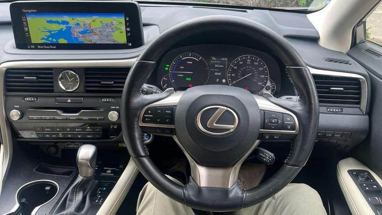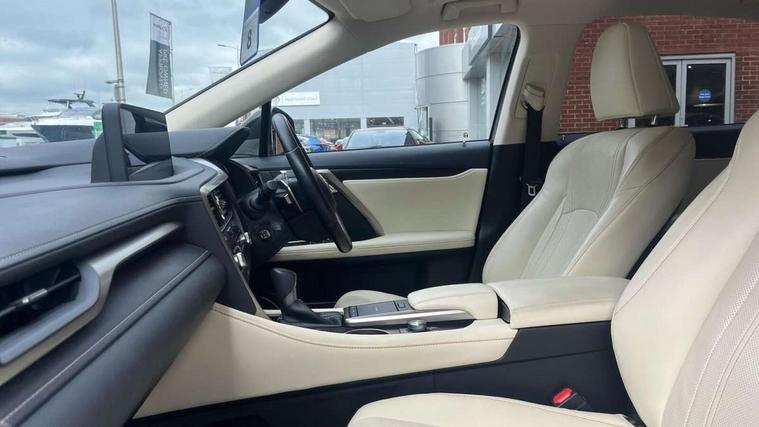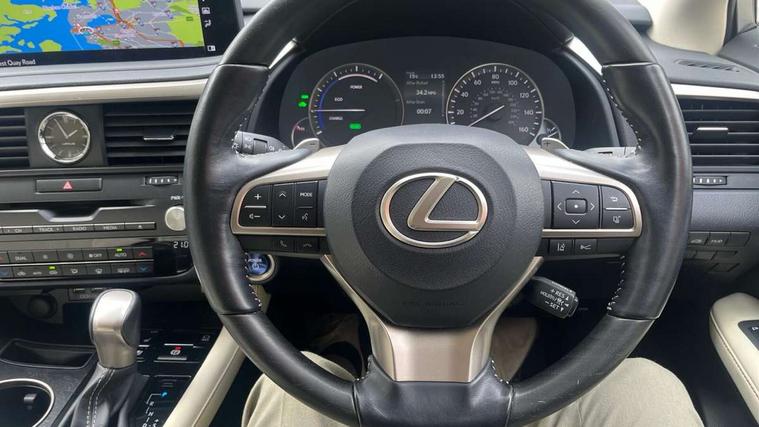 12.3" Touchscreen display and remote touch interface, 4 driving modes EV/Eco/Normal/Sport, Analogue clock with GPS function, Apple car play/Android Auto, Bluetooth mobile phone connectivity, Electric power steering, Emergency call service, Front and rear parking sensors with intelligent clearance sonar, Lane change flasher function, Lexus link connected services with available optional wifi, Lexus Premium Navigation with full European map capability, street view and connected services, Multi-information display 4-inch TFT, Push button starter, Reversing camera with back guide lines, Wireless Smartphone charger, E-Four Automatic transmission, Vehicle Dynamics Integrated Management (VDIM), Vehicle Stability Control (VSC), 12 speakers Pioneer audio, AUX socket with VTR compatibility, DAB Digital radio, DVD, Front and rear USB ports, 3 eye LED headlights with auto high beam, Auto dimming rear view mirror, Front and rear electric windows, Headlight washers, Heated, auto-folding door mirrors, auto dimming with rerverse tilt and memory, LED brake lights and rear lights with emergency brake signal, LED cornering headlights, LED daytime running lights, LED front and rear sequential indicators, LED front fog lights, Power back door with kick sensor, Privacy glass, rear doors and tailgate, Puddle lights, Rain sensor windscreen wipers, Rear side wing doors, Rear wash/wipe, Roof rails, 2 map pockets in the rear, 2 way electric lumbar support, 2 way manually adjustable front headrests, 2 way manually adjustable rear headrests, 2 x fixed shopping bag hooks in boot, 2 x Sunvisors with vanity mirror and lamp, 3 seat bench in 2nd row, 3 x 12V power sockets, 4 x tie down hooks in the boot, 40:20:40 split folding rear seats, 60/40 split folding rear seat with 40/20/40 folding ability, 8 way electrically adjustable front seats, Card holder installed in driver and passengers sun visors, Centre and rear armrest with 2 cupholders, Centre armrest with storage box, Climate concierge, Driver seat memory function, Driver's seat easy access auto retraction function, Dual zone climate control air conditioning system with S flow and Nanoe technology, Electrically adjustable leather steering wheel with paddle shifts and auto retraction function, Electrically adjustable steering column, Glasses holder in roof lighting panel, Heated front seats, Heated steering wheel, Isofix standard child seat restraint mounting, Leather gear lever, LED interior illumination, Rear armrest with storage, Self charging hybrid, Single front passenger seat, Sliding/reclining rear seats, Small compartment to right of steering wheel, Smooth leather upholstery, Textile carpet mats, Ventilated front seats, 3 point ELR front and rear seatbelts with pretensioners, ABS, Curtain airbags, Driver and front passenger 2 stage airbag, Driver/front passenger side airbags, Drivers knee airbag, EBD + Brake Assist, Electronic parking brake, Electronically controlled braking, Front passenger seat cushion airbag, Hill assist control, Lexus safety system - dynamic radar cruise control, pre collision system day and night, lane tracing assist, road sign, automatic high beam, OTA, Passenger airbag cut-off device, Rear door child safety locks, Rear passenger side airbags, Traction control, Tyre pressure warning, WIL whiplash protection front seats, Anti theft system with alarm, intrusion sensor, tilt sensor, glass breakage sensor and engine immobiliser, Locking wheel nuts, Security window etching, Smart keyless entry, Two motion door lock with double lock, Black grain inlay, 20" Alloy wheels, Temporary spare wheel,