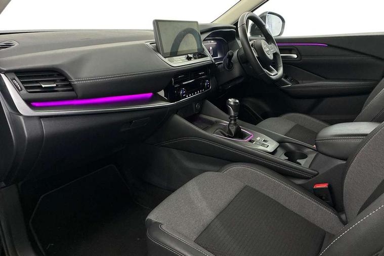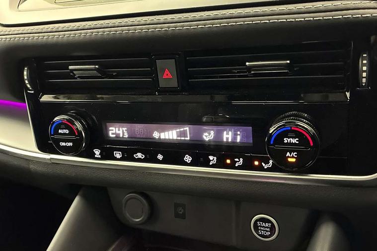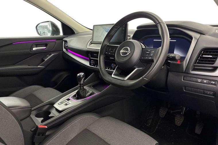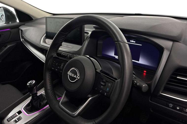 2 front USB-C ports, 2 rear USB-C ports, 360 degree Intelligent around view monitor with moving object detection, Blind spot intervention, Blind spot warning, Drive assist, Drive assist custom mode, Drive modes (sport, normal, eco), Driver drowsiness and attention warning, Electric speed sensitive power steering, Emergency and breakdown call, Emergency lane keep assist, Emergency Stop Signal (ESS), Engine start/stop button, Event data recorder, Front and rear parking sensors, Full Digital 12.3" TFT Digital Combimeter, Google virtual personal assistance, Idle stop/start system, In-car WIFI hotspot, Intelligent Cruise control (ICC), Intelligent forward collision warning, Intelligent speed assist, Lane departure warning system, Nissan connect 12.3 inch touchscreen infotainment system, Nissan connect navigation with google maps, Nissan connect services 2.0 (Google Automotive System), Outside temperature sensor, Rear cross traffic alert, Reversing detection, Wireless Apple CarPlay/Android Auto, Wireless charging pad, Limited slip differential, 6 speakers, AM/FM audio system with DAB, Bluetooth audio streaming, Auto rear wiper when reversing, Body colour mirror caps, Body coloured door handles, Bodyside mouldings, Chrome side window finisher, Electric auto folding door mirrors, Electrically adjustable and heated door mirrors with LED turn indicator, Follow me home headlights, High beam assist, Intelligent auto headlights, LED 3rd brake light, LED daytime running lights, LED Headlights, LED rear lights, One touch front and rear electric windows with remote opening and closing, One touch passenger window, Partially body coloured bumpers, Rear privacy glass, Rear roof spoiler, Rear side wing doors, Rear styling plate, Shark fin antenna, Splash free rain sensing wipers, Super UV and infrared cut glass, Three blink turn signal, 3 bench rear seats in 2nd row, 3 rear headrests, 60/40 split folding rear seat bench, Chrome interior door handles, Cloth upholstery, Dark headlining, Driver seat back pocket, Dual zone automatic climate control with pollen filter, Front door with bottle holders, Height adjustable front headrests, Leather shift knob, Luggage board system, Luggage space lighting, Multifunction steering wheel, Passenger seat back pocket, Rear door bottle holders, RGB ambient light (Full area coverage), Single front passenger seat, Smooth leather steering wheel, Tilt/telescopic adjustable steering wheel, Two rear isofix child seat anchorage points with top tether, 3x3 point rear seatbelt pretensioners + load limiters, Autonomous emergency braking, Child locks on rear doors, Curtain and front side, far side airbags, Driver and passenger airbags, Driver, passenger and 2nd row rear seat belt reminder, Electric handbrake with auto hold function, Front seatbelt pretensioners + load limiters, Height adjustable front seatbelts, Hill start assist, intelligent front emergency braking, Rear automatic braking, Tyre pressure monitoring system, Vehicle dynamic control, Engine immobiliser, Intelligent key with walk away lock and approach unlock functions, Remote central door locking with deadlocking, Thatcham alarm, 18" Diamond cut alloy wheels, Tyre puncture repair kit,