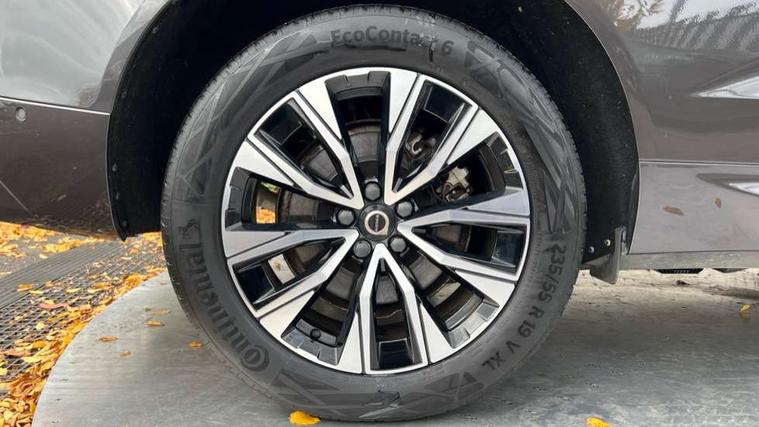 12.3" Progressive Driver Display, 360 degree surround view parking camera with side proximity sensors, 9" centre console touch screen, Adjustable steering wheel force, Bluetooth handsfree system, Driver alert control with lane keeping aid, Driver assistance (pilot assist and adaptive cruise control), Driver awareness - Blind spot information system with steer assist, cross traffic alert with autobrake and rear collision warning and mitigation, Emergency services call system, Front and rear park assist, Google Automotive Services, Oncoming Lane Mitigation, PAS, Service interval indicator, Speed limiter, Speed sensitive steering, Trip computer, Volvo on call with App, Wireless/Inductive Mobile Phone Charging, 8 speed automatic transmission with start/stop + manual change functions, Diesel particulate filter, Dynamic chassis, DAB Digital radio, Premium Sound by Harman Kardon, dirac unison, dolby pro logic II surround sound, 13 speakers/600W output and fresh air subwoofer, Steering wheel remote infotainment controls, Adaptive brake lights with high level LED brake lights, Auto dimming interior + exterior mirrors, Automatic headlight levelling system, Automatic LED Headlights + Active high beam incorporating daytime running lights, Electric adjustable/heated/auto power folding door mirrors, Electric front+rear windows, Front aluminium tread plates, Heated front windscreen, High gloss black door mirrors and window surround, High gloss black front and rear bumper decoratives, High gloss black mesh front grille with high gloss black surround, Home safe and approach lighting, Integrated roof rails in high gloss black, LED front fog lights, Puddle lights, Rain sensor with automatic windscreen wiper activation, Rear side wing doors, Rear wiper, Roof antenna, Roof spoiler, Tinted windscreen, Visible VIN plate, 12V socket in front tunnel console and luggage compartment, 3 seat bench in 2nd row, 4 Zone electronic climate control, A-pillar parking ticket holder, Air purifier particulate matter (PM) 2.5 filter, B Pillar ventilation, Bright metal luggage threshold, Centre console cupholders and storage, Charcoal floor mats, Front and rear courtesy lights, Front and rear door pocket illumination, Front cupholder illumination, Front footwell illumination, Front reading lights, Front seat cushion extensions, Glovebox compartment with illumination, Head restraints for all seats, Heated front seats, Heated steering wheel, Height/reach adjustable steering column, Illuminated luggage compartment, Illuminated vanity mirrors + ticket holder, ISOFIX attachment on outer rear seats, Load cover, Load protection net, Multi directional lumbar support, Power driver seat with memory + exterior mirrors memory, Power height adjustable passenger seat, Rear armrest with cupholder, Rear footwell and front and rear side step illumination, Rear seat concealed storage, Single front passenger seat, Tailgate illumination and ambient door lighting, Underfloor stowage compartment, Versatile split folding rear seat - 60/40, 5 three point seatbelts, City safety with steering support with Pedestrian + cyclist + large animal detection + front collision warning with full auto brake, Drivers knee airbag, Dual stage driver/passenger airbags, Electronic parking brake with auto hold, First aid kit, Front seats SIPS airbags, Hill descent control - Off-road drive mode, Hill start assist, IC (Inflatable Curtains) - Full Length, Passenger airbag cut-off device, Power child locks on rear doors, Road sign information display, Run off Road Mitigation, Run off Road Protection, Seatbelt reminder and pretensioners, SIPS (Side Impact Protection System), Slippery road and hazard light alert, Stability and Traction Control with Spin control, Engine Drag Control and Corner Traction Control, Tyre pressure monitoring system, Vehicle deceleration control with Anti-lock Brake System, Electronic Brake Distribution and Emergency Brake Assist, Warning triangle, WHIPS whiplash protection system - front, Anti-theft alarm including immobiliser/volume sensor + level sensor, Care key with user defined top speed, Key integrated remote control central locking + fuel flap with deadlocking system and auto open/close power windows, Keyless Drive (includes Keyless Entry and Keyless Start) with Handsfree Tailgate Opening/Closing, Locking wheel nuts, Private locking for tailgate,