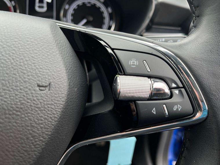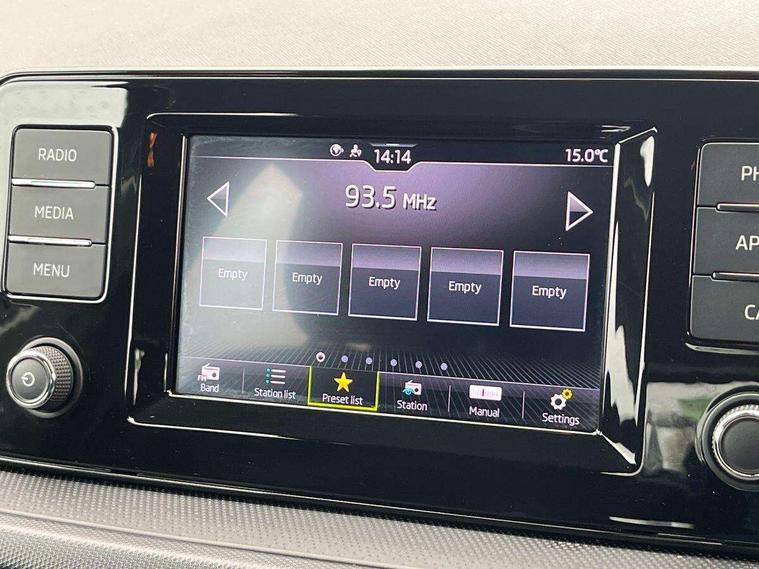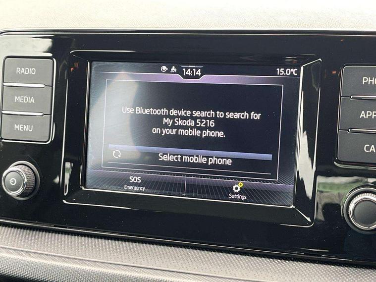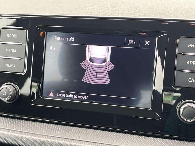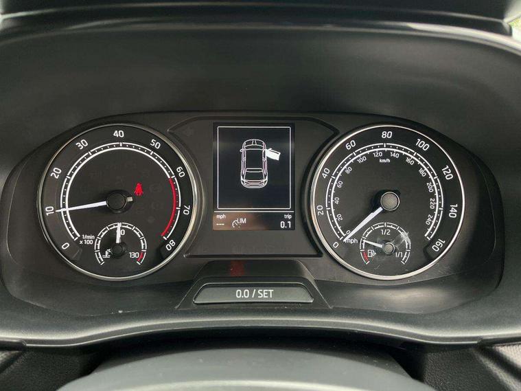 Bluetooth connection, Driver alert system - DAS, Electromechanical power steering, Exterior temperature gauge, Lane assist including road edge detection, Multifunction trip computer in black and white, Service interval indicator, Speed limiter, 2x USB-C in the front (for data transmission and charging), 4 speakers in front, Auxiliary socket for external MP3 player, DAB digital radio reception, Radio Swing with 6.5" colour display, Basic LED Headlights, Basic rear lights, Body colour door mirrors, Body coloured bumpers, Dimming rear view mirror with black frame, Door mirror integrated indicators, Electrically adjustable and heated door mirrors, Electrically adjustable front windows with function auto up/down, Front fog lights, Front window wiper intermittent control, Headlight range control - Automatic, Ice scraper in fuel cap, LED daytime running lights with coming and leaving home feature, Mechanical adjustable rear windows, Rain sensor, Rear LED fog light, Rear side wing doors, Rear window wiper with washing nozzles, Roof mounted spoiler, SKODA tailgate lettering in chrome, Third brake light, 2 reading lights in front and 2 reading lights in rear, 2 spoke leather multifunction steering wheel, 3 rear headrests, Backrest split and folding, Central console with fixed cup holder and storage box, Chrome handbrake release button, Fabric upholstery, Gearshift knob/handle in leather, Grain satin black interior door handles, Hand brake lever handle in leather, Height adjustable front headrests, Height adjustable front seats, Height adjustable steering wheel, ISOFIX and TopTether anchorage points to the outer rear seats, ISOFIX and TopTether on the front passenger seat, Luggage compartment lighting, Manual air conditioning, Manually adjustable lumbar support in front seats, Pollen filter, Rear seat bench unsplit, Single front passenger seat, Storm grey headlining, Sun visors with mirror and airbag label on passenger side, Ticket holder, 3-point height adjustable front seats belts with pretensioner and force limiter, Automatic warning lights in case of crash, Driver and passengers airbag with switch off function, e-Call+, ESC including ABS, MSR, ASR, EDS, HBA and XDS, Front and rear seat belt warning, FRONT ASSIST (AEB City and AEB Inter Urban), Front side airbags, Head airbags, One tone horn, Pedestrian protection, Three rear 3-points safety seat belts with pretensioner and force limiter including stop function for outer rear seat belts, Tyre pressure monitoring system, Anti-theft alarm system including immobiliser, interior monitoring, backup horn, and towing protection, Central locking with radio remote control, interior controls, SAFE function and 2 foldable keys, Black painted air vents, Glossy black decorative trim, Grain satin black central console cover, Grain satin black lower decorative trim, Satin black door and side trim panel in front, Anti-theft wheel bolts protection, Super-low rolling resistance tyres,