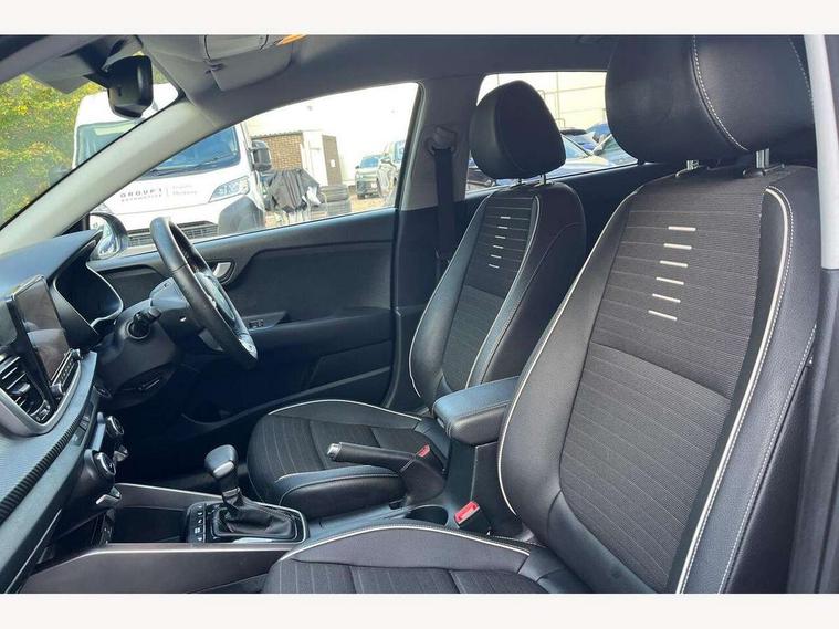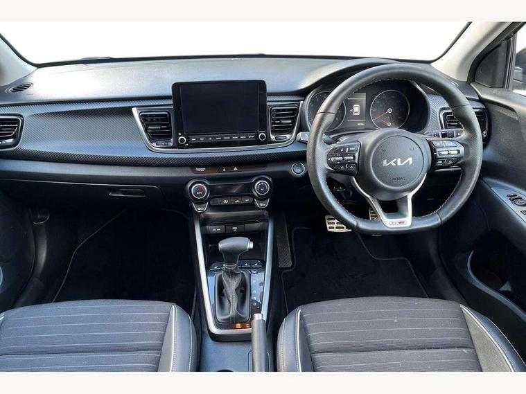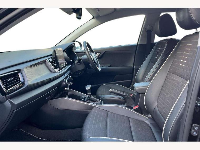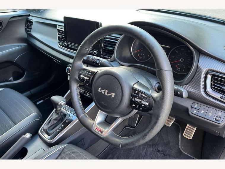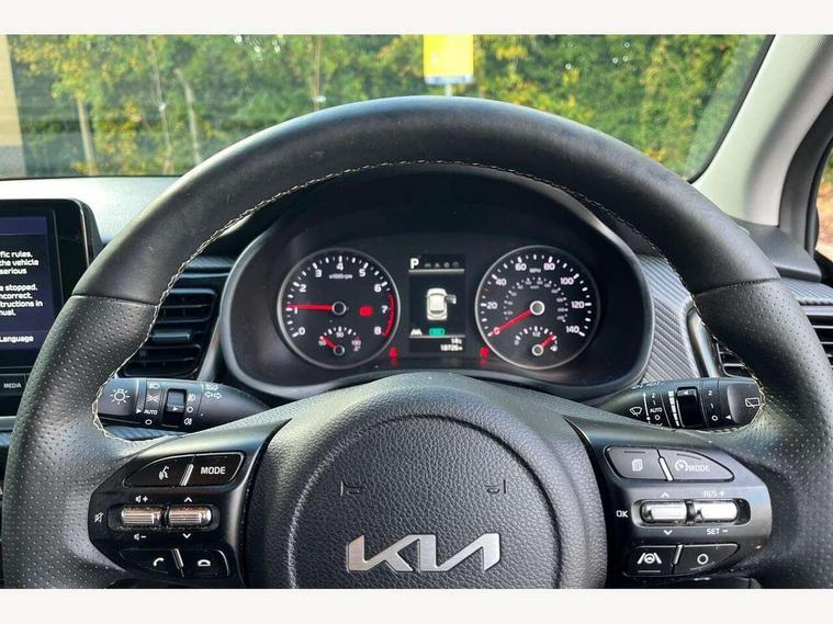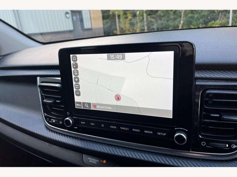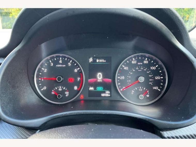8" touchscreen navigation, Apple car play/Android Auto, Blind spot collision warning, Cruise control + speed limiter, Digital clock, Drive mode selector, Electric power steering, Emergency stop signalling system, Front parking sensor, Gear selection indicator, Manual speed limit assist (MLSA), Outside temperature display, Rear parking sensor, Reversing camera system with dynamic guidelines (Integrated into centre fascia screen), Tachometer, Trip computer, UVO connect, Voice control system, Windscreen washer level indicator, Intelligent Stop and Go, 6 speakers, Bluetooth connectivity including audio streaming, DAB Digital radio, Front USB port for media connection, Rear USB port, Steering wheel mounted audio controls, Aeroblade-type front wipers, Auto dimming rear view mirror, Automatic defog system, Automatic lighting control, Bi-function projection headlights, Body colour door handles, Chrome side window trim, Cornering light, Electric adjustable/heated/folding door mirrors, Front electric windows with driver's auto up/down function, Gloss black and dark chrome surround radiator grille, Headlamp levelling, Heated rear window, High gloss black door mirrors, High Gloss Black rear spoiler, LED "Ice-Cube" Front Fog Lights, LED daytime running lights, LED indicators in door mirrors, LED rear fog light, Privacy glass (Rear Windows and Tailgate), Projection headlights, Rain sensing front wipers, Rear electric windows, Rear wash/wipe, Speed variable front wipers, Sports front bumper, Sports rear bumper, Tinted glass, Twin exhaust pipes, Welcome home function, 3 passenger assist grips, 60/40 split/folding 2nd row of seats, All round height adjustable headrests, Automatic air conditioning, Centre Console with Storage Box and Sliding Armrest, Cloth/faux leather upholstery with grey stitching, Dash illumination dimmer switch, Driver's seat height adjuster, Driver/passenger sunvisors and illuminated vanity mirrors, Front and rear door map pockets with bottle holder, Front passenger seatback pockets, Front USB charger port and 12V socket, Heated front seats, Heated steering wheel, ISOFIX top tethers and lower anchor points, Leather D cut steering wheel, Leather trimmed gearshift, Load area light, Luggage area parcel shelf, Luggage hooks, Metal pedals, Overhead console with sunglasses holder, Satin chrome interior door handles, Tilt/telescopic adjustable steering wheel, Advanced driving assistance pack - Rio, 3-point front seatbelts, 3x3 point rear seatbelts, ABS with Electronic Brakeforce Distribution (EBD) and Brake Assist System (BAS), Automatic unlocking of doors in case of impact, Cornering brake control (CBC) and Straight line stability (SLS), Electronic stability control (ESC) and vehicle stability management (VSM), Front seatbelt pretensioners + load limiters, Height adjustable front seatbelt anchors, Hill start assist control (HAC), Passenger airbag deactivate switch, Rear child proof door locks, Seatbelt warning, Traction control, Twin curtain airbags, Twin front airbags, Twin front side airbags, Tyre pressure monitoring system, Anti theft alarm, Deadlocking system, Engine immobiliser, Locking wheel nuts, Smart key with engine start/stop button, Speed sensitive auto door locking, Visible vehicle identification number, Carbon Fascia Trim, 17" Alloy wheels, Tyre mobility system,