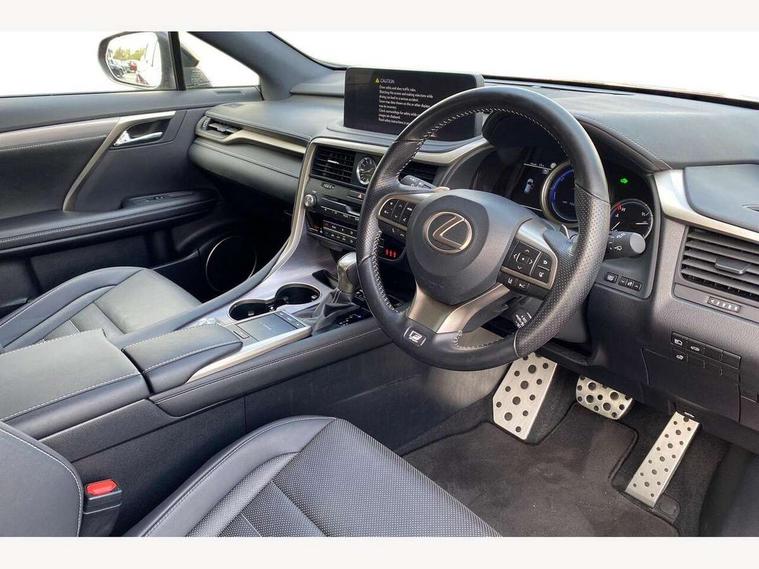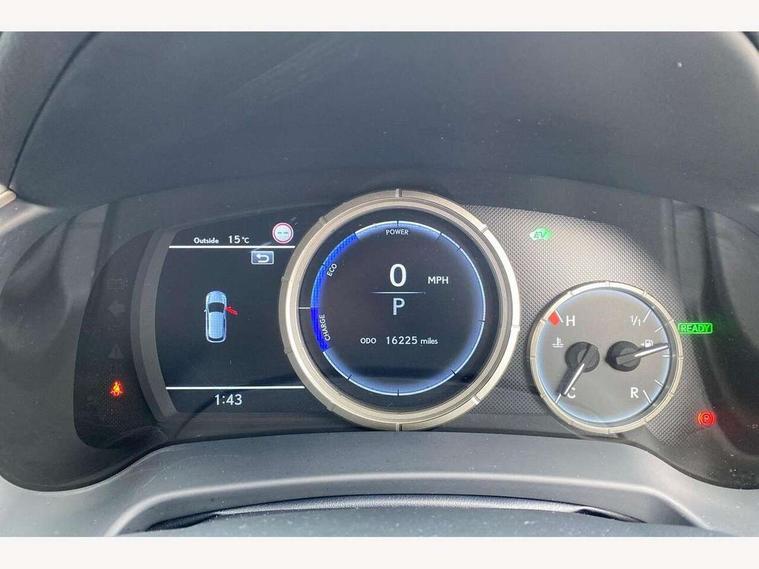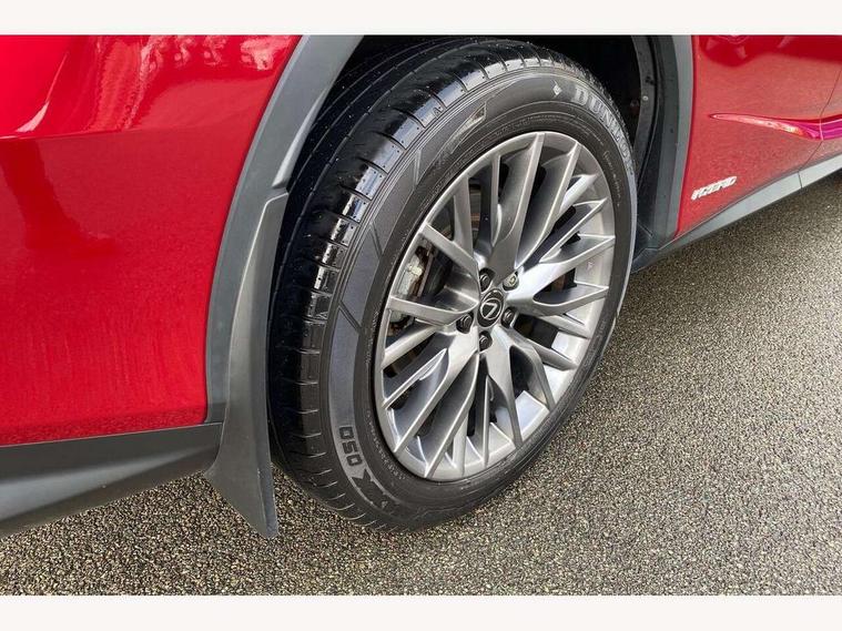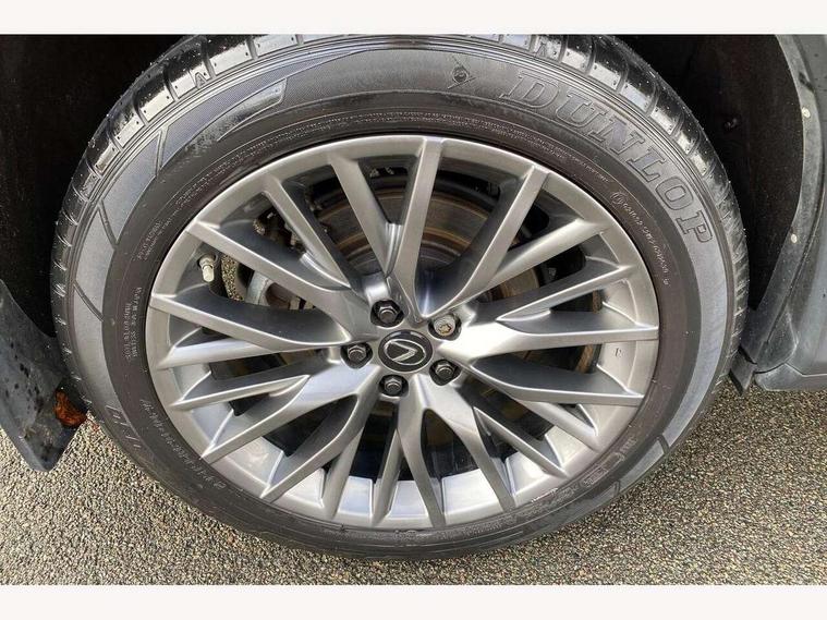 12.3" Touchscreen display and remote touch interface, 5 Driving modes EV/Normal/Eco/Sport/Sport+, Analogue clock with GPS function, Apple car play/Android Auto, Bluetooth mobile phone connectivity, Electric power steering, F SPORT combination meter, Front and rear parking sensors with intelligent clearance sonar, Hands free power boot lid operation with kick sensor, Lane change flasher function, Lexus link connected services with available optional wifi, Lexus Premium Navigation with full European map capability, street view and connected services, Multi-information display 4-inch TFT, Push button starter, Reversing camera with back guide lines, Wireless Smartphone charger, Adaptive variable suspension, F SPORT specific suspension tuning, Front and rear performance dampers, Vehicle Dynamics Integrated Management (VDIM), Vehicle Stability Control (VSC), 12 speakers Pioneer audio, AUX socket with VTR compatibility, DAB Digital radio, DVD, Front and rear USB ports, 3 eye LED headlights with adaptive high beam system with bladescan, Auto dimming rear view mirror, F SPORT exterior styling consists of Mesh front grille, front and rear bumper, badging, black outside mirror covers, Front and rear electric windows, Headlight washers, Heated, auto-folding door mirrors, auto dimming with rerverse tilt and memory, LED brake lights and rear lights with emergency brake signal, LED cornering headlights, LED daytime running lights, LED front and rear sequential indicators, LED front fog lights, Privacy glass, rear doors and tailgate, Puddle lights, Rain sensor windscreen wipers, Roof rails, 2 map pockets in the rear, 2 way electric lumbar support, 2 way manually adjustable front headrests, 2 way manually adjustable rear headrests, 2 x fixed shopping bag hooks in boot, 2 x Sunvisors with vanity mirror and lamp, 3 x 12V power sockets, 4 x tie down hooks in the boot, 60/40 split folding rear seat with 40/20/40 folding ability, 8 way electric adjust front seats, Active sound control, Card holder installed in driver and passengers sun visors, Centre and rear armrest with 2 cupholders, Centre armrest with storage box, Climate concierge, Drilled F SPORT aluminium sports pedals, Driver seat memory function, Driver's seat easy access auto retraction function, Dual zone climate control air conditioning system with S flow and Nanoe technology, Electrically adjustable F SPORT leather steering wheel with paddle shifts and auto retraction function, Electrically adjustable steering column, F SPORT leather gearlever, F SPORT seats - Leather upholstery, Glasses holder in roof lighting panel, Heated front seats, Heated steering wheel, Illuminated entry system, Isofix standard child seat restraint mounting, LED interior illumination, Rear armrest with storage, Rear door sunshades, Self charging hybrid, Sliding/reclining rear seats, Small compartment to right of steering wheel, Textile carpet mats, Unique LED illumination instrumnet panel, Ventilated front seats, 3 point ELR front and rear seatbelts with pretensioners, ABS, Curtain airbags, Driver and front passenger 2 stage airbag, Driver/front passenger side airbags, Drivers knee airbag, EBD + Brake Assist, Electronic parking brake, Electronically controlled braking, Front passenger seat cushion airbag, Hill start assist, Lexus safety system + includes dynamic radar cruise control, pre collision system day and night, lane tracing assist, road sign, adaptive high beam, Passenger airbag cut-off device, Rear passenger side airbags, Traction control, Tyre pressure warning, WIL whiplash protection front seats, Anti theft system with alarm, intrusion sensor, tilt sensor, glass breakage sensor and engine immobiliser, Locking wheel nuts, Security window etching, Smart keyless entry, Two motion door lock with double lock, Aluminium inlays, 20" F SPORT alloy wheels, Temporary spare wheel,