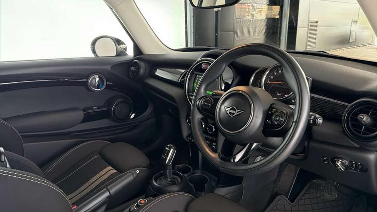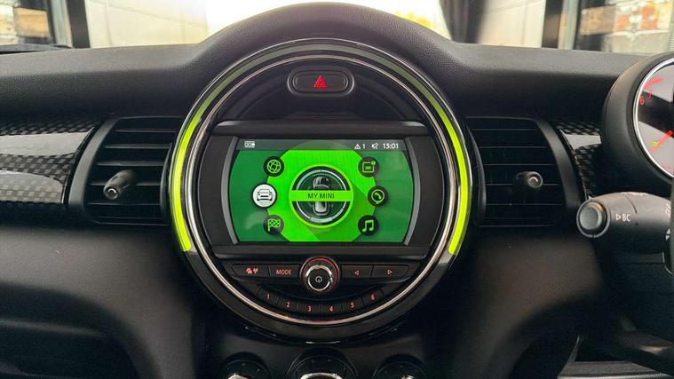 Compatible mobile phone bluetooth with audio streaming, Instrument cluster, Mini E-call, MINI TeleServices, On board computer, Service interval indicator, Performance Control, Steptronic transmission with double clutch, 6.5" touchscreen with LED ring, FM tuner and DAB digital radio, Automatic headlight activation switch, Bonnet scoop, Chrome border honeycomb structure radiator grille with S badge, Chrome plated fuel cap, Dynamic brake lights, Electric front windows, Heated rear window, Heated windscreen washer jets, LED headlight with closed ring and daytime driving lights, Metal door sill strips with Cooper S imprint, Model logo Cooper S on right of tailgate, Rain sensor window wipers, Rear fog lights, Rear LED lights with union jack design, Rear window wiper, Side scuttle panel with integrated indicator, Sun/heat protection glass, Two central exhaust tailpipes with chrome finisher, White indicator lenses, 12V Accessory socket in centre console, 4 lashing eyes in luggage compartment, 60/40 split folding rear seat, Chrome interior highlights, Colour line - Carbon black, Cupholders, Front and rear isofix with front passenger airbag deactivation, Glove compartment, Height and length steering column adjustment, Interior lighting with 12 basic colours selectable via toggle switch in roof, Leather gearshift lever and handbrake gaiters, Manual air conditioning, Mechanical seat adjustment, driver seat height adjust, forward/back and front seats backrest, Mini logo projection on floor from drivers exterior mirror, Multifunction steering wheel, Satellite grey headlining, Storage compartments in doors, Storage pocket on back of front seats, Sunvisors with vanity mirrors, 3 point seatbelts on all four seats, 6 Airbags - front, side, head and seat belt tensioners, Anti-lock braking system (ABS), DSC - Dynamic Stability Control, Front and rear disc brakes, Hill start assist, Two tone horn, Tyre pressure monitoring system, Alarm system with tilt sensor, monitoring doors, bonnet interior and tailgate, Electronic vehicle immobiliser, Start/stop toggle with keyless go, Tool kit,
