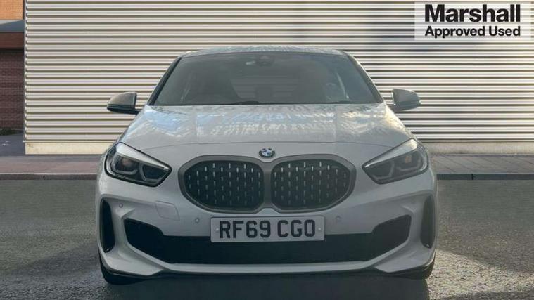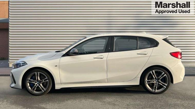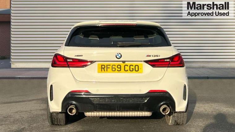Active guard plus, Attentiveness assist, BMW Live Cockpit Professional sat nav system including 10.25" high resolution display and Intelligent Voice Assistant, BMW Online services, BMW Teleservices, Check Control warning system for monitoring of lights and door/luggage compartment open warning, Eco pro mode, Integrated owners handbook, M Sports steering, On board computer, Optimum shift indicator, Personal Profile, Pull away assistant, Speed limiter, Anti roll bar front and rear, Balancer shaft, Double VANOS, Drive Performance Control, Electronic differential lock, Engine cover with M performance designation, High precision injection, Larger fuel tank capacity (50 litres), Launch control, Petrol Particulate Filter, VALVETRONIC engine management, Bluetooth audio streaming, DAB Digital radio, Auto dimming rear view mirror, Body colour door handles, Cerium grey exterior mirror caps, Direction indicator side lights in exterior mirrors, Electric folding and anti dazzle exterior mirrors, Fading support, Follow me home headlights, Front and rear electric windows with open and close fingertip control, anti trap facility and comfort closing, Front door sill finishers with M135i designation, Green tinted heat protection glazing, Headlight beam throw control, High gloss shadow line exterior trim, High level third brake light, Kidney grille frame in Cerium Grey with Mesh design, LED daytime running lights, Lightweight engineering, M logo designation side in cerium grey, M performance exhaust system, M rear spoiler, Matt black air guide grilles, Matt black roof moulding, B pillar finisher and wheel arch trim, Matt black window frame, Model designation on right side of tailgate, Nearside reverse light in rear light cluster, Rain sensor including auto headlights activation, Rear fog lights, Rear window wiper, Round exhaust system with twin cerium grey tailpipes in left and right split, Shark fin antenna, Visible VIN plate, Welcome lighting, Windscreen wipers with integrated washing jets, 12V power socket in centre console, 2 cupholders in front centre console, 3 rear seat head restraints, 3 spoke M sports design leather steering wheel finished in nappa leather with specific M badge, Anthracite headlining, Anthracite Velour floor mats, Child seat ISOFIX attachment for two outer rear seats and front passenger seat with anchorage points, Conditioned based service, Driver and front passenger seat heating, Driver side folding compartment in instrument panel, Folding rear clothes hook, Folding rear seats, Four grab handles integrated in roof lining, Front and rear door pockets, Front and rear side armrest integrated into door trim, Front armrest foldable with integrated storage compartment, Front M seats, Glove compartment, Height adjustable front head restraints, Manual adjust steering wheel, Multi-function controls for steering wheel, Rear seat backrest with manual 60:40 split folding with 3 top tether clips integrated on rear of seat panels, Storage compartment in centre console, Sun visors with vanity mirrors and insert tab, Two zone automatic air conditioning, Connected pack professional - 1 Series, Extended Lighting pack - 1 Series M135i, Extended storage pack - 1 Series, Interior lights pack - 1 Series, Luggage compartment pack - 1 Series, M Sport exterior styling aerodynamics pack - 1 Series 135i, 2 tone horn, 3 point seatbelts on all seats, front pyrotechnic belt tensioners, stopper and belt force limiters, rear coded belt buckles, Airbags - Front driver and passenger, front and rear head, front side, curtain head protection, Anti lock braking system (ABS) with brake assist, BMW emergency call, Brake drying, Braking readiness, Crash sensor activating central locking release, hazard warning lights, fuel cut off, interior lighting + activation of safety battery terminal clamp, Driver and front passenger seat belt security check, Dynamic stability control + (DSC+), Dynamic Traction Control - DTC, Electrically operated hand brake, Front passenger manual airbag deactivation, M Sport braking system, M sport seatbelt, Rear child proof door locks, Seatbelt warning, Side impact protection, Tyre pressure monitoring system, Warning triangle and first aid kit, Automatic drive away locking facility, Central locking switch for all doors, fuel filler cap and luggage compartment, Deadlocking function system to all doors, Locking wheel bolts, Remote control with integrated key with High-gloss Black inlay and M designation and 1 button for open/ close lock, window, open luggage compartment, Start/stop button with comfort go keyless engine start and auto start stop deactivation button, Thatcham Cat.1 alarm and immobiliser, Contrast stitching on instrument panel, 18" Burnished M double spoke Bi-colour alloy wheels finished in Cerium grey matt - style 556M, BMW mobility system, Reduced rolling resistance tyres,