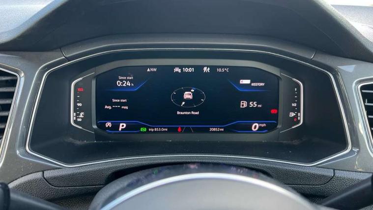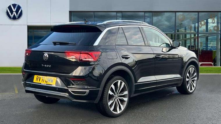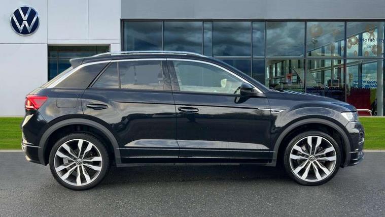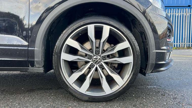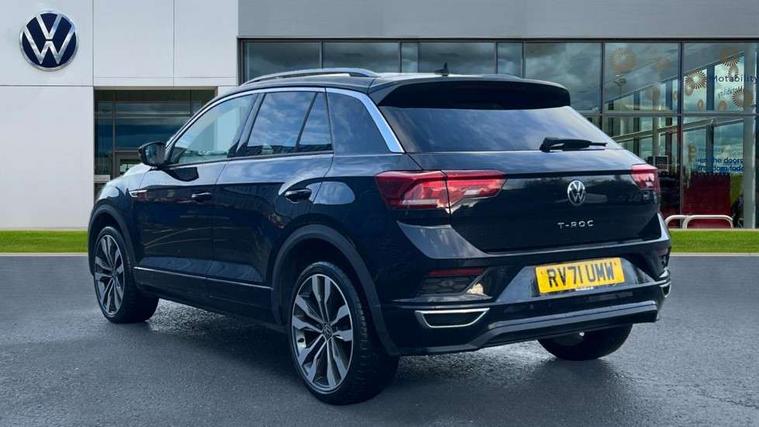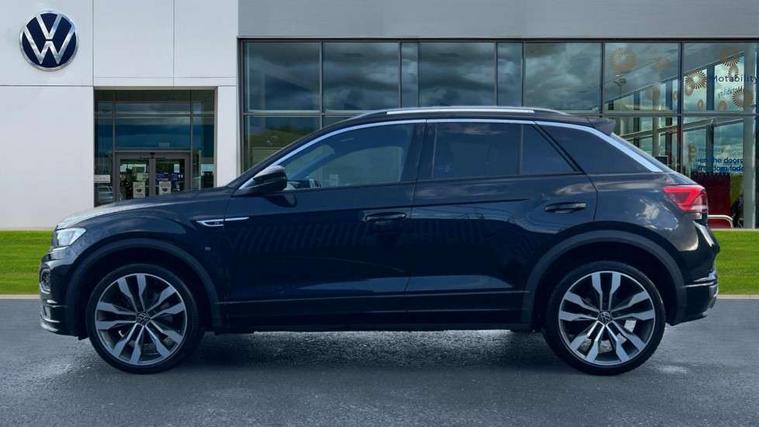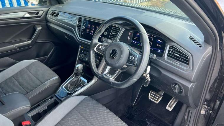 'Lights On' Reminder warning buzzer, Adaptive cruise control, Bluetooth telephone and audio connection for compatible devices, Car information display, Digital Cockpit Pro - Active info display, Driver alert system with audible and visual fatigue detection system, Driver tips and journey analysis, Emergency call service, Lane assist with warning text instrument cluster, Modified key software - reduce switch off time for key status change to Long no motion, Multifunction camera, Multifunction computer with visual gear change recommendation for fuel consumption, Navigation system discover media including streaming and internet, Service interval indicator, Think blue trainer driver tips and journey analysis, Traffic sign recognition, Voice activation, Warning sound and light for front seatbelts unfastened, Wireless app connect for apple carPlay, Battery regeneration during braking, Rear shock absorption for sports version, Start/stop function with battery regeneration, DAB Digital radio, Disk brakes in front, Diversity antenna for FM reception, Music playback - MP3, WMA and AAC files, Premium USB cable in choice of either Apple or Android smartphone compatibility, SD card slot, Simultaneous pairing of 2 compatible mobile devices, SMS functionality - read, compose and send SMS messages using touch-screen display, Storage compartment with longitudinal and height adjustable in armrest and two rear air vents, Three route options - Fast, Short, Eco, Title and cover art display, USB-C Interface and USB charging socket, Auto dimming interior rear view mirror, Automatic coming/leaving home lighting function and daytime running lights, Automatic hazard lights activation under emergency braking, Black grained lower door protectors, Body colored door lower parts, Body colour door handles, Body colour rear roof spoiler, Chrome effect left and right trapezoid exhaust tailpipe fascia surround, Chrome plated moldings, Chrome trim on upper and lower radiator grille, Dusk sensor, Dynamic headlight range control with self adjusting whilst driving, Electrically foldable, adjustable and heated door mirrors with puddle lights and reverse activated kerb-view adjustment on passenger's door mirror, External USB type C socket and charging sockets, Front and rear electric windows, Front fog lights with static cornering function, Front windscreen wiper with intermittent wipe and 4 position delay, Fully galvanised body, Heated rear window, Heated windscreen washer jets, High level 3rd brake light, LED darkened rear light clusters, LED headlamps with automatic range adjustment and unique signature LED separate daytime running lights, LED rear number plate lights, LED tail lamp rear comination lamps, Privacy glass, R-Line design body coloured bumpers, Rain sensor, Rear tinted glass from B-pillar backwards approx 65% tinted, Rear wash/wipe with intermittent wipe setting, Silver anodised roof rails, Volkswagen roundel, 12V socket in centre console storage area, 3 rear head restraints, 4 load lashing points in luggage compartment, Aluminium pedals, Black roof lining and sun visors, Branded points of interest, Carbon flag cloth upholstery, Chrome plated radiator grille inserts, air vent surrounds and light switch surrounds, Climate control - 2 zone electronic air conditioning with automatic air recirculation and allergy filter, Door and side trim panel, Door and side trim panel in foam film, insert in leatherette, Drawer under drivers seat, Front + rear carpet mats, Front centre armrest, Front cupholders x 2, Front seat back storage pockets, Front sports seats with R-Line logo on seat backrest, Glovebox, Heated front seats, Height adjustable front seats, Height/reach adjust steering wheel, Instrument lighting, white adjustable panel illumination, Interior light delay, Interior light in footwell, Isofix easy fit child seat preparation for 2 outer rear seats, Leather gearshift knob, Leather multi function sport steering wheel with gear change selection via paddle shift on steering wheel, LED interior light with switch off delay/dimmer and 2 front/rear LED reading lights, Load through provision with single cup holder when folded down, Luggage compartment cover, removable, Luggage compartment lighting, R Line badge, Scuff plates in door apertures, Split folding rear seat backrests with centre armrest, Stainless steel pedals, Storage compartment in left and right luggage area, Storage compartment in rear doors, Storage compartments in driver and front passenger doors, Sunvisors with illuminated vanity mirrors, Unique R Line door sill protectors, White ambient lighting, R line styling pack - T-Roc, Winter pack - T-Roc, 3 rear three point seatbelts, ABS, Curtain airbags, Driver and front passenger safety-optimised head restraints, Drivers and front passengers airbags with passengers deactivation switch, Drivers seatbelt reminder, Electronic parking brake with auto hold, Electronic stability control (ESC) includes ASR, EDL, EDTC and trailer stabilisation function, Front assist with city emergency braking and pedestrian monitoring, Front seat side impact airbags, Hill start assist, Predictive pedestrian protection, Rigid safety cell with front and rear crumple zones, Single tone horn, Three point height adjust front seatbelts + pretensioners, Tyre pressure loss indicator, Ventilated front and rear disc brakes, Volkswagen roadside assistance, Alarm with remote central locking and interior protection, Electronic engine immobiliser, Remote central locking with SAFELOCK, radio remote control with 2 remote control folding keys, Shadow grey decorative inserts in dash, centre console and door panel, 19" Suzuka alloy wheels with low rolling resistance tyres and anti wheel bolts,