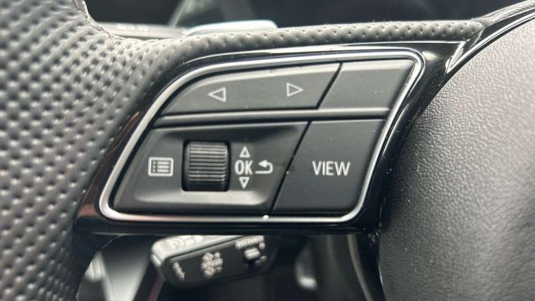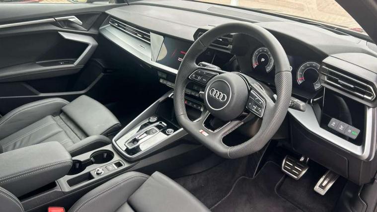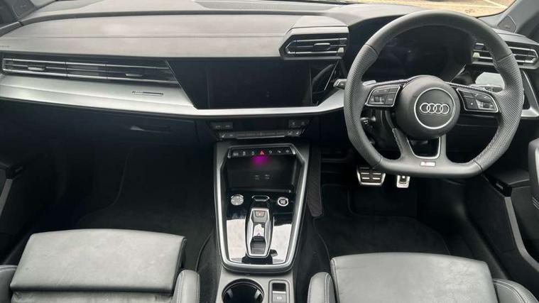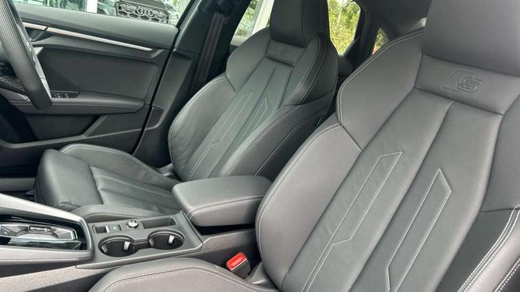 Adjustable speed limiter, Audi drive select, Audi smartphone interface with app store includes wireless Apple carplay, Android auto and Amazon alexa integration, Audi virtual cockpit plus - 12.3" full HD resolution dynamic digital instrument cluster, Automatic start/stop system with recuperation, Bluetooth interface, Camera based traffic sign recognition, Collision avoidance assistant, Cruise control, Distraction and Fatigue warning, e-Call (emergency call), Electromechanical power speed sensitive steering, Lane departure warning system, MMI Navigation Plus with high resolution 10.1" colour touch screen display, Park Assist with parking system Plus, Service indicator, Trip computer, Voice control system with natural language interaction, Sports suspension, Audi Phonebox light with wireless charging, Audi sound system - 10 loudspeakers including centre loudspeaker and subwoofer, DAB Digital radio, USB ports with charging function in the rear, Acoustic glass windscreen, Aluminium window trim, Auto dimming frameless rear view mirror, Body colour exterior mirrors, Chrome exhaust tailpipes, Electrically adjustable/heated/folding/auto dimming door mirrors with integrated LED indications + kerb view function for passenger side, Exterior model badging, Front and rear side air inlets in grained matt black with dark liquid chrome frame, Front electric windows, Front radiator grill in high gloss dark chrome, Heat insulating glass windscreen, Illuminated door sills with aluminium inserts at the front with S logo, LED 3rd brake light, LED daytime running lights, LED headlights with LED rear lights and dynamic rear indicators, Light and rain sensors, Privacy glass - dark tinted rear window, rear door and side windows, Rear boot, Rear diffuser and grill in grained matt black with inlay in dark liquid chrome, Rear electric windows, Rear side wing doors, S line bumpers, Side S line emblems on front wings, Side sill trim in dark liquid chrome, 12V socket and storage compartment in front centre console, 3 seat bench in 2nd row, 3 spoke flat bottomed leather multifunction sport steering wheel with gear shift paddles, 3-zone deluxe automatic air conditioning, 4 way electrically adjustable lumbar support for driver and front passenger, 40/20/40 split folding rear seat bench, Black cloth headlining, Front and rear centre armrest in artificial leather, Front and rear centre armrest in artificial leather with contrasting stitching on armrests and instrument panel, Front and rear headrests, Front/rear floor mats, Heated front seats, Height and reach adjustable steering wheel, Manual boot compartment lid, Manually adjustable front seats, Rear cup holders, S badging on the steering wheel, Seat side bolsters, Single front passenger seat, Stainless steel pedals and front footrest in black, Twin leather upholstery with front sports seats S embossed logo, Aluminium interior elements pack - A3, Multi-coloured LED interior lighting package - A3, 3x3 point rear seat belts, Driver and front passenger airbag with passenger airbag deactivation, Electronic Stabilisation Control (ESC) including ABS, ASR and EDL, First aid kit with warning triangle and 2 safety vests, Front side airbags with head airbags and interaction airbag, Hill hold assist, Pre-sense front with pedestrian and cyclist detection, Seatbelt monitoring, Tyre pressure loss indicator, Anti theft alarm, Anti-theft wheel bolts, Electronically operated child locks, Immobiliser, Remote central locking with safelock, Dash & door Inlay in dark aluminium Spectrum,