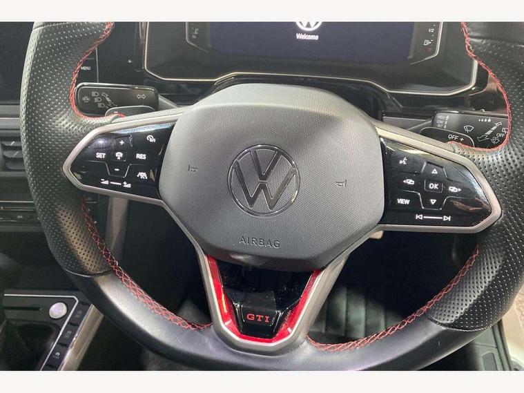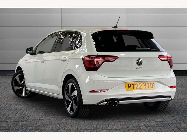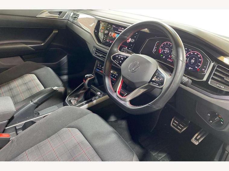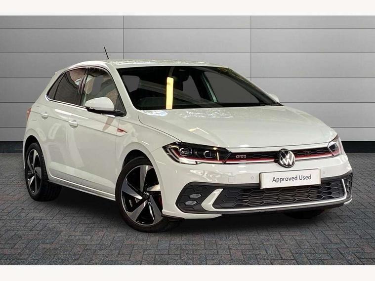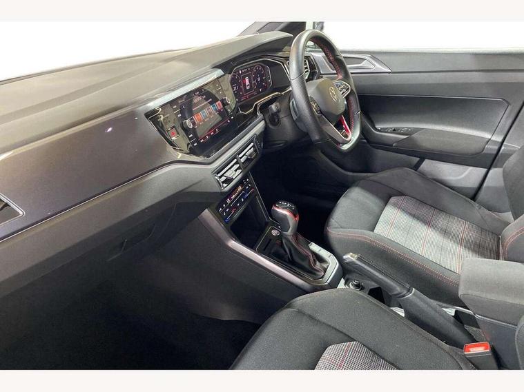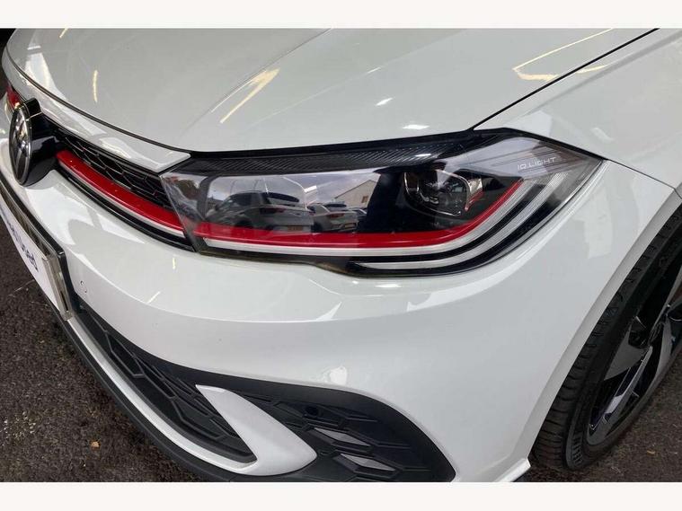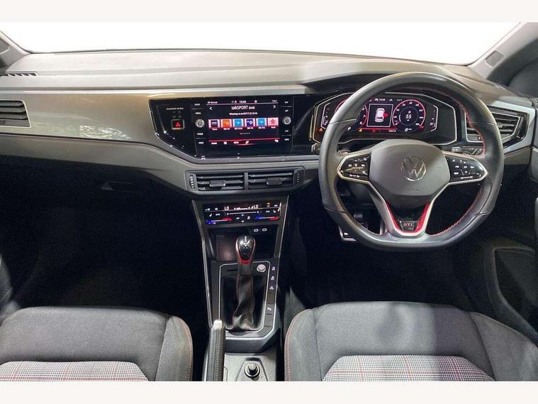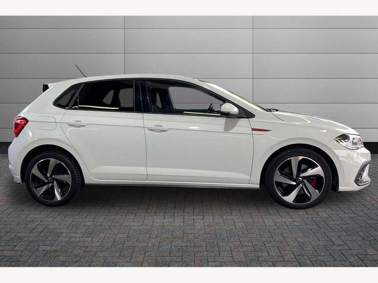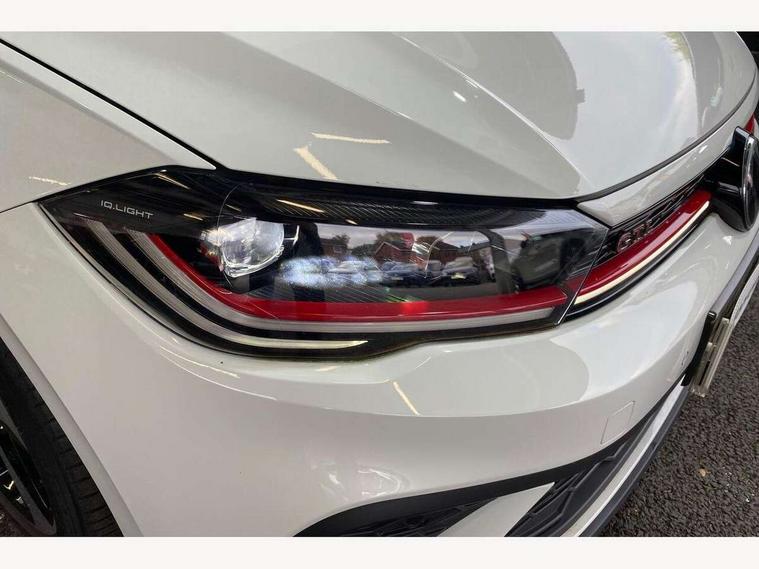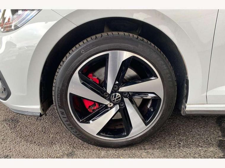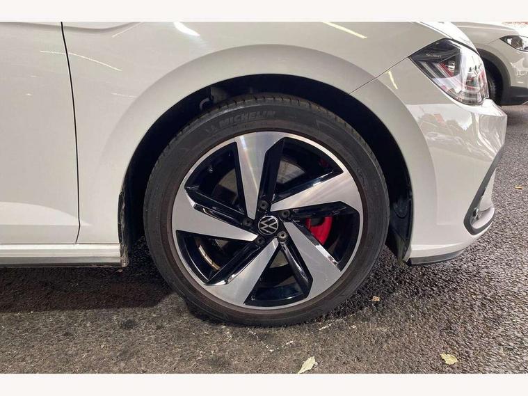 Adaptive cruise control with follow-to-stop and speed limiter, Bluetooth mobile phone interface, Digital Cockpit Pro with 10.25" Display, Driver alert system, Dynamic road sign display, Eco mode, Emergency call service, Power assisted speed sensitive steering, Preparation for We connect and We connect plus, Speedo and rev counter, electronic odometer, trip, service interval display and fuel gauge, Travel Assist - Lane keeping system and traffic jam assist, Travel assist including emergency assist, Trip computer, Warning signal and warning light for front and rear seatbelts not fastened, Washer fluid level indicator, Wireless app connect, Adaptive chassis control including driving profile selection, Front wheel drive, Heavy duty rear axle, Rear shock absorpion sports version, Sports select suspension lowered by 15mm, Start-stop system with battery regeneration (recuperation - energy recovery during braking), XDS electronic differential lock for improved traction and handling, DAB Digital radio, Diversity antenna for FM reception, Front and rear 6 speakers, Body colour bumpers, Body colour door handles, Electric front windows, Front scuff plates in aluminium with GTI logo, Heat insulating darkened glass in side and rear windows, Heat insulating glass windscreen, Power folding adjustable/heated exterior mirrors and front passenger exterior mirror lowering function, Rear electric windows, Rear fog light, Rear side wing doors, Rear windscreen washer and wiper with interval delay, Sport bumpers with air intakes with honeycomb structure, Third brake light, Twin chrome exhaust tailpipes, 12V power socket in centre console, 2 USB-C ports in the front, 2 USB-C charging sockets on the center console in the rear, 3 rear head restraints, 60/40 split folding rear seat and rear seat bench not split, Air care climatronic air conditoning system with active combination filter and 2-zone temperature control, Black roof lining, Ceramique headliner, Chrome plated radiator grille inserts, air vent surrounds and light switch surrounds, Door and side trim panel, Driver and front passenger seat height adjustment, Driver/passenger sunvisors with illuminated vanity mirrors, Front + rear carpet mats, Front centre armrest, Front footwell illumination, Front seat backrest storage pockets, GTI sports gearshift knob in aluminium leather, Handbrake lever handle in leather, Isofix child seat preparation easy-fit (for two outer rear seats, and front passenger seat) compatible with I-size, LED interior light with switch off delay and dimmer, 2 reading lights front and rear, Luggage compartment cover, Luggage compartment floor, Luggage compartment lighting, Single front passenger seat, Stainless steel pedals, Standard pedal cluster, Three spoke leather wrapped multifunction sports steering wheel with shifting paddles, IQ LED matrix headlights pack - Polo, Light and sight pack - Polo GTI, Sports suspension pack - Polo, 3 point height adj front seatbelts + pretensioners, 3x3 point rear seatbelts, ABS, Driver and front passenger airbag with front passenger airbag deactivation, Drivers and front passengers safety optimised head restraints, ESC (Electronic stability control) + EDL (Electronic Differntial lock) and ASR (Traction control), Extended and predictive pedestrian/ cyclist protection, Front and rear disc brakes with red brake calipers, Front curtain and side airbags with center airbag, Hill hold control, Manual child lock in rear doors, Two tone horn, Tyre pressure loss indicator, Alarm with interior protection, Anti-theft alarm system with interior monitoring, backup horn, and towing protection, Anti-theft wheel bolts, Electronic engine immobiliser, Chrome applications on rotary light, mirror adjustment, window regulator switches, outlet with frame in black, Low rolling resistance tyres,
