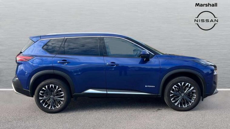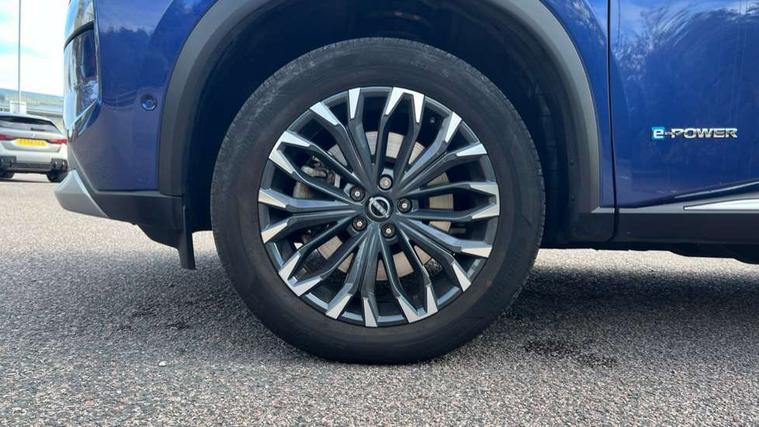 Advanced 10.8" head up display, Android auto wireless, Blind spot warning, Drive assist custom mode, Drive modes (sport, normal, eco), Driver drowsiness and attention warning, e-Pedal step, Electric speed sensitive power steering, Emergency and breakdown call, Event data recorder, Front and rear parking sensors, Full Digital 12.3" TFT Digital Combimeter, Google maps services - search, weather, 3D maps and Google street view, Hands free power tailgate, Idle stop/start system, Intelligent around view monitor, Intelligent Cruise control (ICC), Intelligent driver alert system, Intelligent forward collision warning, Intelligent lane departure warning, Intelligent lane intervention, Intelligent lane keep assist, Lane departure prevention, Maximum speed limiter, Moving object detection, Nissan connect 12.3 inch touchscreen infotainment system, Nissan connect nav with TomTom traffic, Propilot assist with Navi-Link, ProPilot park, Push button starter, Rear cross traffic alert, Rear view camera, Remote control services - door locks, lights, horn and car locator, Reversing detection, Telematics - notifications and connectivity services, Traffic jam pilot, Traffic sign recognition with legal speed adjustment, Trip computer, Virtual personal assistant and firmware over the air capability, Wireless apple carplay, Wireless charging pad, 6 speakers, AM/FM audio system with DAB, Bluetooth audio streaming, Front USB connections (Type-A and Type-C), Rear USB charging only ports 2 Type-C, Auto rear wiper when reversing, Body colour mirror caps, Body coloured door handles, Bodyside mouldings, Chrome side window finisher, e-POWER badging, Electric auto folding door mirrors, Electric sunroof/sunshade, Electrically adjustable and heated door mirrors, Follow me home headlights, High beam assist, Intelligent auto headlights, LED 3rd brake light, LED daytime running lights, LED front fog lights, LED headlights with adaptive driving beam, LED rear lights, One touch front and rear electric windows with remote opening and closing, Partially body coloured bumpers, Rain sensing wipers, Rear privacy glass, Rear reversing light (bulb lighting), Rear roof spoiler, Rear side wing doors, Rear styling plate, Roof rails, Shark fin antenna, Smart rear view mirror with auto dimming, Splash free wipers, Super UV and infrared cut glass, Thermaclear heated windscreen, Three blink turn signal, 12v power socket in dashboard and luggage, 3 bench rear seats in 2nd row, 3 rear headrests, 40/20/40 folding rear seats with recline, Butteryfly console, Chrome interior door handles, Driver and front passenger sunvisors with illuminated vanity mirrors, Driver seat back pocket, Electric adjustable 2 way lumbar support for driver, Electric adjustable 2 way lumbar support for passenger seat, Electric adjustable driver and passenger seat with memory function, Fore/Aft adjustable rear seats, Front and rear heated seats, Front centre console and armrest, Front cupholders, Front door with bottle holders, Heated steering wheel, Height adjustable driver's seat, Height adjustable front headrests, Height adjustable passenger seat, Leather shift knob, Leather steering wheel, Luggage board system, Luggage space lighting, Multifunction steering wheel, Passenger seat back pocket, Rear armrest with 2 cupholders, Rear door bottle holders, Single front passenger seat, Sliding second row seats, Steering column mounted gear shift paddles, Synthetic leather monoform upholstery, Tilt/telescopic adjustable steering wheel, Tri zone automatic climate control with pollen filter, Two rear isofix child seat anchorage points with top tether, Sky pack - X-Trail, 3x3 point rear seatbelt pretensioners + load limiters, ABS with EBD and brake assist, Active brake limited slip, Auto hold function, Child locks on rear doors, Curtain and front side, far side airbags, Driver and passenger airbags, Driver, passenger and 2nd row rear seat belt reminder, Electronic parking brake, Front seatbelt pretensioners + load limiters, Height adjustable front seatbelts, Hill start assist, Intelligent blind spot intervention, Intelligent front emergency braking with pedestrian, cyclist recognition and junction assist, Intelligent rear automatic braking, Tyre pressure monitoring system, Vehicle dynamic control, Approach unlock and walk away lock, Engine immobiliser, Intelligent Key, Remote central door locking with deadlocking, Thatcham Cat.1 alarm, 19" Diamond cut alloy wheels, Tyre puncture repair kit,