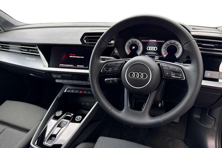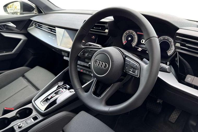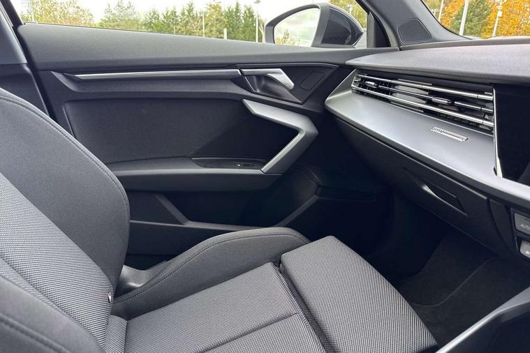Adaptive cruise control (ACC), Adjustable speed limiter, Audi drive select (Auto, Comfort, Dynamic, Efficiency and Individual), Audi virtual cockpit plus - 12.3" full HD resolution dynamic digital instrument cluster, Automatic start/stop system with recuperation, Bluetooth interface, Camera based traffic sign recognition, Collision avoidance assistant, Driver attention and fatigue detection, e-Call (emergency call), Electromechanical power speed sensitive steering, Emergency assist, Intersection assist, Lane departure warning system, MMI Navigation Plus with high resolution 10.1" colour touch screen display, Park Assist with parking system Plus, Reversing camera, Service indicator, Smartphone interface with app store includes wireless Apple carplay, Android auto and Amazon alexa integration, Trip computer, Voice control system with natural language interaction, Standard suspension, Audi Phonebox light with wireless charging, Audi sound system - 10 loudspeakers including centre loudspeaker and subwoofer, DAB Digital radio, USB ports with charging function in the rear, 3rd brake light, Acoustic glass windscreen, Aluminium window trim, Auto dimming frameless rear view mirror, Body colour exterior mirrors, Body colour roof spoiler, Electrically adjustable/heated/folding/auto dimming door mirrors with integrated LED indications + kerb view function for passenger side, Exterior model badging, Front electric windows, Front radiator grill in high gloss dark chrome, Front side air inlets in grained matt black with silver frame, Heat insulating glass windscreen, LED daytime running lights, LED headlights and halogen rear lights, Light and rain sensors, Rear diffuser and grill in grained matt black with silver frame, Rear electric windows, Rear side wing doors, Rear window, rear door windows and rear side windows in clear glass, Rear wiper, 12V socket and storage compartment in front centre console, 3 seat bench in 2nd row, 3 spoke leather multifunction steering wheel with gear shift paddles, 3-zone deluxe automatic air conditioning, 4 way electrically adjustable lumbar support for driver and front passenger, 60/40 split folding rear seat bench, Black front and rear floor mats, Front and rear headrests, Front centre armrest, Front door sill trims with aluminium inlay, Heated front seats, Height and reach adjustable steering wheel, i-Size child seat mounting on the front passenger side and outer rear seats, i-Size and top tether on the outer rear seats, Manual boot compartment lid, Manually adjustable front seats, Routine cloth upholstery with front sports seats, Seat side bolsters, Single front passenger seat, Steel grey cloth headlining, Aluminium interior elements pack - A3, LED interior lighting pack -A3, 3x3 point rear seat belts, Driver and front passenger airbag with passenger airbag deactivation, Electronic Stabilisation Control (ESC) including ABS, ASR and EDL, First aid kit with warning triangle and 2 safety vests, Front side airbags with head airbags and interaction airbag, Hill hold assist, Pre-sense front with pedestrian and cyclist detection, Seatbelt monitoring, Tyre pressure loss indicator, Anti theft alarm, Anti-theft wheel bolts, Electronically operated child locks, Immobiliser, Black dashboard, Inlays in volcano grey fine paint finish,