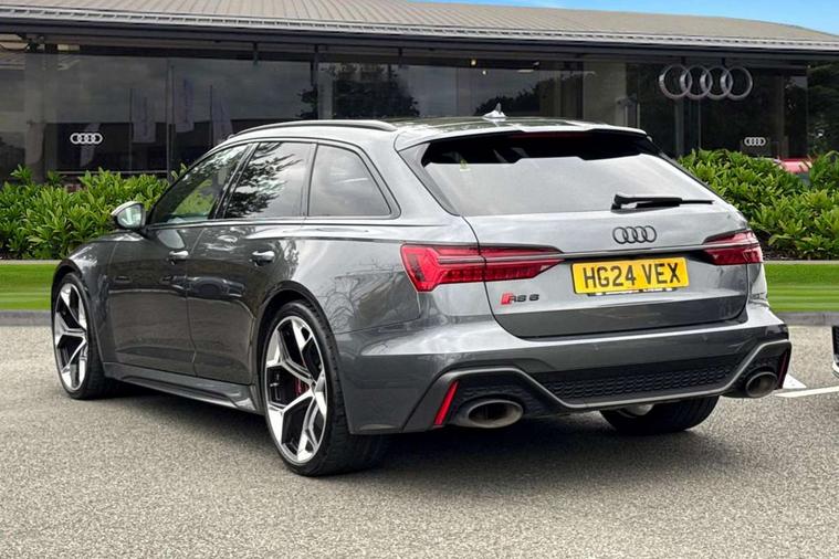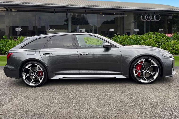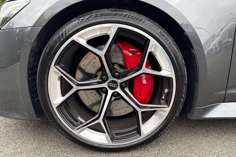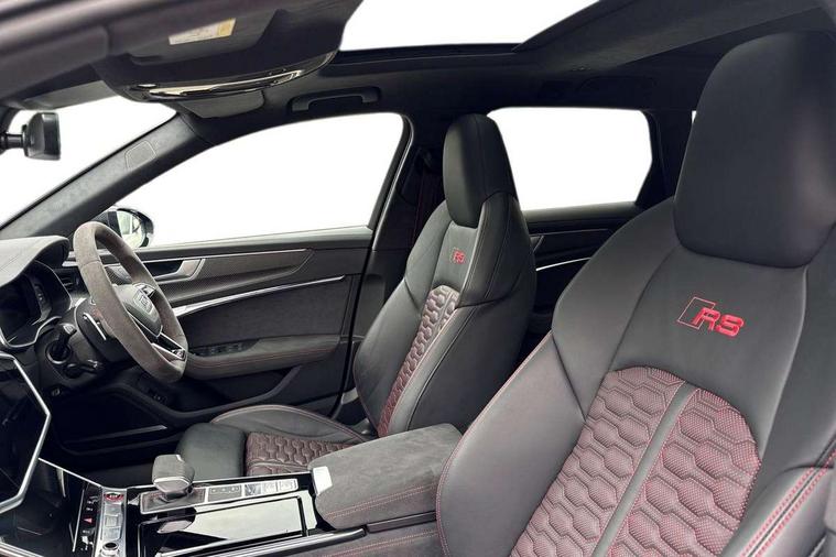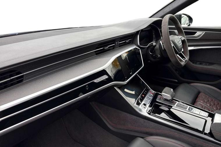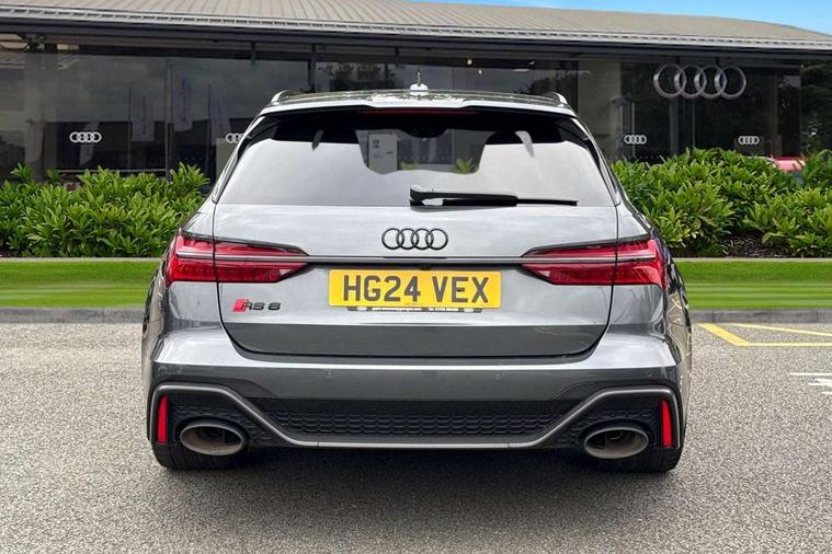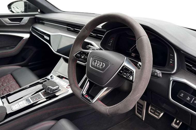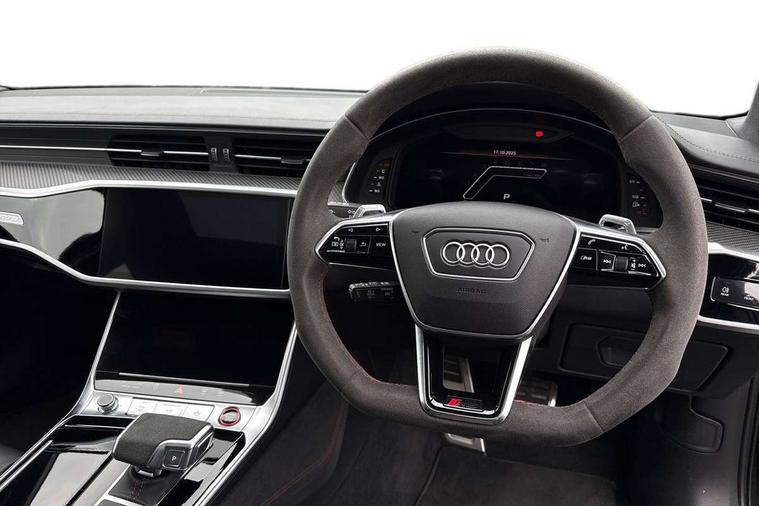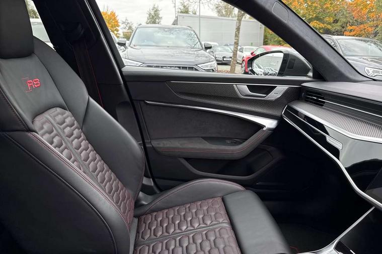 Audi connect safety and service (e-call), Audi connect with Amazon Alexa Integration, Audi drive select with 2 configurable RS modes, Audi smartphone interface with app store includes wireless Apple carplay, Android auto and Amazon alexa integration, Audi virtual cockpit plus with RS specific design and 12.3" display with additional graphic display options, Automatic start/stop system, Bluetooth interface, Dynamic all wheel steering, Head up Display, Lane departure warning system, MMI navigation with MMI touch + twin touch screens 10.1" and 8.6" with haptic and acoustic feedback, Night vision assistant, Operating buttons in black, glass look with haptic feedback including extended aluminium look, Power door closure, Power operated tailgate, Service interval indicator, Surround view camera system, Voice control system, 48V Mild hybrid technology, 73 litre fuel tank, Increased top speed to 174mph, Quattro sports differential, RS Sports suspension plus with dynamic ride control, 2 USB-C ports with charging functionality in the rear, Audi music interface, Bang & Olufsen 3D Premium Sound System, DAB Digital radio, 3rd brake light, Adaptive windscreen wipers with integrated washer jets, Black window trims, Electric front/rear windows, Electrically adjustable, heated and folding door mirrors with integrated LED indicators and kerb view function for passenger side, Frameless auto dimming interior rear view mirror, HD Matrix LED headlights with Audi laser light with dynamic light design and dynamic turn signal, Headlight washers, Heat insulating darkened glass in side and rear windows, LED daytime running lights, LED rear combination lamps with dynamic light design and dynamic turn signal, Panoramic glass sunroof, Privacy glass with rear/side windows and acoustic glazing side windows, Radiator grille in honeycomb structure, large front air inlets and rear diffuser in gloss black, Rain and light sensors, Rear side wing doors, Rear wiper, RS front bumper with air inlets on both side, RS rear spoiler in body colour, RS sports exhaust system with high gloss black oval tailpipe trims, Without tow bar preparation, 3 seat bench in 2nd row, 4 way electric lumbar support for driver and front passenger, 4 zone deluxe automatic climate control, Audi phone box light, Electric steering wheel adjustment, Electrically adjustable front seats with driver memory, Entry LED with RS Performance projection (Audi Beam) in front and rear, Front and rear headrests, Front centre armrest, Front seat ventilation, Heated front and rear seats, Illuminated front and rear door sill trims with aluminium inlays and RS6 logo, ISOFIX and Top Tether child seat mounting for the outer rear seats, ISOFIX child seat mounting and Top Tether with front passenger airbag deactivation, RS sports seat plus, Single passenger seat, Stainless steel pedals and foot rest, Air quality pack - RS6, Ambient lighting pack plus - RS6, City assist pack - RS6 Performance/carbon/vorsprung, Park assist pack with park assist plus - RS6, Storage pack - RS6, Tour pack - RS6 Performance/carbon/vorsprung, 3 point rear seatbelts, Direct tyre pressure monitoring system, EBD - Electronic brakeforce distribution, Electromechanical parking brake, Electronic Stability Control (ESC) including ABS, ASR and EDL, Extended pedestrian protection measures, Manual child lock in rear doors, Side airbags, front and rear including head airbag system and illuminated belt buckles, Warning triangle and first aid kit, Anti theft alarm with tow away protection, Immobiliser, Keyless Go, Performance tyres, Tyre repair kit,
