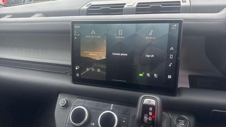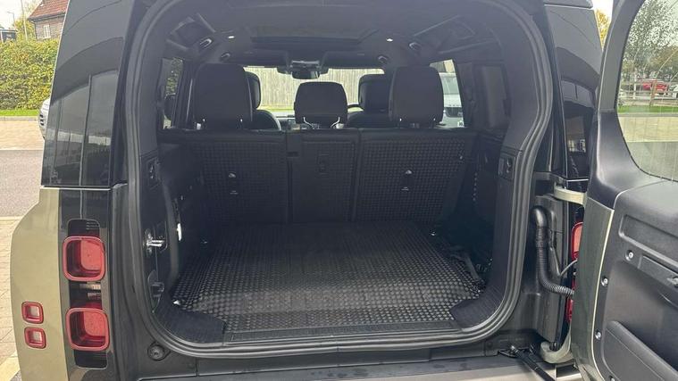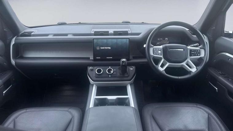 1 x USB-C (power only) & 1 x USB-C (power & data) in Row 1, 2 x USB-C in Row 2, 11.4" touchscreen, 360 degree parking aid, 3D Surround Camera with 360 View, 180 Rear View, Front Traffic Detection, Forward Vehicle Guidance, Tow Hitch Assist and clear sight Ground View, Adaptive cruise control, Android Auto, Apple CarPlay, Blind spot assist, Bluetooth system, Brake pad wear indicator, Clear exit monitor, Connected navigation pro, Driver condition monitor, Electric power assisted steering (EPAS), Interactive driver display, Lane keep assist, Push button start, Rear collision monitor, Rear traffic monitor, Traffic sign recognition with adaptive speed limiter, Trip computer, Wireless device charging, 8 speed automatic transmission, AC/DC charging, Adaptive dynamics, All wheel drive system, Electronic air suspension, Home charging cable mode 2 basic, Public charging cable, Twin speed transfer box, DAB Radio (Digital Audio Broadcasting), Meridian 700w surround sound audio system with 15 speakers, Pivi pro connected, Automatic headlight levelling, Automatic headlights, Black exposed rear recovery eyes, Body coloured bonnet, Centre high mounted stop light, Electric heated/power fold door mirrors with approach lights and auto dimming driver side, Electric windows with one touch open/close and anti-trap, Follow me home lighting, Front fog lights, Heated rear window with timer, Heated windscreen, Illuminated metal treadplates with brand name script, LED tail lights, Matrix LED headlights with signature DRL, Privacy glass, Puddle lights, Rain sensing windscreen wipers, Rear fog lights, Rear side wing doors, Rear wiper, Side hinged tailgate, Sliding panoramic roof, Standard tail door, Trailer stability assist, X-Dynamic badge, 12V power socket in loadspace, 3 seat bench in 2nd row, Alpine lights, Configurable cabin lighting, Durable rubber cabin flooring, Durable rubber loadspace flooring, Electric reach + rake adjustable steering column, Electrically adjustable steering column, Extended leather upgrade, Footwell lights, Front passenger isofix child seat attachment, Heated steering wheel, Loadspace cover, Loadspace Hook, Multifunction steering wheel, No flat load floor storage, Overhead stowage for sunglasses, Rear headrests, Rear ISOFIX, Rear reading lights, Single front passenger seat, Soft close tail door, Standard seat configuration, Storage glovebox, Sunvisors with illuminated vanity mirrors, Twin front cupholders, Non-smoker package, Online pack with data plan - Defender, 5 x 3 point seatbelts, ABS, Brake hold function, Cornering brake control (CBC), Customer configurable autolock, Driver and passenger airbags, DSC - Dynamic Stability Control, EBD - Electronic brakeforce distribution, Electric parking brake (EPB), Emergency brake assist, Emergency braking, ESP + traction control, Front airbags with passenger seat occupant detector, HDC - Hill descent control, Hill launch assist, Low traction launch, Power operated child locks, Remote for (e-Call, Optimised assistance call, InControl app, Climate, beep and flash and door), RSC - Roll stability control, Seat belt reminder, TPMS (Tyre pressure monitoring system), Alarm, Immobiliser, Intrusion sensor, Keyless entry, Locking wheel nuts, Secure tracker pro,