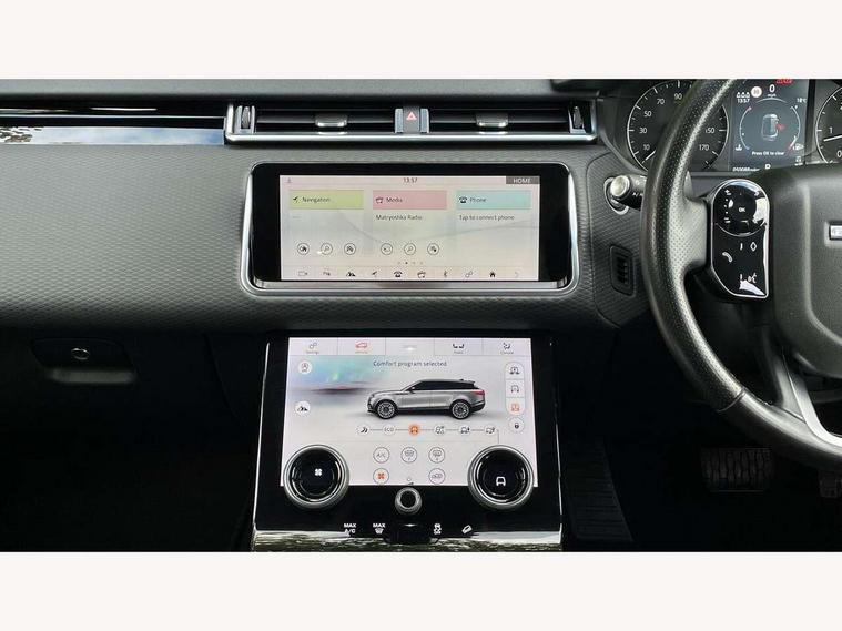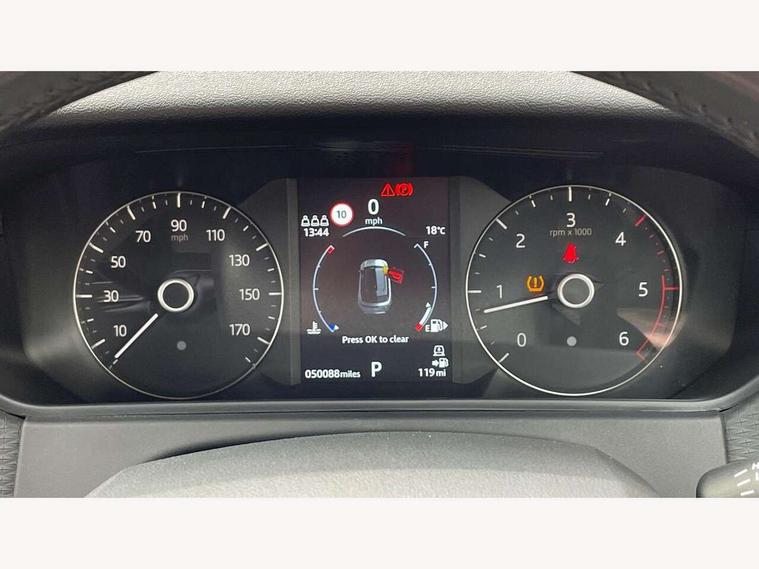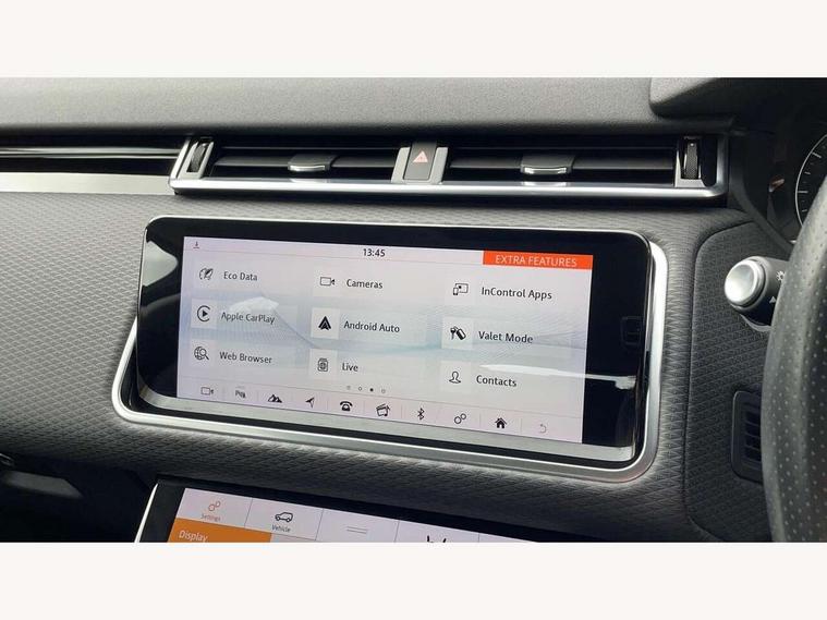 Bluetooth connectivity, Brake pad wear indicator warning light, Driver condition monitor, InControl remote, InControl Touch navigation pro, Land Rover InControl apps, Lane keep assist, Powered gesture tailgate/boot lid, Pro services and wifi hotspot, Service indicator, Speed proportional electronic power assisted steering (EPAS), Traffic sign recognition with adaptive speed limiter, Trip computer, Voice control system, 8 speed automatic transmission, Electronic air suspension, Open differential with torque vectoring by braking, Single speed transfer box, Digital Audio Broadcast radio-DAB, Steering wheel mounted controls, Acoustic laminated windscreen, Auto dimming interior rear view mirror, Automatic headlamp levelling, Automatic headlights, Body coloured bumpers, Boot protection plate, Electric windows with one touch open/close and anti trap, Flush deployable exterior door handles, Follow me home headlights, Headlamp power wash, Heated rear window with timer, Heated windscreen + heated windscreen washer jets, Power fold, auto-dimming, heated door mirrors with approach lights, Rain sensor windscreen wipers, Rear fog lights, Rear wash/wipe, Standard roof, Tailgate/boot lid spoiler, Trailer stability assist, 40:20:40 split folding rear seats, Adjustable front armrest, Driver and passenger illuminated vanity mirror, Isofix system on outer rear seats, Loadspace cover, Passive front headrests, Rear centre headrest, 350mm front brakes, 3x3 point rear seatbelts, Anti-lock braking system (ABS), Cornering brake control, Curtain airbags, Door side intrusion beams, Driver airbag, DSC - Dynamic Stability Control, Electronic brake force distribution, Electronic parking brake, Electronic traction control, Emergency brake assist, Front and rear seatbelt reminder, Hill descent control, Hill launch assist, Low traction launch, Passenger airbag, Power operated child locks, Rear airbags, Roll stability control, Side airbags, Tyre pressure monitoring system, Unpainted brake calipers, Global lock and unlock switch on driver door, Immobiliser, Intrusion sensor, Keyless entry, Lock only switch on front passenger door, Perimetric alarm, Remote central locking,