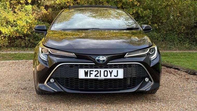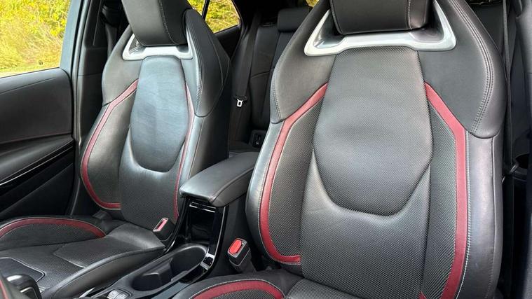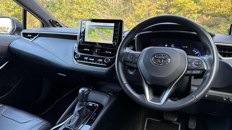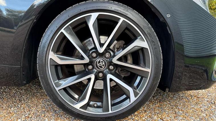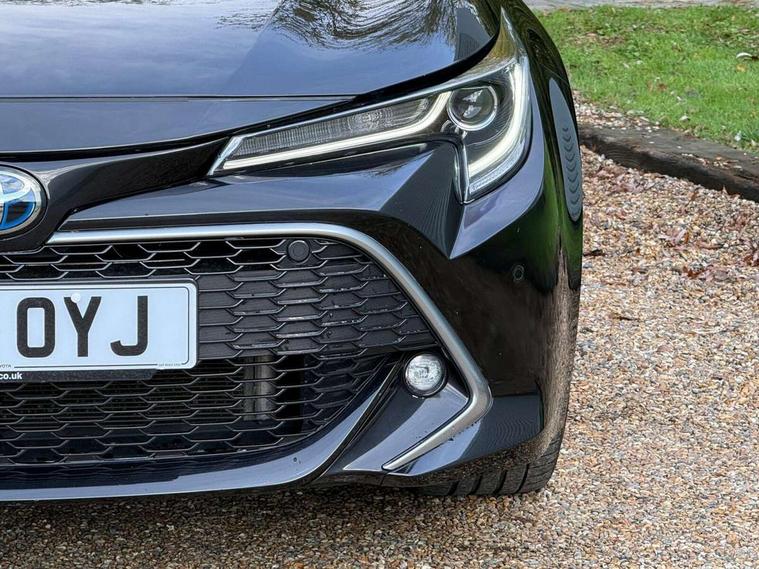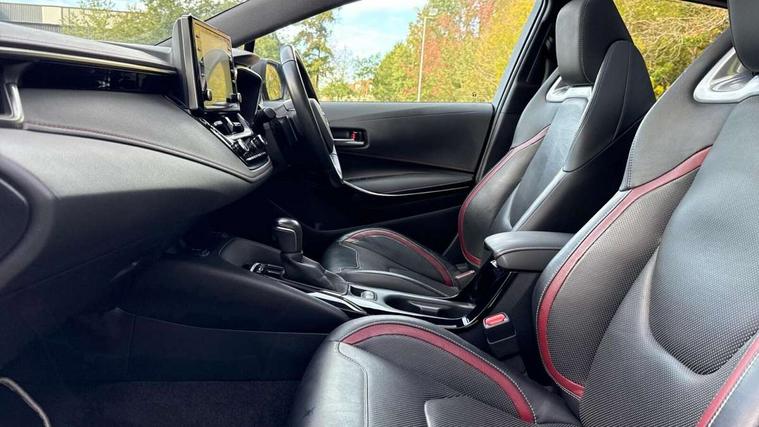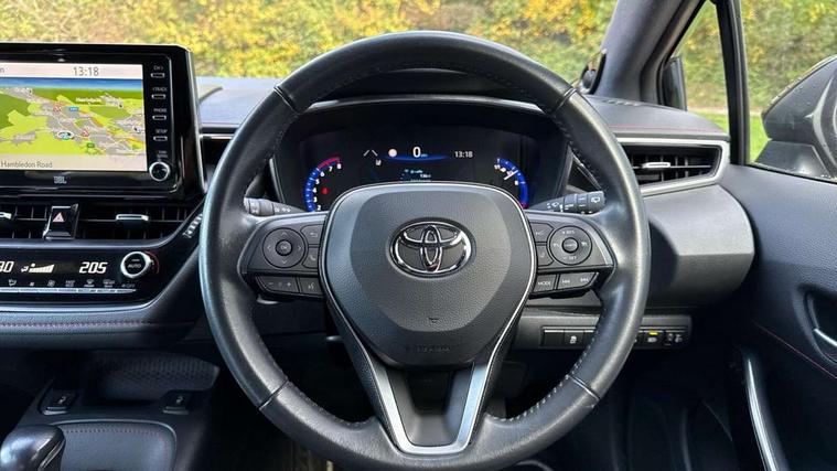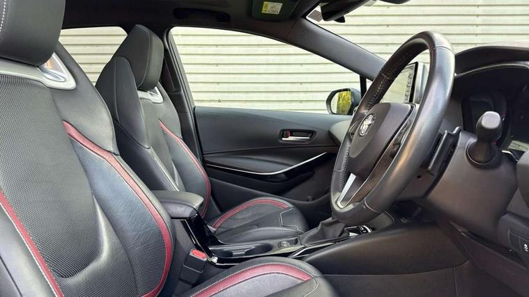 7" Multi information display screen, Bluetooth telephone connectivity, Connected car functionality upgrade, tracker, remote status and e-care, Dynamic radar cruise control (with RSA) including switch on steering wheel, E-call, Electrically assisted power steering, EV drive indicator, Intelligent park assist, Lane Departure Alert (LDA) switch on steering wheel, Memory on adjustable speed limiter, Push button start, Reversing camera, Smartphone integration with Apple CarPlay and Android auto, Gasoline particulate filter, Vehicle Stability Control (VSC), 6 speakers, 8" Touchscreen with MM19 Multimedia system and voice recognition, AM/FM radio, DAB Digital radio, Toyota touch 2 with go navigation system, USB and Aux in connectors + 12V front outlet, USB charging port in centre storage box, Anti-jam protection on power windows, Auto dimming inside rear view mirror, Auto up and down function on all power windows, Automatic folding mirrors, Automatic headlights with high beam assist, Black toyota logo in front, Black window frames, Body colour rear spoiler, Body coloured bumpers, Body coloured door mirrors, Body coloured outside door handles, Follow me home headlights, LED daytime running lights, LED dual-beam projector headlights with manual headlight levelling, LED front fog lights, LED High mounted stop light, LED rear combi lights with LED lightguide, Power adjustable heated door mirrors, Power front windows, Power rear windows, Rain sensing wipers, Rear bumper with chrome plated inserts, Rear privacy glass, Rear window defogger, Rear window wiper, Reverse tilting door mirrors, Satin chrome surround on lower front grille, Shark fin antenna, Time adjustment on intermittent wiper, Turning signal integrated indicators in door mirrors, Unique lower skirt, Unique side rocker with black insert, UV-filter on driver and passenger windows, 3 rear headrests, 3 spoke leather steering wheel + gear knob, 60/40 split folding rear seat, Adjustable speed limiter switch on steering wheel, Audio, multimedia and telephone switches on steering wheel, Blue ambient interior illumination to centre tray, front cup holders and front door trim, Boot light, Centre room light, Clean air filter, Driver and front passenger personal light, Driver and passenger assist grip, Driver and passenger seatback pockets, Driver and passenger sun visor with mirror and light, Dual zone automatic air conditioning with ECO mode switch, Front and rear cup and bottle holders, Front door pockets, Front head restraints, Full leather upholstery, Heated driver and front passenger seats, Illuminated entry system in room lamp, ISOFIX seat fixing (2 fixings on rear outer seats), Leather gear shift with satin chrome on gear shift console, Leather style armrests, Manual height adjustable for driver and front passenger seat, Paddle shifts, Parcel shelf, Pollen filter, Power adjustable lumbar support on driver seat, Power window switches with satin chrome inserts, Rear armrest with 2 cupholders, Rear passenger coat hooks (2), Satin chrome inside door handles, Shopping bag hooks in luggage compartment, Sliding armrest on centre console box, Slow opening glovebox with lights, Sports seats, Tilt/telescopic steering column, Voice recognition switch on steering wheel, Whiplash Injury Lessening (WIL) feature (active headrest) for seats, Parking pack - Corolla, Toyota safety sense 2 pack - Corolla, 3x3 point rear seatbelts, Adjustable driver and front passenger seat belt extender to top anchor point, Anti lock braking system + Electronic brake force distribution, Brake assist function, Downhill Assist Control (DAC), Electronic parking brake, Emergency brake light signal (EBS), Front passenger airbag on/off switch, Front seatbelt reminder, HAC - Hill start assist control, Rear seat belt reminder, Seatbelt pretensioners and force limiters, Supplemental restraint system (SRS) 7 airbags - dual driver, dual side curtain, side impact and driver knee airbags, Traction control, Tyre pressure warning system, Acoustic vehicle alert system (AVAS), Alarm with motion sensor and immobilizer, Remote central locking + deadlocks, Smart entry, Satin chrome dash trim, Soft touch texture on upper dashboard, Stitching on upper dashboard, Tyre repair kit, Unique wheel finish with red wheel cap,