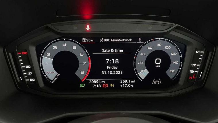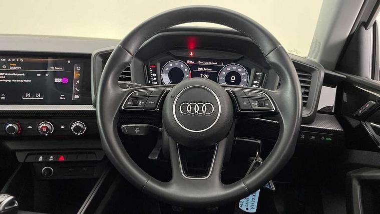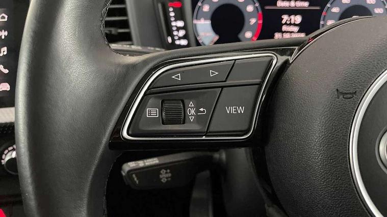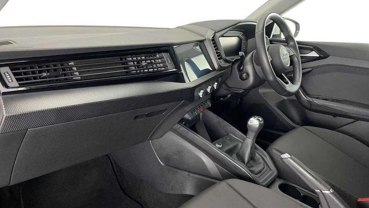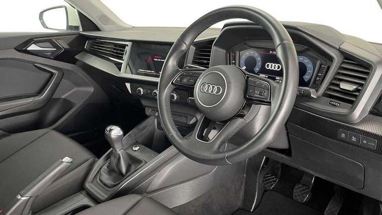 10.25" Digital instrument cluster display classis style instrument dials + speed, odometer, time, outside temperature, telephone menu + fuel level warning, Audi smartphone interface with connect compatible smartphone via USB directly MMI display + Nav, music, third party apps controlled via MMI controller, Automatic start/stop system, Bluetooth interface, Driver's information system, Electromechanical power steering, Emergency e-call, Emergency services call system, Lane departure warning system, Service interval indicator, Speed limiter, Voice control system, Washer fluid level indicator, Dynamic suspension, 1 x SDXC card reader, 2 x USB type C connection points, 6 passive loudspeakers, DAB Digital radio, MMI radio plus with 8.8" colour MMI display screen and MMI touch, Auto dimming rear view mirror, Body coloured bumpers, Body coloured door mirrors, Electric front and rear windows, Electrically adjustable, heated, folding door mirrors with integrated LED side indicator, Front side air inlets with front spoiler lip and rear diffuser in matt black grained, Heat insulating glass windscreen and side windows, Heated rear windscreen, High level LED brake light, LED headlights with LED rear lights + dynamic rear indicators + headlight adjustment and high beam, turning light + LED daytime running lights, Radiator grille in matt black, Rain and light sensors, Rear fog lights, Rear side wing doors, Rear wing door, Rear wiper, 12V socket in centre console with two cup holders, 3 rear seats with headrests, 3 seat bench in 2nd row, 3 spoke leather multifunction plus steering wheel, 40:60 Split folding rear seat or folded fully, Air vents, door handle recesses and centre console in black, Delta cloth upholstery, Driver and passenger seat with manual height adjust with forward and backwards adjustment, Front head restraints, Front passenger seat, Front/rear floor mats, Height and reach adjustable steering wheel, ISOFIX child seat mounting for front passenger and outer rear seats including top tether attachment point of outer rear seats, Leather gear knob with aluminium trim, Leatherette handbrake grip, Luggage compartment light with front and rear reading lights, Manual air conditioning, Titanium grey cloth headlining, Luggage compartment pack - A1, 3x3 point rear seatbelts, Audi pre-sense front with pedestrain and cyclist recognition, Brake assist function, Driver and front passenger airbag with front side and head airbags, Electronic Stability Control including ABS, EBD, ASR and EDL, Front passenger airbag deactivation switch, Hill hold assist, Manual rear child locks, Seatbelt height adjustment for front seats, Seatbelt monitoring, Tyre pressure warning light, Warning triangle and first aid kit, Anti theft alarm, Anti theft wheel bolts and loose wheel warning, Immobiliser, Remote central locking with 2 foldaway keys, Black inlays polygon structure, 15" 5 arm design alloy wheels,