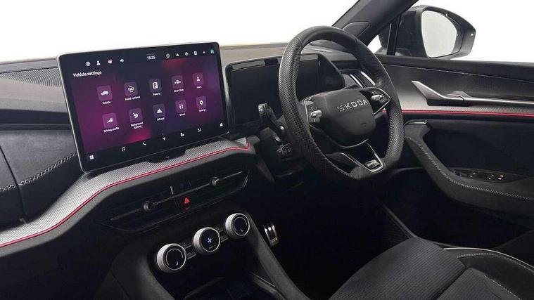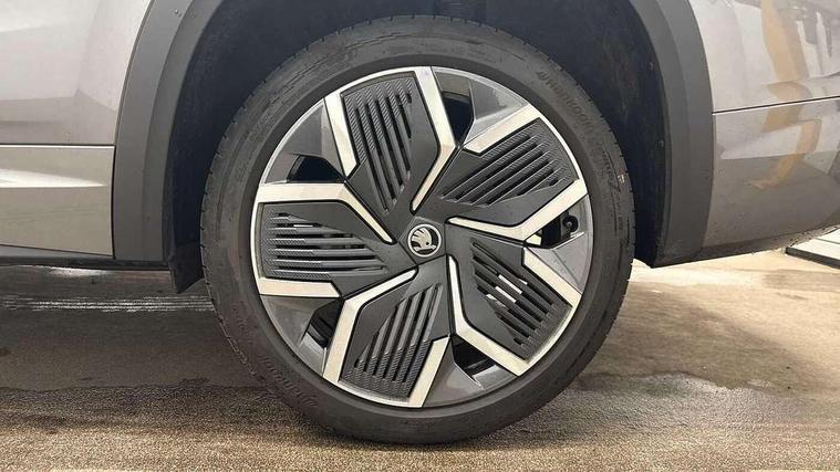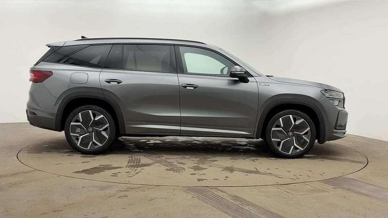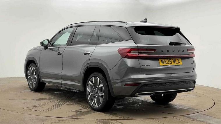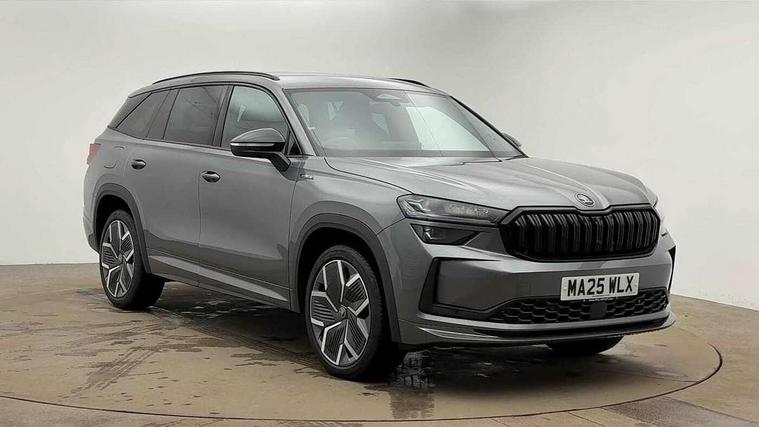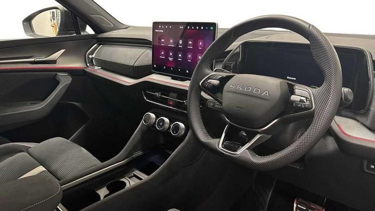 13" satellite navigation touchscreen display, Blind spot detection with door exit warning, Bluetooth system, ChatGPT functionality, Driver alert - Fatigue and drowsiness monitor, Dry display cleaner, Emergency call, Front and rear parking sensors, Front cross traffic assist, Lane assist, Off road modes, PAS, Rear traffic assist, Tailgate unlocking from outside, Traffic sign recognition, USB C Port x 2 in front centre console, Virtual Cockpit - 10.25" digital display, Voice control system, Wireless charging for two smartphones (15W) with cooling function, Wireless SmartLink for Apple CarPlay and Android Auto, Stop/start function, 2x USB-C in the rear, DAB Digital radio, Aero front windscreen wipers with intermittent function, Auto dimming rear view mirror, AWL (all weather lighting) and all weather light with cornering function, Black diffuser and decorative tailpipe with a unique dark chrome finish, Black roof rails, Black sports styling including front grille and window surrounds, Black wheel arch surrounds, Body colour door handles, Cornering light and poor weather light, Electric folding /adjustable/separted heated/folding door mirrors, auto dimming with boarding sports and memory function, Electric front and rear windows, Exterior black decorative trims, Front and rear sports bumpers including lower rear chrome strip, Gloss black door mirrors, Gloss black window frame and D pillar, Heat insulating glass in windshield, Heated rear window, Ice scraper in fuel tank cap, LED daytime running lights, LED third brake light in rear spoiler, Light assistant with automatic headlight control and coming home feature, Logo projection in door mirrors, Privacy glass, Rear roof spoiler, Rear side wing doors, Rear window wiper, Red decorative strip between rear LED lights, Safety reflectors on front and rear doors, Sportline badge on front fenders, Tailgate lettering in Black, Unique dark chrome design logo on alloy wheels, Window control switches with black trim, Windscreen wipers with rain sensor, Without engine designation, 1.5l bottle holder points in all door, 1x centre rear reading light, 2 seat bench in 3rd row, 3 configurable smart dials with 32mm coloured display, 3 seat bench in 2nd row, 4 foldable roof handles with rear coat hooks, Aluminium pedals, Ambient interior lighting - Dashboard, front-door stowage compartments, front and rear door panels and footwell lighting, Automatic gear selector on steering column, Chrome interior door handles, Driver/front passenger reading lights, Fabric headlining, Fixed bench 40:60:40 split folding backrests, Front and rear floor mats, Front centre armrest with jumbo box storage compartment, cup holder and 12V socket, Front sport seats, Height adjustable front headrests, Interior black decorative trims, Isofix child seat fittings in outer middle row rear seats and front passenger with top tether, Manually adjustable steering column, Pollen filter, Rear centre armrest with cupholders, Rear seat boot backrest release, Single front passenger seat, Skoda lettering on steering wheel, Storage pocket including mobile phone pockets on the backs of the front seats, Sunvisors with illuminated vanity mirrors, Three rear height adjustable headrests, Ticket holder on A Pillar, Tri zone climate control, Umbrella in door panel x1 made from sustainable materials, Upper and lower glovebox with card holder and coin compartment, USB C port by rear view mirror for charging only (15W), Acoustic package - Kodiaq, Performance package - Kodiaq, Sportline design selection pack - Kodiaq, Auto door release and activation of warning lights in the event of an accident, Driver and front passenger airbag with knee airbag and front passenger airbag deactivation, Electric child locks, Electronic parking brake, ESC (incl. ABS+EMD+MSR+ASR+EDL+HBA+DSR+RBS+ESBS+MCB+TSA+XDS), Front assist with braking reaction to vehicles, pedestrians and cyclists, Front disc brakes, Fuel cut off safety device, Height adjustable front 3 point seatbelts + pretensioners, Hill hold assist, Junction assist with automatic emergency braking, Rear disc brakes, Safety vest holder in door, Seat belt reminder for all seats, Three point rear seat belts, Two tone horn, Tyre pressure monitor, Alarm with interior monitoring and tilt sensor with safe function, Anti-theft wheel bolts, Immobiliser, Remote central locking with 2 keys, 20" Rila anthacite polished alloy wheel with black matte aero covers,