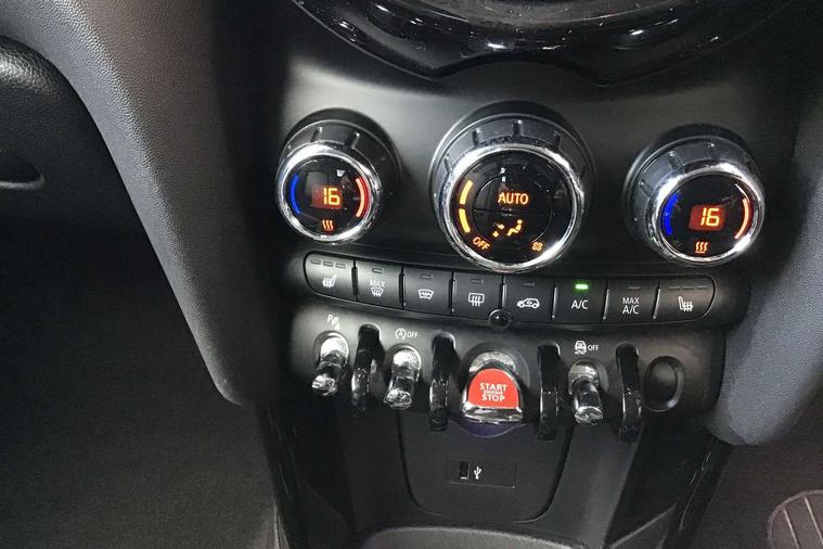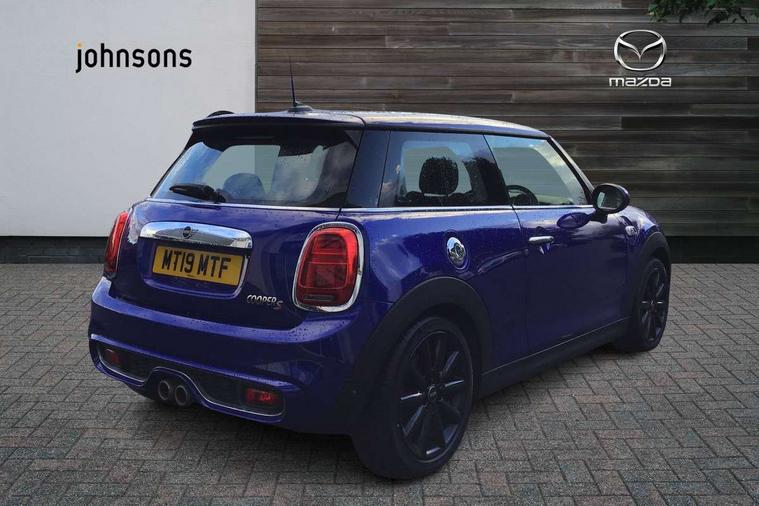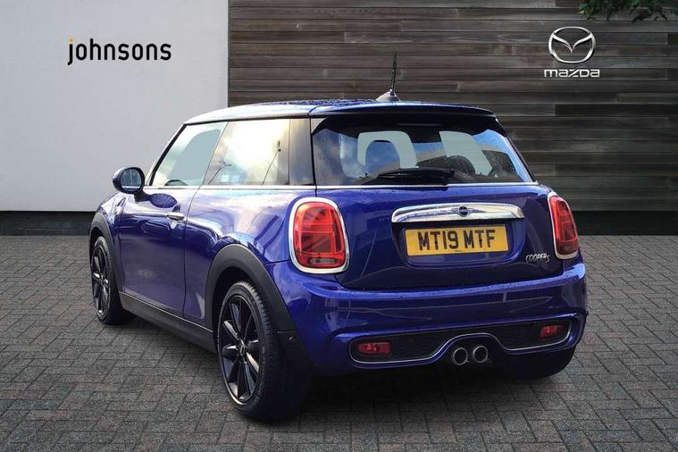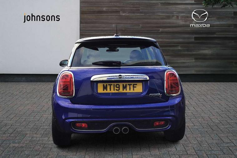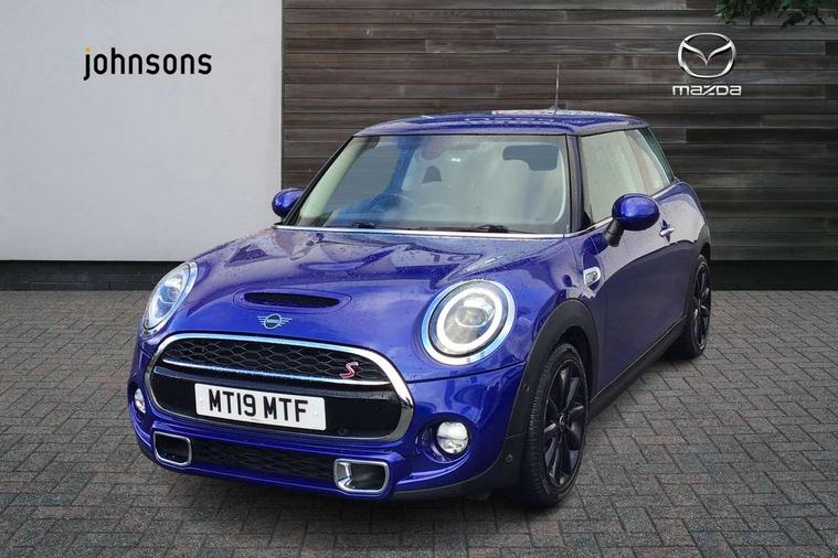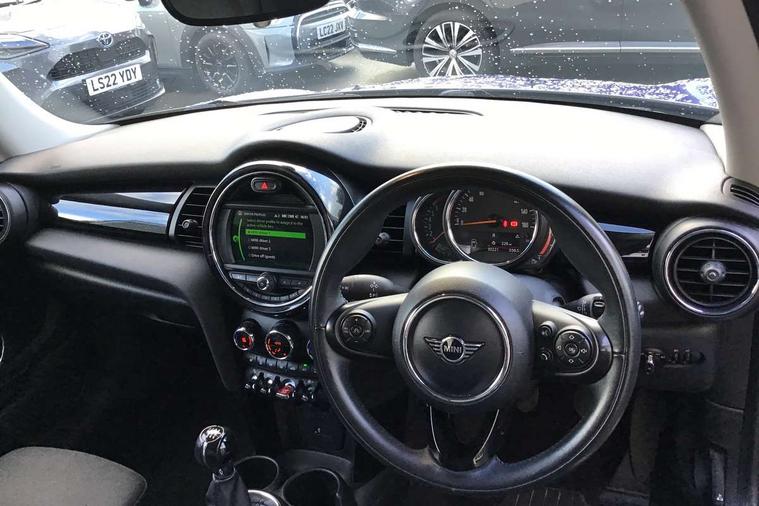 Compatible mobile phone bluetooth with audio streaming, Instrument cluster, Mini E-call, MINI TeleServices, On board computer, Service interval indicator, Performance Control, 6.5" touchscreen with LED ring, FM tuner and DAB digital radio, Automatic headlight activation switch, Bonnet scoop, Chrome border honeycomb structure radiator grille with S badge, Chrome plated fuel cap, Dynamic brake lights, Electric front+rear windows, Heated rear window, Heated windscreen washer jets, LED headlight with closed ring and daytime driving lights, Metal door sill strips with Cooper S imprint, Model logo Cooper S on right of tailgate, Rain sensor window wipers, Rear fog lights, Rear LED lights with union jack design, Rear window wiper, Side scuttle panel with integrated indicator, Sun/heat protection glass, Two central exhaust tailpipes with chrome finisher, White indicator lenses, 12V Accessory socket in centre console, 4 lashing eyes in luggage compartment, 60/40 split folding rear seat, Chrome interior highlights, Colour line - Carbon black, Cupholders, Front and rear isofix with front passenger airbag deactivation, Glove compartment, Height and length steering column adjustment, Interior lighting with 12 basic colours selectable via toggle switch in roof, Leather gearshift lever and handbrake gaiters, LED reading lights, vanity mirror lights, front foot well light and spotlight on front seats, Manual air conditioning, Mechanical seat adjustment, driver seat height adjust, forward/back and front seats backrest, Mini logo projection on floor from drivers exterior mirror, Multifunction steering wheel, Satellite grey headlining, Storage compartments in doors, Storage pocket on back of front seats, Sunvisors with vanity mirrors, 3 point seatbelts on all four seats, 6 Airbags - front, side, head and seat belt tensioners, Anti-lock braking system (ABS), DSC - Dynamic Stability Control, Front and rear disc brakes, Hill start assist, Two tone horn, Tyre pressure monitoring system, Alarm system with tilt sensor, monitoring doors, bonnet interior and tailgate, Electronic vehicle immobiliser, Start/stop toggle with keyless go, Tool kit,
