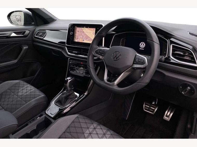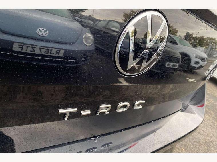 10.25" Digital cockpit pro, Advanced driver attention and drowsiness monitor, Emergency call service, Lane keeping system Lane Assist, Mobile phone interface, Modified key software - reduce switch off time for key status change to Long no motion, Online services, Park assist including front and rear parking sensors, Service interval indicator, Tailgate/trunk lid release from outside, Think blue trainer driver tips and journey analysis, Warning sound and light for front seatbelts unfastened, Wireless app connect, Battery regeneration during braking, Start/stop function with battery regeneration, DAB Digital radio, Diversity antenna for FM reception, Front and rear 6 speakers, Music playback - MP3, WMA and AAC files, Premium USB cable in choice of either Apple or Android smartphone compatibility, SD card slot, Simultaneous pairing of 2 compatible mobile devices, Title and cover art display, We Connect and We Connect Plus functionality, Auto dimming interior rear view mirror, Automatic hazard lights activation under emergency braking, Automatic headlight control with LED separate daytime running lights with coming/leaving home function, Body coloured exterior mirror housings and door handles, Electrically adjustable and heated door mirrors, Extended roof spoiler, Exterior mirrors aspherical on driver side, convex on front passenger side, External USB type C socket and charging sockets, Front windscreen wiper with intermittent wipe and 4 position delay, Heated rear window, LED 3rd brake light, LED rear combination lamps, LED rear number plate lights, Power windows with comfort operation and circuit breaker, Privacy glass for rear side windows and rear window, R-Line design body coloured bumpers, Rain sensor, Rear exhaust tailpipe, Rear fog light on one side and reversing lights on both sides, Rear side wing doors, Rear wash/wipe with intermittent wipe setting, Remote electrically foldable door mirrors, puddle lights and reverse activated passenger's door mirror, 12V power socket in centre console, 3 rear head restraints, 3 seat bench in 2nd row, 4 load lashing points in luggage compartment, Air care climatronic air conditoning system with active combination filter and 2-zone temperature control, Black roof lining, Chrome plated decorative trims, Chrome plated radiator grille inserts, air vent surrounds and light switch surrounds, Door and side trim panel with leatherette insert, Front + rear carpet mats, Front centre armrest, Front cupholders x 2, Front footwell illumination, Front reading light, Front scuff plates with R Line logo, Front seat back storage pockets, Glove compartment door with light, Instrument lighting, white adjustable panel illumination, Interior ambient lighting and surround lighting, Interior light delay, Isofix child seat preparation, Leather gearshift handle, Load-through provision with cup holder when folded down ('Unsplit rear seat bench, split folding backrest, with centre armrest), Luggage compartment lighting, Single front passenger seat, Stainless steel pedals, Storage compartment in left and right luggage area, Storage compartment in rear doors, Storage compartments in driver and front passenger doors, Sunvisors with illuminated vanity mirrors, Variable boot floor, height adjustable and removable, Driver assistance pack without proactive passenger protection - T-Roc, 3 point height adj front seatbelts + pretensioners, 3 point seatbelts in outer rear with ECE label, ABS, Child locks on rear doors, City emergency braking and pedestrian monitoring, Driver and front passenger airbag with front passenger airbag deactivation, Driver and front passenger safety-optimised head restraints, Drivers seatbelt reminder, Electronic parking brake, Electronic Stability Control (ESC) inc EDL (Electronic Differential Lock) and ASR (Traction Control), Front and rear passengers curtain airbag system including front side airbags, Hill start assist, Predictive pedestrian protection, Rear disc brakes, Two tone horn, Tyre pressure loss indicator, Volkswagen roadside assistance, Piano black decorative inserts in dashboard and front door trim panels, Trims for alloy wheels,