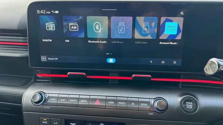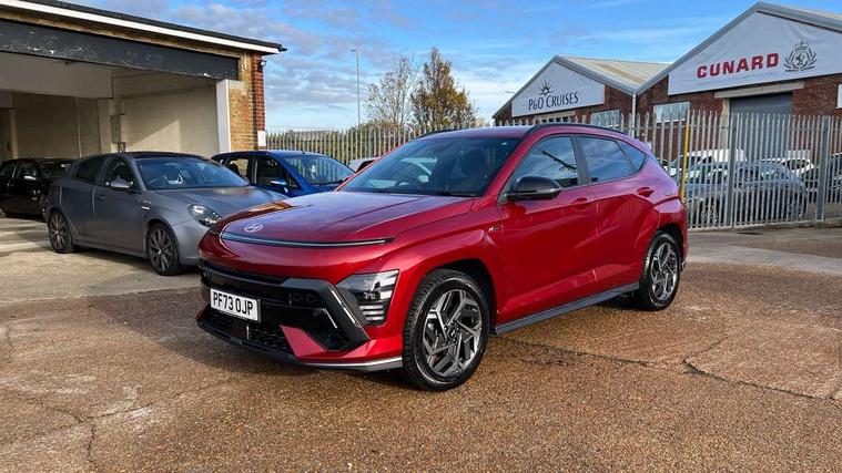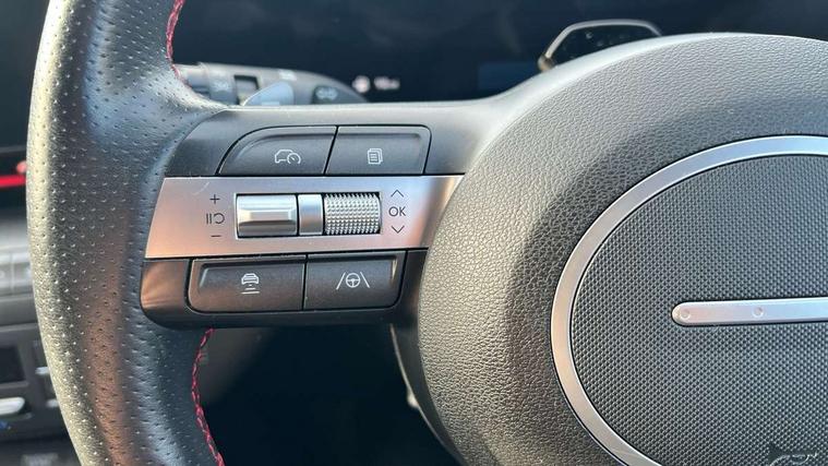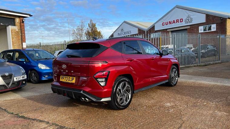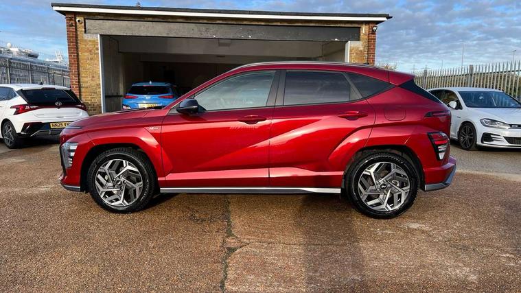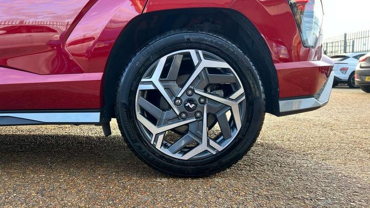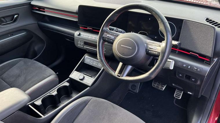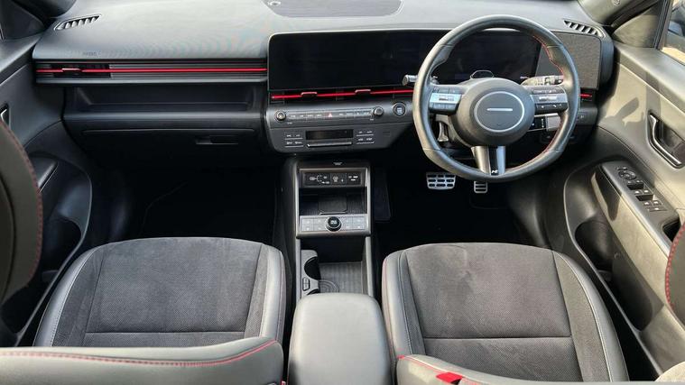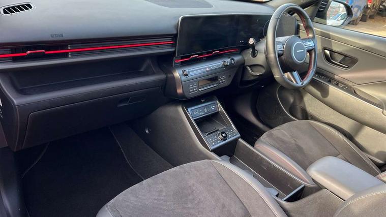 12.3" touchscreen centre console display satellite navigation with bluelink, live services and mapcare, Blind spot collision avoidance assist, Blind spot view monitor, Bluetooth connectivity with voice recognition, Digital clock, Driver status monitor (DSM), Driver supervision instrument cluster with 12.3" LCD display, eCall emergency call system, Feature on demand - Enabled, Forward collision avoidance assist (FCA 1.5) - Car, pededstrian, cycle and junction turning, Front parking sensor, HDA - Highway Drive Assist Level 1.5, Height adjustable power tailgate, Intelligent speed limit assist, Lane follow assist, Lane keep assist, Leading vehicle departure alert (LVDA), Parking Collision Avoidance Assist-Reverse (PCA-R), Parking distance warning - side, Parking system with rear camera and guidance system, PAS, Rear cross traffic collision avoidance (RCCA), Rear parking sensor, Roadside assistance, Safe exit warning (SEW), Smart cruise control with stop and go functionality, Surround view monitor, Windscreen washer fluid sensor and warning indicator, Wireless phone charging pad, Wireless Smartphone Integration includes Apple CarPlay and Android auto, 2 front USB C and 2 rear USB C charging points, Bose Premium Audio system with 7 premium speakers + subwoofer, DAB Digital radio, Steering wheel audio, phone and cruise controls, Auto dimming rear view mirror, Automatic headlights with dusk sensor, Automatic windscreen wipers with rain sensor, Body colour bumpers, Body colour exterior door handles, Body coloured wheel arch inserts, Door mirror LED indicator lights, Electric front windows with anti-trap mechanism and one touch control, Electric rear windows, Electrically adjustable and heated door mirrors, Gloss black door mirrors, Horizon centre LED DRL, LED projector headlights, LED upper and lower rear lights, Power folding door mirrors, Privacy glass - Rear windows and tailgate, Rear roof spoiler with integrated LED brake light, Rear side wing doors, Rear wiper, Roof rails, Solar glass with front door glass and windscreen, Tinted glass in front and rear doors, Windscreen auto defog function, 12V power outlet in front console, 2 zone climate control, 3 seat bench in 2nd row, 40/20/40 split folding rear seat, Adjustable head restraints, Aluminium pedals, Ambient lighting, Driver and passenger front seat pockets, Driver's seat electric adjustments, Driver's seat lumbar support, Driver/passenger sunvisors and illuminated vanity mirrors, Floor mats, Front passenger's seat electric adjustments, Heated front seats, Heated rear seats, Heated steering wheel, Height/reach adjustable steering column, Isofix rear child seat fastenings, Leather wrapped steering wheel, LED centre interior light, LED front interior light, Luggage compartment LED lighting, Luggage net, Luggage shelf, Metal paint effect interior door handles, N Line Alcantara/leather upholstery, Parcel shelf, Rear centre armrest, Rear centre console with air vents, Shift by wire SBW, Single front passenger seat, Ventilated front seats, Vertical adjustment rear head restraints, N Line exterior design pack - Kona, Trailer wiring package - Kona, Airbag - front, front side, curtain and centre front airbag, Anti-lock brake system (ABS), Childproof rear door locks, Downhill brake control, EBD + Brake Assist, Electric parking brake, Electronic stability control, Fasten seatbelt reminder, Fixed 3 point for second row centre passenger seatbelt, Front seatbelt pretensioners, Height adjustable front seatbelts, Hill start assist control (HAC), Passenger airbag deactivate switch, Rear seat alert, Traction control, Tyre pressure monitoring system, Alarm/immobiliser, Deadlocks, Folding key, Locking wheel nuts, Remote central locking, Smart key with keyless entry and engine start/stop button, Five year annual vehicle health checks, Temporary mobility kit (TMK),