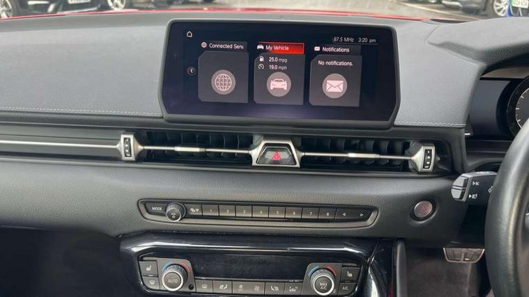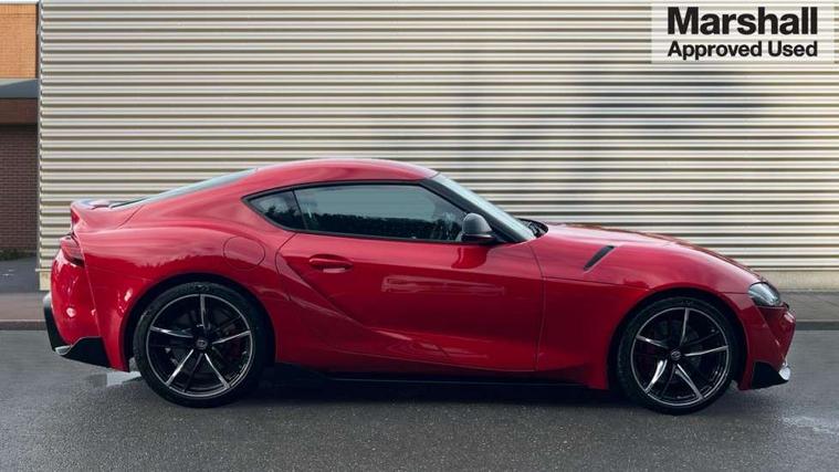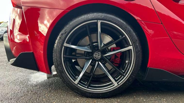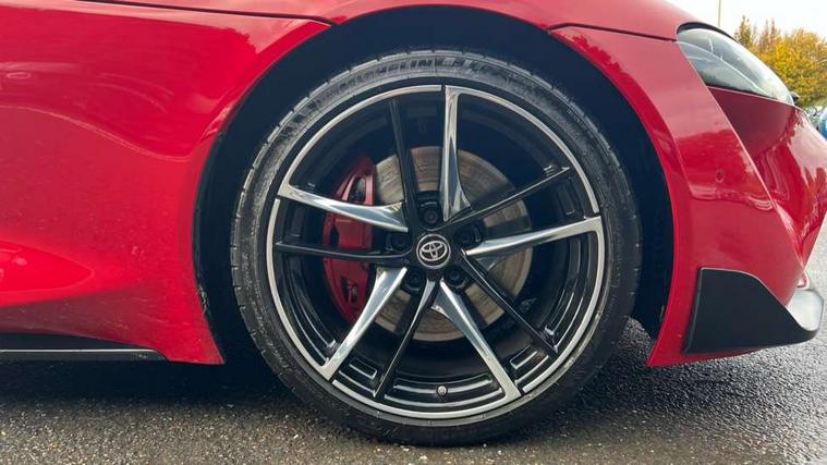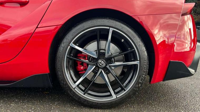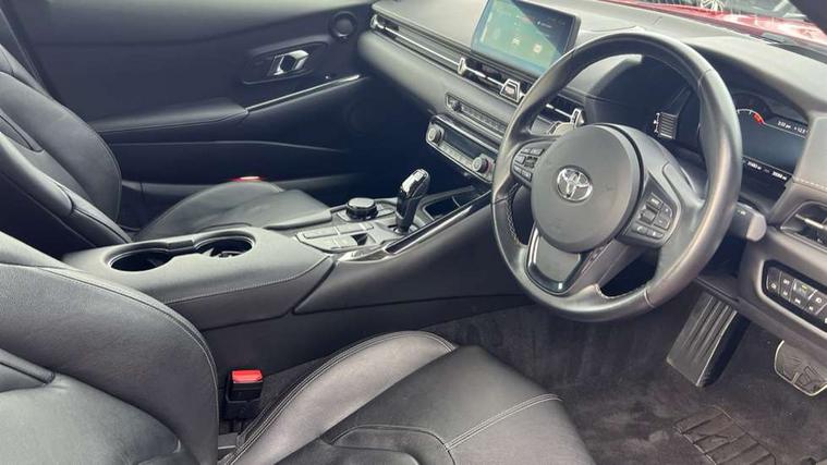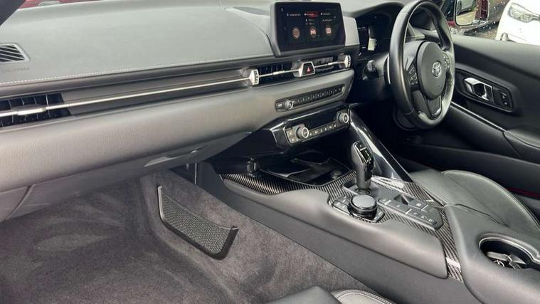 Adaptive cruise control with stop and go + steering wheel, Adjustable speed limiter, Blind spot monitor, Bluetooth handsfree system, Digital speedometer, Drive mode selector, Driver and passenger microphone, E-call, Front and rear parking sensors, Head up Display, Lane departure alert with steering control, PAS, Push button start, Rear collision warning, Rear cross traffic alert, Rear view camera, Remote boot door release in cabin, Road sign assist - RSA, Service indicator, Smartphone integration with Apple CarPlay, Sport drive mode, Start/stop system, Telephone switch on steering wheel, Toyota supra connect, Voice recognition, Wireless charger, Active sports differential, Adaptive variable suspension, Vehicle Stability Control (VSC), 2.1 amp USB connector, Audio switch on steering wheel, DAB Radio (Digital Audio Broadcasting), Glass integrated antenna, JBL premium sound system with 12 speakers, Toyota touch 2 with go navigation system, Auto adaptive high beam, Auto cut off headlamps, Auto dimming inside rear view mirror, Auto headlights, Automatic headlight levelling, Automatically retractable door mirrors, Boot door release with push button, Brushed stainless steel dual exhaust pipes, Cornering light, Electrically adjustable driver and passenger door mirrors with memory function, Electrochrome door mirrors, Follow me home headlights, Heated door mirrors, Indicators integrated on door mirrors, LED daytime running lamp, LED dual beam projector headlights, LED front light guide, LED High mounted stop light, LED Indicators, LED rear fog light, Piano black door mirrors, Rain sensing wipers, Reverse gear tilting passenger door mirror, 12V power outlets front and rear, Active sound control, Aluminium door scuff plates, Aluminium pedals, Boot light, Chrome insert on centre console, Door courtesy light, Driver and front passenger personal light, Driver and passenger seatback pockets, Driver seat memory function, Driver/passenger sunvisors and illuminated vanity mirrors, Dual zone automatic air conditioning, Electrically adjustable lumbar support for driver and front passenger, Electrically height adjustable, sliding and reclining front seats, Floor mats, Front cupholders, Front footwell lights, Front headrests, Front sports seats, Gear shift indicator, Glovebox light, Heated driver and front passenger seats, Leather steering wheel, Leather upholstery, Luggage holding net, Luggage hooks, Multimedia switches on steering wheel, Paddle shift controls, Power tilting cushion on driver seat, Tilt/telescopic adjustable steering wheel, Tonneau cover, Voice recognition switch on steering wheel, Child restraint system, Electronic parking brake, Emergency brake light system (EBS), Front seatbelt reminder, Pre-collision system with pedestrian and cyclist detection, Red sports rear brake caliper, Sports front brake caliper, Start holding control, Supplemental restraint system (SRS) airbags - 7 airbags including driver, front passenger, curtain, side and knee airbags, Traction control, Tyre pressure monitoring system, Immobiliser, Intrusion sensor and alarm, Locking wheel nuts, Power door locks, Remote door lock, Smart entry, Speed detecting automatic door lock, Tilt detection sensors, Carbon dash insert, 19" Black and silver forged alloy wheels, Tyre repair kit,