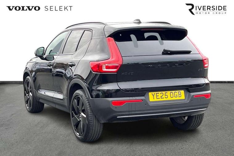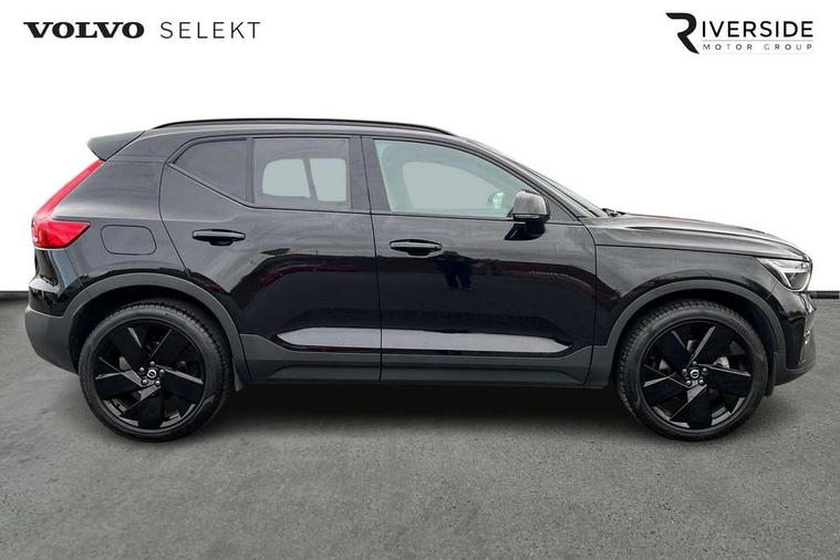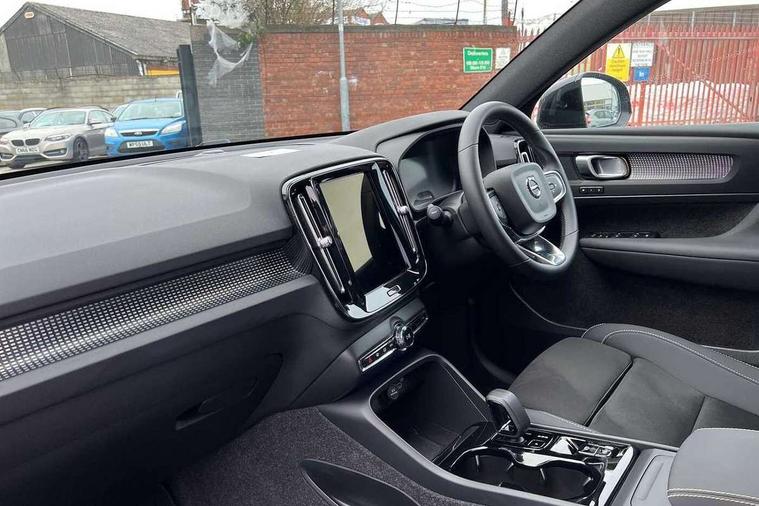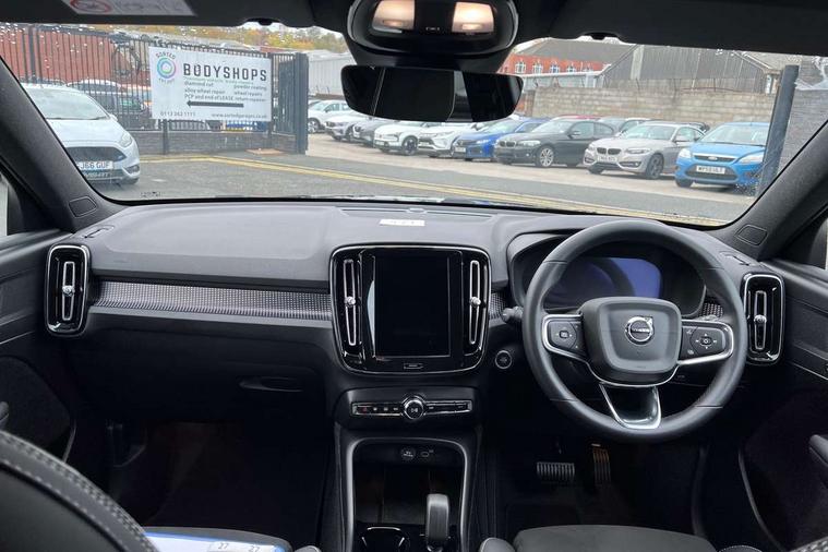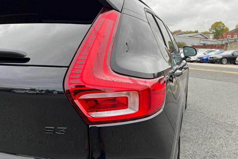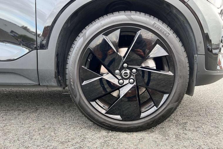 12.3" Progressive Driver Display, 9" centre console portrait touch screen, Adjustable steering wheel force, Android auto (Wired), Apple carplay (wired), Bluetooth handsfree system, Driver alert control, Driver assistance (pilot assist and adaptive cruise control), Driver awareness - Blind spot information system with steer assist, cross traffic alert with autobrake and rear collision warning and mitigation, E-call, Front park assist, Google automotive services - Enabled entertainment apps, navigation with google maps, voice recognition with google assistant, Hands free power tailgate, Intelligent speed assistance, Lane keeping aid, Oncoming Lane Mitigation, Rear park assist, Speed sensitive steering, Volvo cars services with app - Driving journal, emergency and breakdown call, engine remote start, remote door locking/unlocking and vehicle dashboard, Wireless/Inductive Mobile Phone Charging, Automatic transmission with start/stop and manual change functions, Dynamic chassis, DAB Digital radio, Steering wheel mounted remote controls, Adaptive brake lights with high level LED brake lights, Auto dimming feature for exterior door mirrors, Auto dimming interior mirror, Automatic headlamp levelling, Automatic LED Headlights + Active high beam incorporating daytime running lights, Colour coordinated auto folding and heated power door mirrors, Dark tinted windows - rear side windows and rear screen, Front aluminium tread plates, Front and rear electric windows, High gloss black front and rear skid plate, High gloss black front bumper deco, High gloss black front grille strikethrough and ironmark, High gloss black rear model, engine and volvo logo badges, High gloss black window trim, Home safe and approach lighting, Integrated roof rails in high gloss black, LED front fog lights, Puddle lights, Rain sensor with automatic windscreen wiper activation, Rear side wing doors, Rear wiper, Roof antenna, Roof spoiler, Visible VIN plate, 12V socket in front tunnel console and luggage compartment, 2-Zone electronic climate control with CleanZone air quality system and pollen filter, 3 seat bench in 2nd row, 3 Spoke tailored steering wheel with chrome trim, 60/40 versatile split folding rear seat, Centre console cupholders and storage, Charcoal headlining, Connect textile/microtech upholstery, Flexible load floor and grocery bag holder, Floor mats, Front cabin courtesy lights, Front door pocket, front cupholder, ambient front door, rear reading, rear courtesy, instrument panel and tailgate lighting, Front footwell illumination, Front headrests, Front reading lights, Front seat cushion extensions, Front side step illumination (under door), Glovebox bag hook, Heated front seats, Height adjustable passenger seat, Height/reach adjustable steering column, High gloss centre tunnel deco, Illuminated glovebox, Illuminated luggage compartment, Illuminated vanity mirrors + ticket holder, Integrated waste bin, Isofix attachments on outer rear seats, Load cover, Load protection net, Multi directional lumbar support for driver and passenger seat, Power driver seat with memory + exterior mirrors memory, Rear armrest with cupholders, Rear headrests, Single front passenger seat, Underfloor cargo storage, Climate pack without heated front seats - XC40, 3x3 point rear seatbelts, City safety with steering support with Pedestrian + cyclist + front collision warning with full auto brake and rear auto brake, Driver and passenger airbags, Drivers knee airbag, Electronic parking brake with auto hold, First aid kit, Front and outer rear seatbelt reminder and pretensioners, Front seats SIPS airbags, Hill descent control, Hill start assist, Inflatable curtain, Passenger airbag cut-off device, Power child locks on rear doors, Road sign information display, Run off Road Protection, SIPS (Side Impact Protection System), Slippery road and hazard light alert, Stability and Traction Control with Spin control, Engine Drag Control and Corner Traction Control, Tyre pressure monitoring system, Vehicle deceleration control with Anti-lock Brake System, Electronic Brake Distribution and Emergency Brake Assist, Warning triangle, WHIPS whiplash protection system - front, 2 x Key integrated remote control central locking including with deadlocking system and auto open/close windows, Anti-theft alarm including immobiliser/volume sensor + level sensor, Keyless drive includes keyless entry and keyless start, Locking wheel nuts, 20" 5 spoke high gloss black alloy wheels,