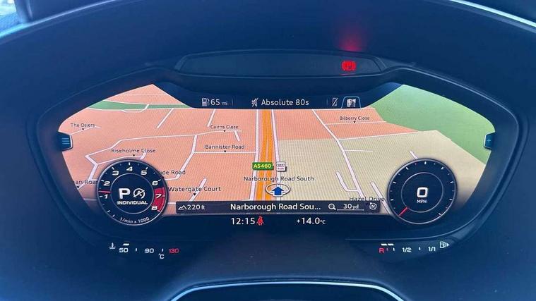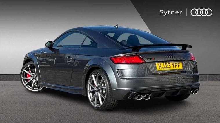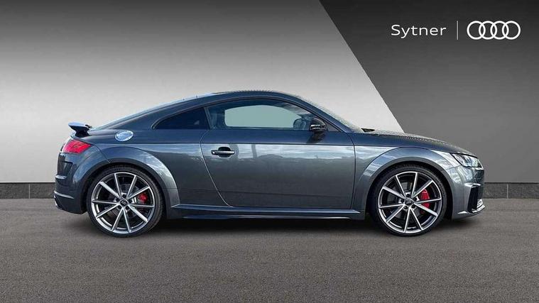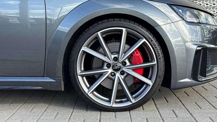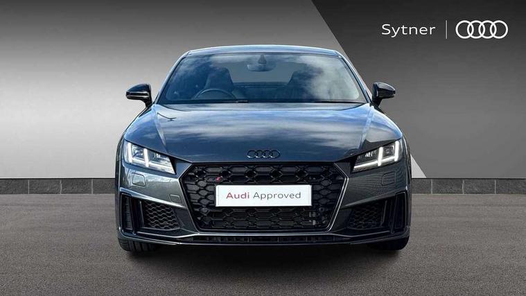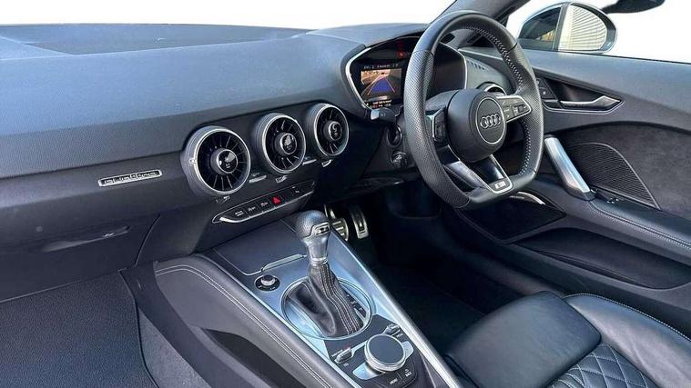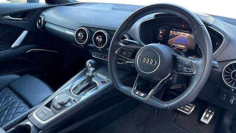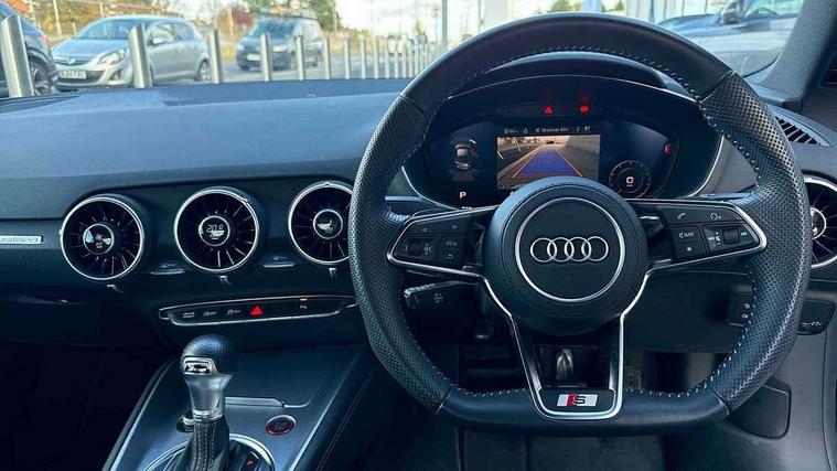 Audi drive select with 4 Pre configured modes, Audi Phone Box with wireless charging - Qi enabled compatible phone and additional bluetooth interface, Audi smartphone interface, Audi Virtual Cockpit with sport gauge, Cruise control + speed limiter, Emergency call service, Mobile phone preparation with bluetooth interface, Progressive power assisted steering, Service interval indicator, Start/Stop system with energy recuperation, TP memo, Audi magnetic ride, TTS suspension, AM/FM radio, Audi Sound System with 9 speakers, Bluetooth audio streaming, DAB Digital radio, MMI Radio with CD player and SD/XC card slot, Audi Beam uses LEDs to project the Audi Sport logo, Auto dimming rear view mirror, Auto headlight range control, Black door mirrors, Dark privacy glass from B-pillar backwards, Electric folding door mirrors, Electric front windows, Electrically adjustable and heated door mirrors with integrated LED side indicators, Green tinted heat insulating glass, LED 3rd brake light, LED daytime running lights, LED headlights with LED rear lights + dynamic rear indicators, Light and rain sensors, Rear boot, Sunband for windscreen, 12V socket, 2 rear seats, 3 spoke flat bottomed contour leather multi-function TTS sport steering wheel and TTS badging, 4 way electric lumbar support for driver and front passenger, Black headlining, Deluxe auto air conditioning with integrated digital display, Door sill trims with aluminium inlay and TTS logo, Front centre armrest, Front passenger seat, Front super sports seats, Heated front seats, Height/reach adjust steering wheel, Integrated head restraints, ISOFIX child seat mounting for front passenger seat with airbag deactivation, Manual adjustment of seat height, fore/aft position, seat angle, seat depth and backrest angle, Perforated leather gearknob in black, Rear head restraints, Rear top tether child seat ISOFIX attachment, Split folding rear seat, Stainless steel pedals, Tool kit, Black styling pack - TT, Leather pack - TTS, LED interior light pack - TTS, Non smoking pack - TT/TT RS, Technology pack without Audi phone box - TT, 3 point front seat belts, ABS, ASR traction control, Curtain airbags, Driver and front passenger airbag with front passenger airbag deactivation, EDL traction control, Electromechanical parking brake, ESP, First aid kit, Front side airbags, Head airbags, Hill hold assist, Seatbelt warning, Tyre pressure loss indicator, Warning triangle, Anti theft alarm, Anti theft wheel bolts, Immobiliser, Keyless Go, Remote central locking, Matt brushed aluminium inlays, Tyre repair kit,