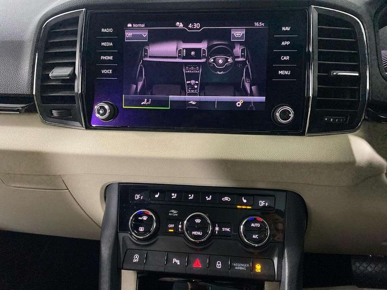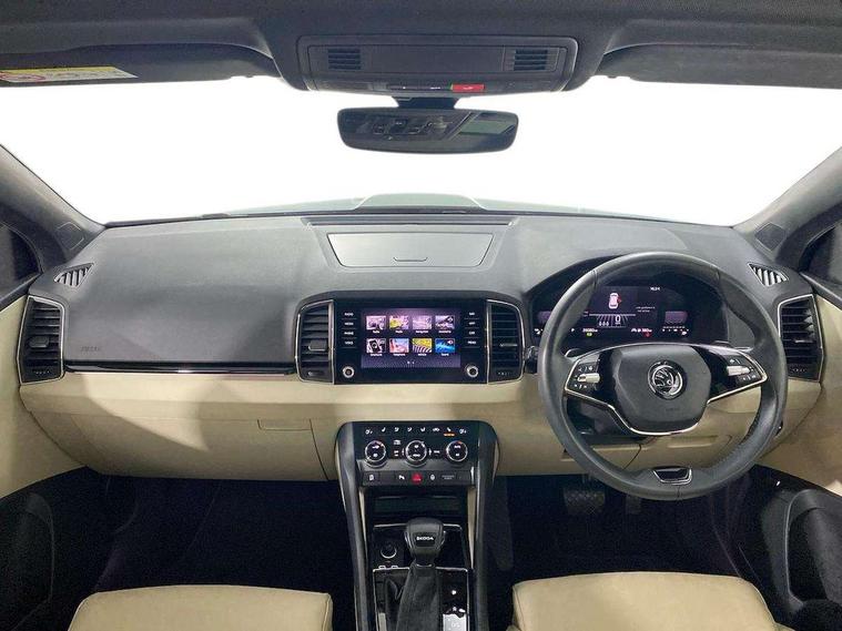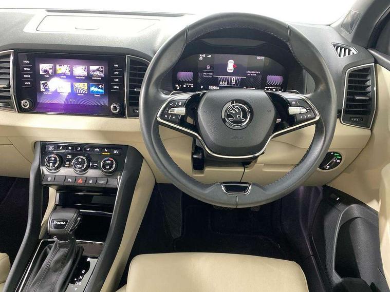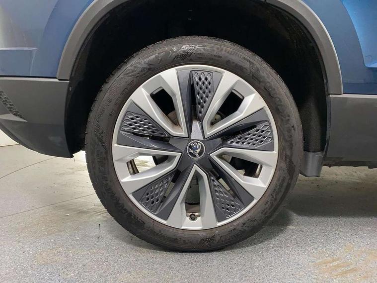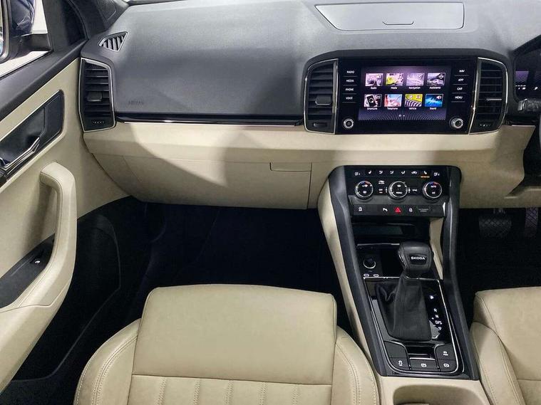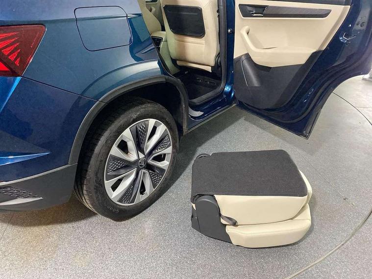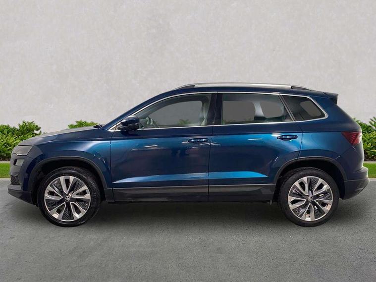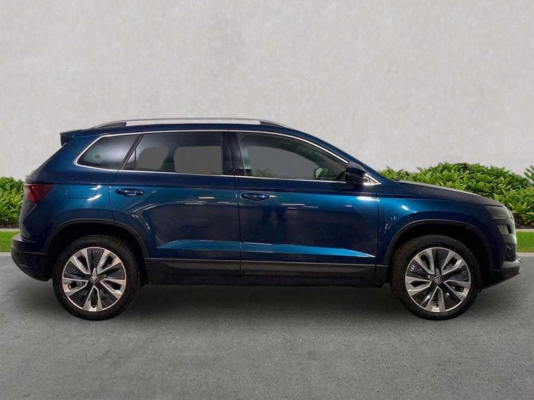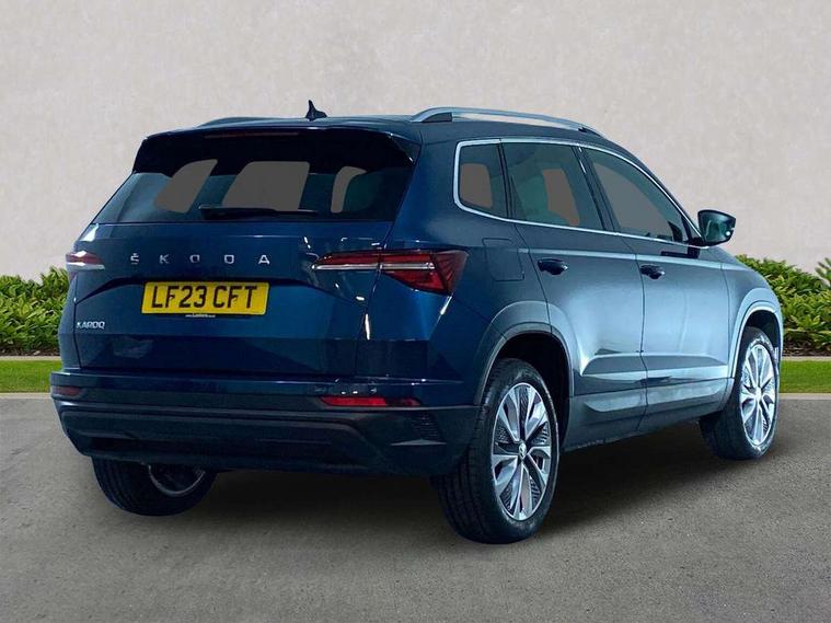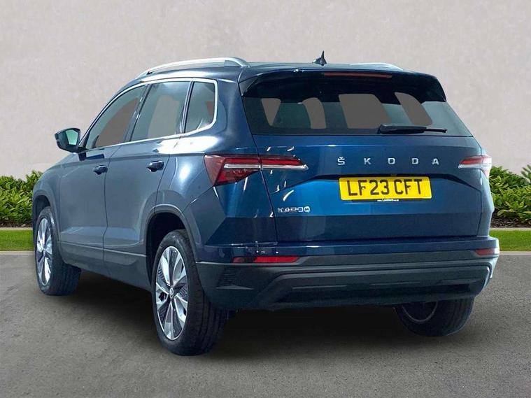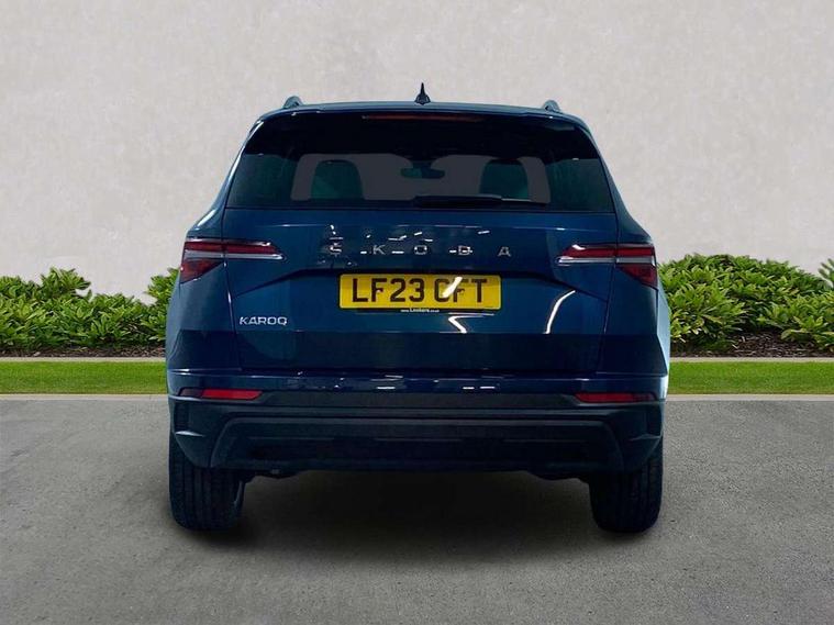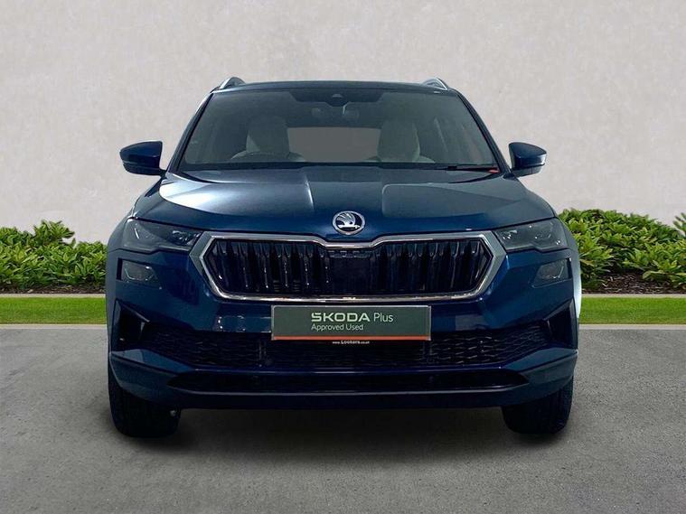 8" Digital display, Care connect, Driver fatigue sensor, Emergency services call system, Outside temperature gauge, Service interval indicator, SmartLink wireless for Apple and wired for Android, Start/stop system with regenerative braking, USB C Port x 2 in front centre console, 8 Speakers, DAB radio with Bluetooth, USB connection, Acoustic glass, Aero front windscreen wipers with intermittent function, Auto dimming rear view mirror with light and rain sensors, Black electric window control buttons, Body colour door mirrors and handles, Dynamic headlight range control with cornering light function, Electric front and rear windows with child proof lock, Heated rear windscreen, LED daytime running lights, LED rear lights with high functionality welcome effect and dynamic indicators, Light assistant (coming/leaving home/tunnel light), Plastic scuff plates, Privacy glass, Rear side wing doors, Rear spoiler, Rear window wiper with washer system and intermittent control, Safety reflectors on front doors, 1.5 litre bottle holders in driver and front passenger door panels, 12V socket in boot, 12v socket in front centre armrest with storage compartment and rear air vents, 2 spoke leather heated multifunction steering wheel with DSG paddles, 2 x Tablet holder, 3 rear height adjustable headrests, 3 seat bench in 2nd row, 4 foldable roof handles with rear coat hooks, Black floor carpet, Chrome inner door handles, Decorative door sills with KAROQ badging, Double sided boot floor, Foldable hooks in the boot, Front head restraints, Height adjustable front three point seats belts with tensioners, Height/reach adjust steering wheel, Ice scraper, Illuminated glovebox, Illuminated luggage compartment, Isofix child seat preparation for front passenger seat, Isofix child seat preparation outer rear, Manual lumbar support for front seats, Pen holder, Pollen filter, Rear boot cover, Rear reading lights, Rubbish bin door, Safety vest holder, Single front passenger seat, Storage box in upper central dashboard closed, Sunvisors with illuminated vanity mirrors, Textile floor mats, Ticket holder, VarioFlex seats with standard rear seat release, Boot pack - Karoq, Chrome roof rails + chrome pack - Karoq, Parking pack - Karoq, Automatic door unlocking in case of crash, Automatic fuel cut off in case of crash, Child locks on rear doors, Driver airbag, Electronic parking brake with auto hold function, Emergency rear braking signal, ESC including ABS, MSR, ASR, EDS, HBA, DSR, RBS, MKB and traction control, Front side airbags, Hill hold control, Knee airbags, Passenger airbag with switch-off function, Pedestrian monitor, Seatbelt reminder signalisation and pretensioner for all seats, Three point seatbelts rear, Two tone horn, Tyre pressure display, Tyre pressure monitor, Alarm with interior monitoring, back up horn and tilt sensor with safe function, Electronic engine immobiliser, Keyless entry and start/stop, Remote central locking with 2 remote folding keys, Chrome framed air vents, 18" Miran alloy wheels in black, Anti-theft wheel bolts protection, Storage on wheel cover, Tool kit,