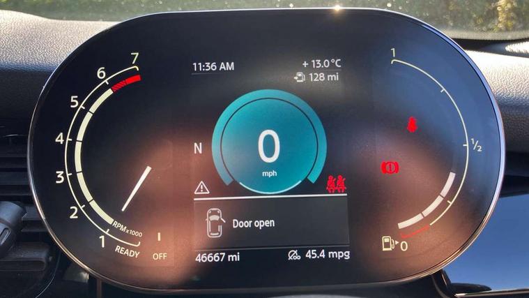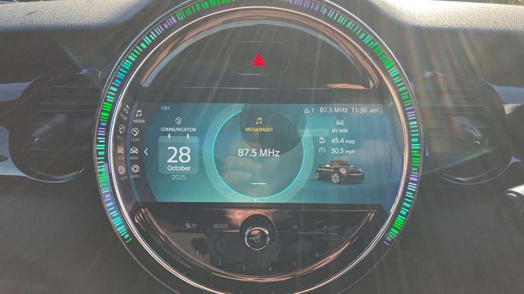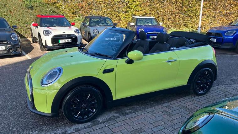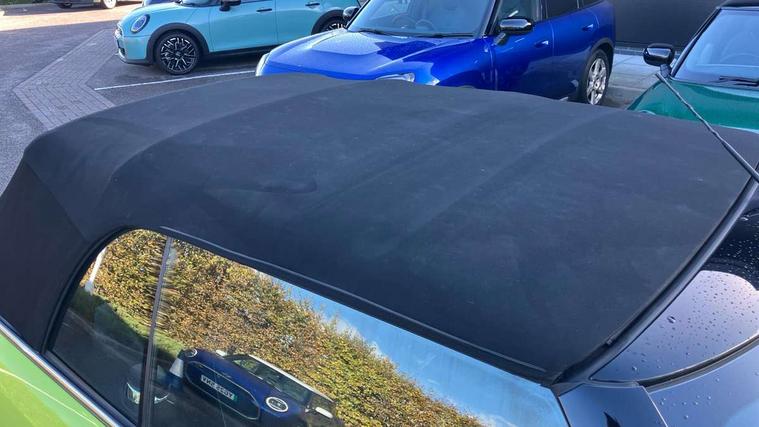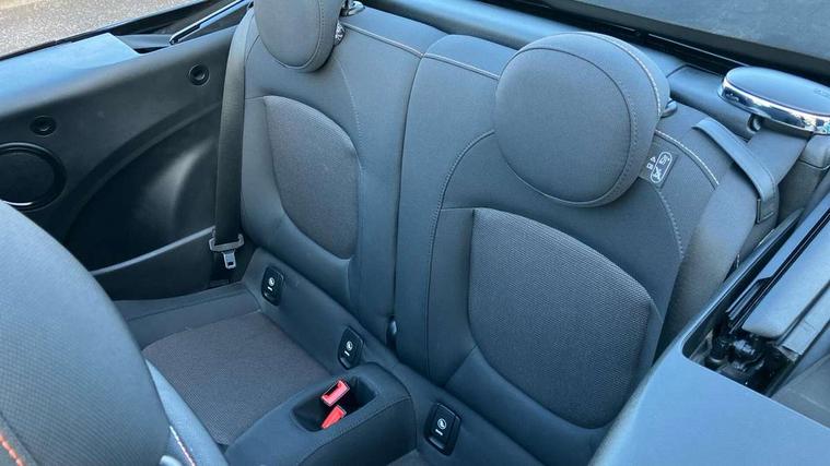 Apple CarPlay, Automatic start/stop function with brake energy recuperation, Compatible mobile phone bluetooth with audio streaming, Cruise control with brake assist, Electro-mechanical speed dependant steering assistance, Instrument cluster, Mini E-call, MINI TeleServices, On board computer, Rear park distance control, Service interval indicator, 6 Speed manual transmission including gear change indicator display, Double Vanos system, Fully variable valve control, High precision injection, Performance Control, 8.8" touchscreen with LED ring, FM tuner and DAB digital radio, Automatic headlight activation switch, Body colour fuel filler cap, Chrome border high gloss black slats radiator grille, Dynamic brake lights, Electric windows, Fully electric black softtop with integrated sunroof functionality, Heated rear window, Heated windscreen washer jets, LED headlight with closed ring and daytime driving lights, Left exhaust tailpipe with chrome finisher, Metal door sill strips with MINI imprint, Model logo Cooper on right of tailgate, Rain sensor window wipers, Rear boot, Rear fog lights, Rear LED lights with union jack design, Side scuttle panel with integrated indicator, Sun/heat protection glass, Third brake light, White indicator lenses, 12V Accessory socket in centre console, 2 seat bench in 2nd row, 4 lashing eyes in luggage compartment, 50/50 split folding rear seats, Chrome interior highlights, Colour line - Carbon black, Cupholders, Easy Load boot handles, Front and rear head restraints, Front and rear isofix with front passenger airbag deactivation, Glove compartment, Height and length steering column adjustment, Interior lighting with 12 different colours running across the dashboard, underneath door bezel illuminated laser engraved design on central display, Leather gearshift lever and handbrake gaiters, LED reading lights, vanity mirror lights, front foot well light and spotlight on front seats, Manual air conditioning, Mechanical seat adjustment, driver seat height adjust, forward/back and front seats backrest, Multifunction steering wheel, Single front passenger seat, Sports steering wheel, Storage compartments in doors, Sunvisors with vanity mirrors, Three spoke steering wheel with speed limiter and audio/communication controls, Velour floor mats, Convertible pack with comfort access - Mini Convertible, 3 point seatbelts on all four seats, 6 Airbags - front, side and seat belt tensioners, Active rollover protection, Anti-lock braking system (ABS), DSC - Dynamic Stability Control, Front and rear disc brakes, Hill start assist, Single tone fanfare horn, Tyre pressure monitoring system, Alarm system with tilt sensor, monitoring doors, bonnet interior and tailgate, Electronic vehicle immobiliser, Keyless Go, Piano black interior trim, Tool kit, Tyre repair kit,