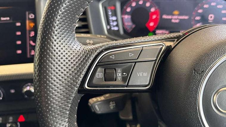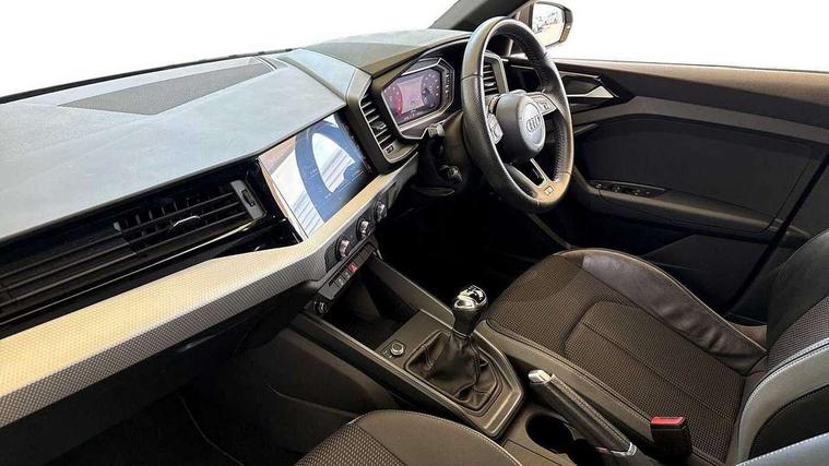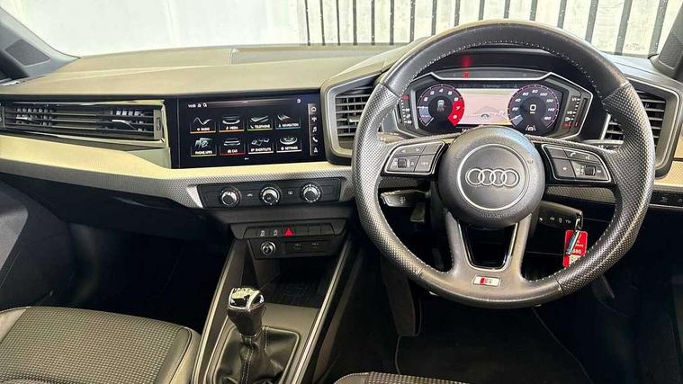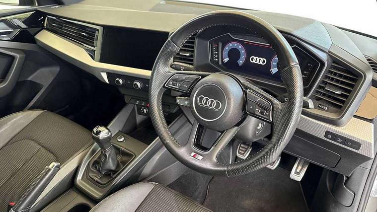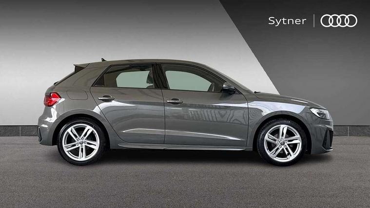 10.25" Digital instrument cluster display classis style instrument dials + speed, odometer, time, outside temperature, telephone menu + fuel level warning, Audi connect safety emergency and service including E-call, Audi smartphone interface with connect compatible smartphone via USB directly MMI display + Nav, music, third party apps controlled via MMI controller, Automatic start/stop system, Bluetooth interface, Cruise control, Driver's information system, Electromechanical power steering, Lane departure warning system, Rear parking sensor, Service interval indicator, Speed limiter, Voice control system, Washer fluid level indicator, Sports suspension, 1 x SDXC card reader, 1 x USB type C and 1 USB type A charging points, DAB Digital radio, MMI radio plus with 8.8" colour MMI display screen and MMI touch, Auto dimming rear view mirror, Body coloured door mirrors, Door sills with aluminium inlays and S Line logo, Electric front and rear windows, Electrically adjustable, heated, folding door mirrors with integrated LED side indicator, Front side air inlets in grained matt black and C frame in titanium black, Heat insulating glass windscreen and side windows, Heated rear windscreen, LED headlights with LED rear lights + dynamic rear indicators + headlight adjustment and high beam, turning light + LED daytime running lights, Radiator grille and rear diffuser in matt titanium black, Radiator protective grille frame in matt aluminium silver, Rain and light sensors, Rear fog lights, Rear wiper, S line badges on front wings, Side front spoiler lips in grained matt black, 12V socket in centre console with two cup holders, 3 rear seats with headrests, 40:60 Split folding rear seat or folded fully, Black cloth headlining, Driver and passenger seat with manual height adjust with forward and backwards adjustment, Front and rear black floor mats with contrast stitching in fine silver, Front head restraints, Height and reach adjustable steering wheel, ISOFIX child seat mounting for front passenger and outer rear seats including top tether attachment point of outer rear seats, Leather gear knob with aluminium trim, Luggage compartment light with front and rear reading lights, Manually adjustable lumbar support in front seats, Stainless steel pedals, LED interior lighting pack - A1, Luggage compartment pack - A1, S line exterior styling pack - A1 Sportback, 3x3 point rear seatbelts, Audi pre-sense front with pedestrain and cyclist recognition, Brake assist function, Driver and front passenger airbag with front side and head airbags, Electronic Stability Control including ABS, EBD, ASR and EDL, Front and rear seatbelt reminder, Front passenger airbag deactivation switch, Hill hold assist, Seatbelt height adjustment for front seats, Seatbelt monitoring, Tyre pressure warning light, Warning triangle and first aid kit, Anti theft alarm, Anti theft wheel bolts and loose wheel warning, Immobiliser, Remote central locking with 2 foldaway keys, Aluminium trim for control switches, air vents and digital instrument cluster, Silver grey inlays polygon structure in diamond paint finish, Structured grey accent areas including air vents, door handle recesses and centre console in quartz paint finish,