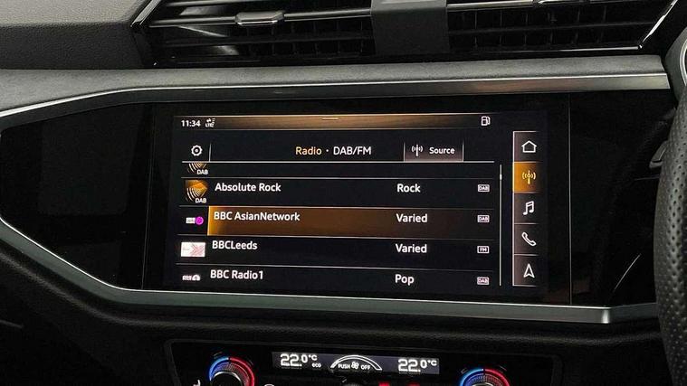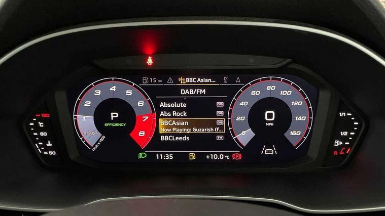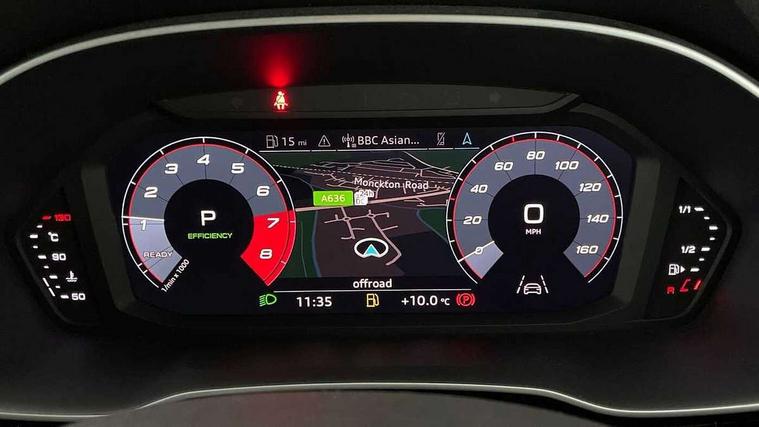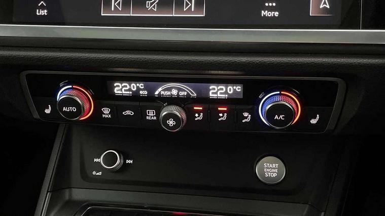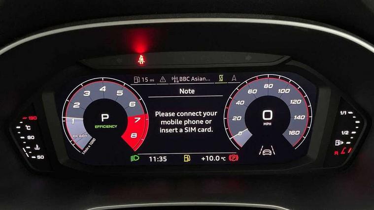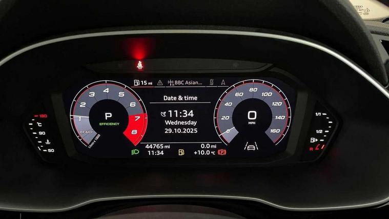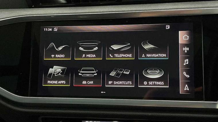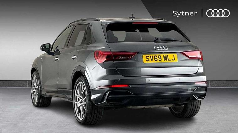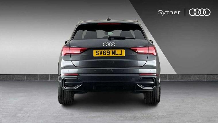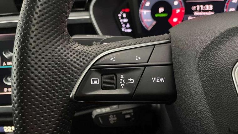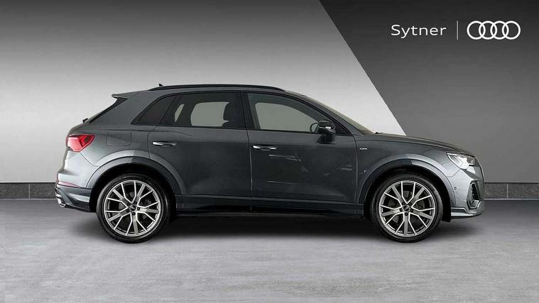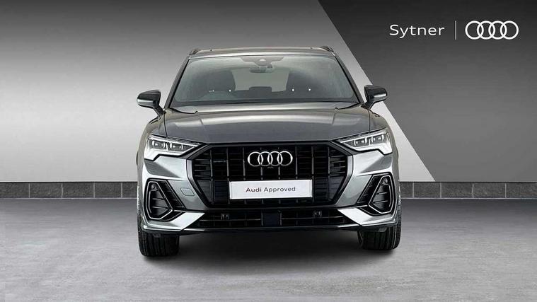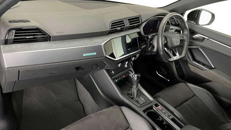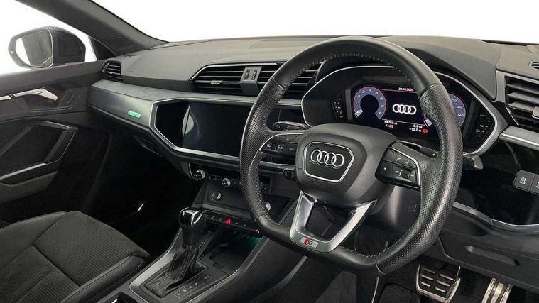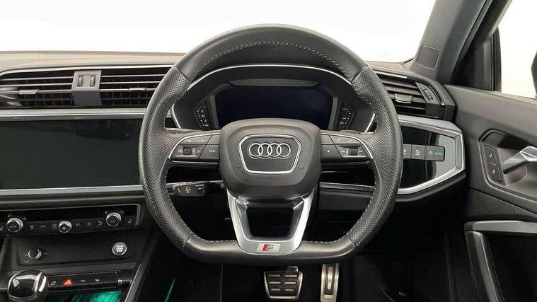 360 degree parking camera, Audi connect safety and service (e-call), Audi drive select, Audi lane departure warning, Audi parking system plus with front and rear sensors, Audi phone box with wireless charging, Audi side assist, Audi smartphone interface, Audi virtual cockpit plus, Bluetooth interface, MMI navigation plus with MMI touch, Power opening/closing tailgate, Progressive steering, Rear cross traffic alert, Service interval indicator, Stop/start system, Voice control system, Adaptive suspension with damping control, 1 x USB type C and 1 USB type A charging points, Bang & Olufsen 3D Premium Sound System, DAB digital radio module, Acoustic windscreen, Audi Beam uses LEDs to project the Audi Sport logo, Auto dimming and folding door mirrors, Auto dimming rear view mirror, Black roof rails, Contrast bumpers in Manhattan grey paint finish, Diffuser in matt Platinum grey, Electrically adjustable and heated door mirrors with integrated LED side indicators, Front and rear electric windows, Front fog lights, Front spoiler blade in matt platinum grey, Headlight washers, High gloss black finish B and C pillars, Matrix LED headlights with LED rear lights and dynamic front and rear indicator, Panoramic opening glass sunroof, Privacy glass, Rain and light sensors, Rear diffuser strip in matt titanium black, S line bumpers in contrasting Manhattan grey, 12V socket in rear centre console, 3 spoke flat bottomed high multi-function leather sport steering wheel with gearshift paddles, 4 way electric lumbar support for driver and front passenger, 40:20:40 split folding rear seat, Adjustable rear seat bench/backrest with centre armrest and cupholder, Aluminium door sill trims, Black cloth headlining, Dual zone climate control, Electrically adjustable front seats, Front and rear black floor mats with contrast stitching in rock grey, Front and rear headrests, Front and rear roof module including reading lights, Front centre armrest with storage compartment and angle adjustment, Glove compartment lighting, Heated front seats, Height and reach adjustable steering wheel, ISOFIX child seat mounting and Top Tether with front passenger airbag deactivation, Luggage compartment light, Perforated leather gearknob, Stainless steel luggage compartment sill finisher, Stainless steel pedals, Black styling pack - Q3, Driver Assistance Pack - Q3, Multi coloured extended ambient interior lighting pack - Q3, Non smoking pack - Q3, 3x3 point rear seatbelts, 6 airbags - Driver, front passenger, curtain and side windows, Electrically operated child locks on rear doors, Electromechanical parking brake, Electronic stabilisation control including ABS, ASR and EDL, Hill descent control, Hill hold assist, Pre sense basic, Seatbelt monitoring, Tyre pressure warning, Warning triangle and first aid kit, Advanced key, Anti theft alarm, Anti theft wheel bolts, Audi pre-sense front with pedestrain and cyclist recognition, Remote central locking, Dark matt brushed aluminium inlay, MMI touch colour display in gloss black with aluminium surround,