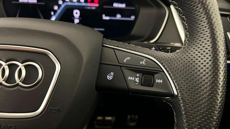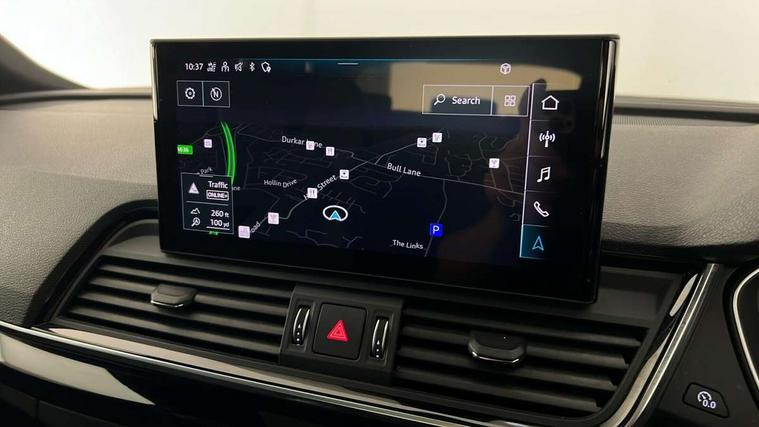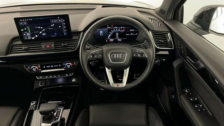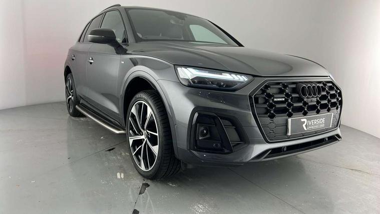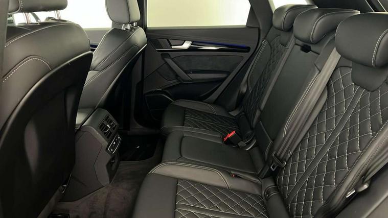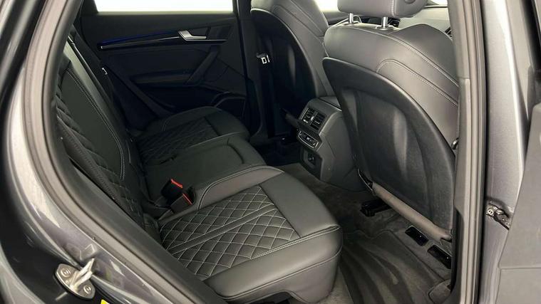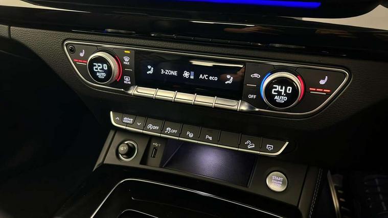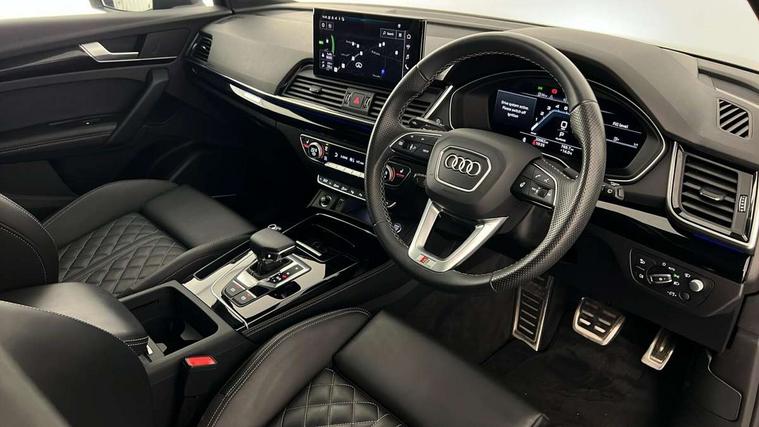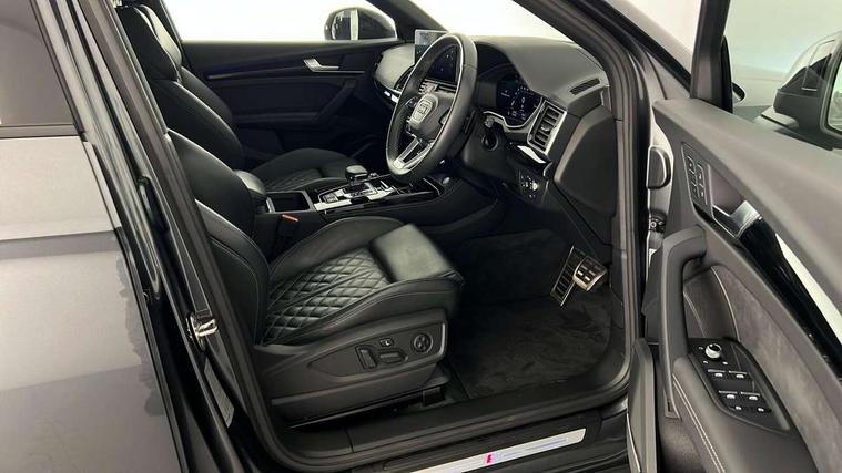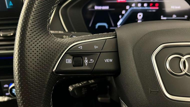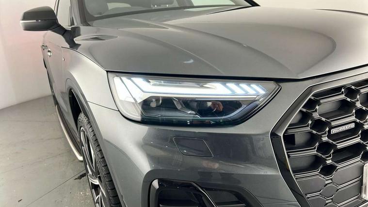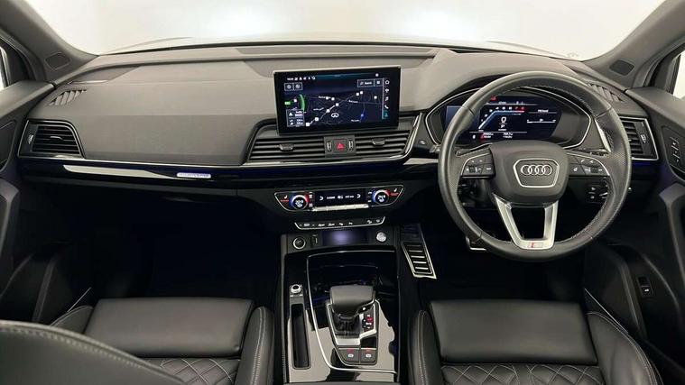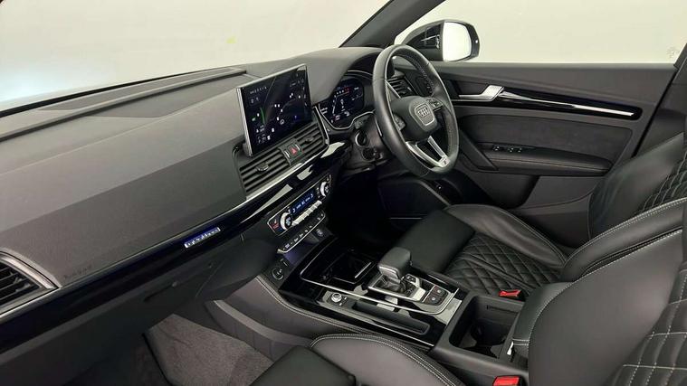 360 degree camera with top view, Advanced key with electric hands free boot opening system, Audi connect safety and service (e-call), Audi connect with Amazon Alexa Integration, Audi drive select, Audi Phone Box with wireless charging - Qi enabled compatible phone and additional bluetooth interface, Audi virtual cockpit plus with 12.3" screen and three different layout designs, Audi wireless smartphone interface, Automatic start-stop system with coasting functionality and efficiency programme, Electro - mechanical power assisted steering, Head up Display, MMI navigation plus with 10.1" touch screen, Mobile telephone preparation - bluetooth interface, Park assist with parking aid plus, Power tailgate, Service interval indicator, Voice control system with Audi hotword activation "Hey Audi", Adaptive air suspension, Quattro on demand, 2 x USB charging port with aux input socket, Bang + Olufsen sound system, DAB Digital radio, 3rd brake light, Acoustic windscreen, Audi beam with 'Vorsprung' logo, Audi matrix LED headlights with OLED rear lights + dynamic front and rear indicators, Auto dimming door mirrors, Auto dimming rear view mirror, Automatic headlight adjustment, Automatic headlights and windscreen wipers, Black roof rails, Body colour bumpers, Body colour underbody protection, Chrome plated exhaust trims, Daytime running lights, Door sills in Selenite silver, Electric adjustable/heated/folding door mirrors, Front air inlet surrounds in titanium black, Front and rear electric windows, Gloss black finish for Audi rings and Q5 logos without engine badging, Headlight washers, High gloss black B pillar trims and triangular rear door trim, Lower bumpers painted in contrast Manhattan grey, Panoramic sunroof, Rear chrome trim strip below lights, Rear privacy glass and rear side windows, Rear side wing doors, Rear wiper, Roof bars, Running boards, S Line rear spoiler, 3 rear headrests, 3 spoke heated leather multi-function steering wheel, 4 way electric lumbar support for driver and front passenger, 40:20:40 split folding 3 rear bench seat in 2nd row with rear centre armrest, Black cloth headlining, Comfort front centre armrest, Contrast stitching on seats, steering wheel and gear lever gaiter, Deluxe 3 zone electronic climate control, Electrically adjustable front seats with driver memory, Fine Nappa leather upholstery with diamond pattern contrast stitching + front sport seats with S embossed logo, Front/rear floor mats, Gear lever in black leather, Heated front and outer rear seats, Height adjustable front head restraints, Illuminated door sill trims with aluminium inlays, ISOFIX child seat mounting and top tether, Luggage compartment cover, Massage function for front seats, Rear seat bench plus, Removable luggage compartment floor, Single front passenger seat, Stainless steel pedals, Sunvisors with vanity mirrors, Black styling package - Q5, City Assist pack - Q5, Extended interior upholstery pack - Q5, Extended LED Interior multi coloured Lighting Pack - Q5, Tour pack - Q5, 3 point seatbelts on all seats, 6 airbags - Driver, front passenger, curtain and side airbags, Electrically operated child locks on rear doors, Electromechanical parking brake, Electronic stabilisation control including ABS, ASR and EDL, Front passenger airbag deactivation, Hill descent control, Hill hold assist, Multi collision brake assist, Pop-up bonnet for pedestrian protection, Pre sense city, Seat belt force limiter, Seatbelt monitoring, Tyre pressure warning, Warning triangle and first aid kit, Anti theft alarm, Anti-theft wheel bolts, Keyless Go access/ignition system, Remote central locking, Piano black finish inlay, Tool kit, Tyre repair kit,