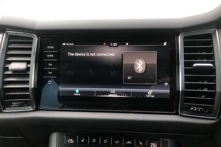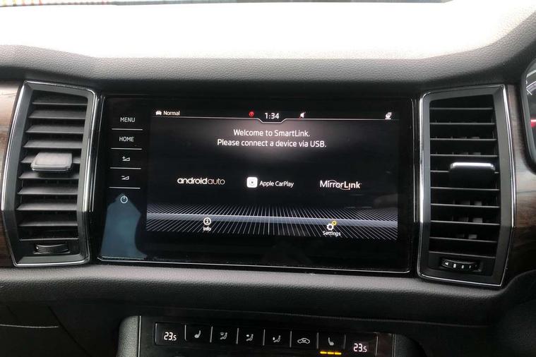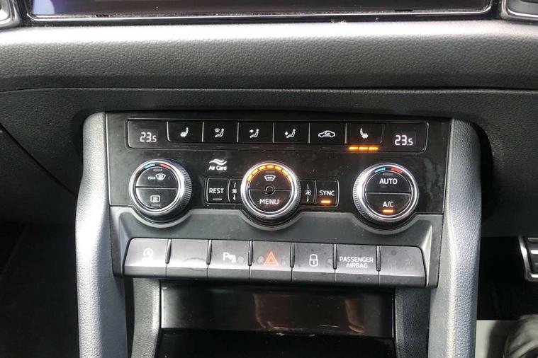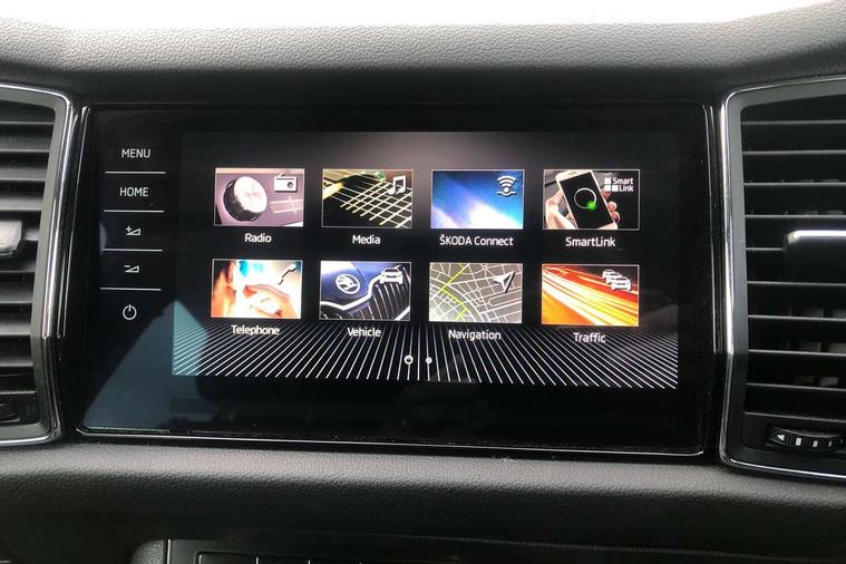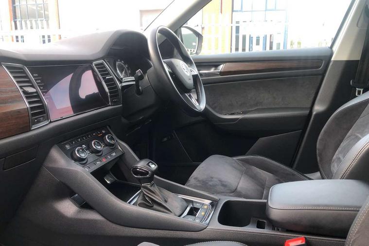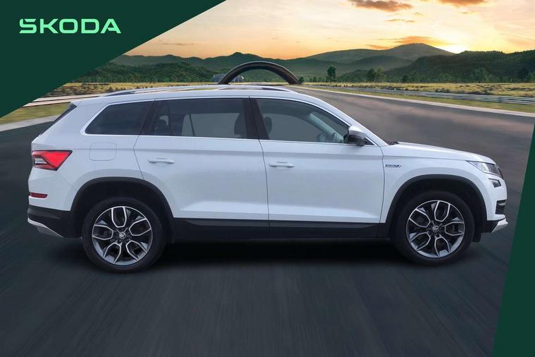 Bluetooth system, Colour multifunction trip computer, Columbus satellite navigation with 9.2" touch screen and integrated Wi-Fi + WLAN, Digital voice enhancement, ECO Stop/start function, Exterior temperature indicator, Progressive power assisted steering, SmartLink plus, Speed limiter, Tailgate unlocking from outside, Bolero Radio, DAB Digital radio, DVD System, USB and SD card connectivity, Aero front windscreen wipers with intermittent function, Aero rear window wiper, Auto dimming rear view mirror, Automatic activation of hazard warning lights, Black wheel arch surrounds, Body colour door handles, Electric front and rear windows, Electrically adjustable/heated/foldable and auto dimming door mirrors with memory function, Front and Rear door steps, Full LED Headlights with adaptive front light system and LED daytime running lights, Headlight washers, Heated rear window, Invisible tailpipe, LED front fog lights with static cornering light function, LED rear fog light, LED third brake light in rear spoiler, Light assistant (coming home/tunnel light), Radiator grille frame in matt black with chrome strip, Rain and light sensors, Rear diffuser, Safety reflectors on front and rear doors, Scout badge on front fender, Scout off road front and rear bumpers, Silver roof rails and door mirrors, Sunset privacy glass, Tinted windows, 12V socket in boot, 2 rails with 2 hooks including 4 hooks for net programme, 4 foldable roof handles with rear coat hooks, 4 lashing points on luggage floor, 60:40 foldable rear seat with sliding adjustment and backrest angle adjustment, Alcantara door panels, Alcantara upholstery with Scout logo, Aluminium pedals, Bottle holders in door panel in the 1.5 litre front and 1 litre rear, Cargo storage compartments, Centre console with open storage box, cup holder and 12V socket, Chrome headlight control button, Chrome interior door handles, Coat hooks on B pillar, Covered storage compartment on driver side, Electrically adjustable front seats with lumbar support and memory function, Front centre armrest with storage compartment, Front/rear courtesy lights, Gear shift lever with chrome frame and black gloss insert, Height adjustable front headrests, Illuminated and cooled glovebox, Illuminated luggage compartment, Isofix system on outer rear seats, LED ambient lighting, Manually adjustable steering column, Net programme in boot (1x horizontal Net, 2x vertical Nets), Overhead glasses storage compartment, Passenger side net compartment on centre console, Pollen filter, Rear centre armrest with cupholders, Removable lamp in luggage compartment, Roll up luggage compartment cover with intermediate position, Small Bags on the inner sides of the front backrests, Small pockets on the inner side of the front backrests, Storage compartment in lower middle Instrument panel, illuminated with closing, Three rear height adjustable headrests, Ticket holder on A Pillar, Umbrella in door panel, Welcome animation with Scout logo, Chrome pack - Kodiaq, LED Interior Light pack - Kodiaq Scout/Sport Line/VRS/Laurin + Klement, Rough Road pack - Kodiaq, Auto door release and activation of warning lights in the event of an accident, Driver and passenger airbags, Electronic parking brake with hill hold control, Emergency rear braking signal, ESC (incl. ABS+MSR+ASR+EDS+HBA+DSR+RBS+MKB), Front and rear three point safety belt on all seats, Front assist includes AEB city/urban, Front side airbags, Fuel cut off safety device, Head and knee airbags, Off road switch, Passenger airbag deactivate switch, Rear disc brakes, Safety vest holder in door, Seat belt reminder for all seats, Two tone horn, Tyre pressure monitor, Warning lights in front doors, Alarm with interior monitoring and tilt sensor with safe function, Immobiliser, Keyless entry and start system (KESSY), Remote central locking, Scout plaque on the dashboard, Wood finish dashboard and door inserts, 19" Crater anthracite alloy wheels with anti-theft wheel bolts,