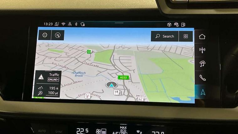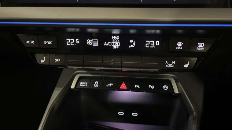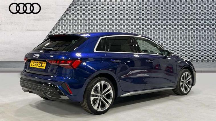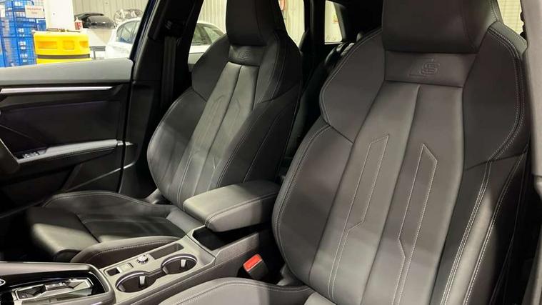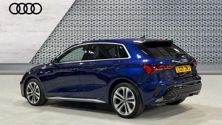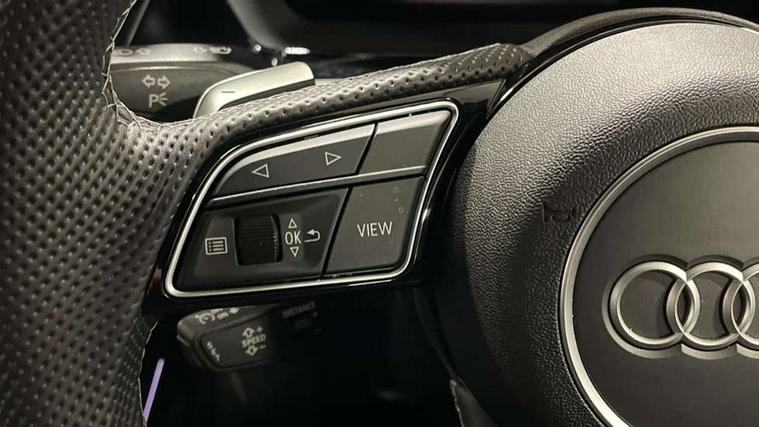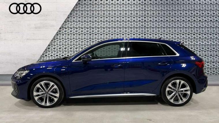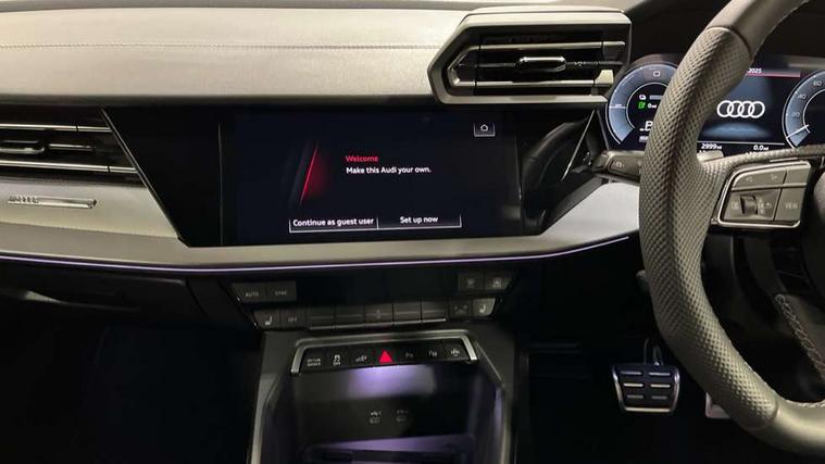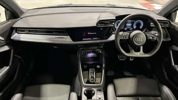 Adjustable speed limiter, Audi drive select, Audi smartphone interface with app store includes wireless Apple carplay, Android auto and Amazon alexa integration, Audi virtual cockpit plus - 12.3" full HD resolution dynamic digital instrument cluster, Automatic start/stop system with recuperation, Bluetooth interface, Camera based traffic sign recognition, Collision avoidance assistant, Cruise control, Distraction and Fatigue warning, e-Call (emergency call), Electromechanical power speed sensitive steering, Lane departure warning system, MMI Navigation Plus with high resolution 10.1" colour touch screen display, Park Assist with parking system Plus, Service indicator, Trip computer, Voice control system with natural language interaction, 3 pin 10 amp domestic charging cable, CCS socket for DC charging, Charging cable for public charging, mode 3 (type 2), up to 22 kW (AC), Compact charging system, Industrial connector CEE 32 A, 230 V, length 1.6 m, Standard suspension, Type 2 socket for AC charging, Audi Phonebox light with wireless charging, Audi sound system - 10 loudspeakers including centre loudspeaker and subwoofer, DAB Digital radio, USB ports with charging function in the rear, Acoustic glass windscreen, Aluminium window trim, Auto dimming frameless rear view mirror, Body colour exterior mirrors, Chrome exhaust tailpipes, Electrically adjustable/heated/folding/auto dimming door mirrors with integrated LED indications + kerb view function for passenger side, Exterior model badging, Front and rear side air inlets in grained matt black with dark liquid chrome frame, Front electric windows, Front radiator grill in high gloss dark chrome, Heat insulating glass windscreen, Illuminated door sills with aluminium inserts at the front with S logo, LED 3rd brake light, LED daytime running lights, LED headlights with LED rear lights and dynamic rear indicators, Light and rain sensors, Privacy glass - dark tinted rear window, rear door and side windows, Rear diffuser and grill in grained matt black with inlay in dark liquid chrome, Rear electric windows, Rear side wing doors, Rear wiper, S line bumpers, S roof spoiler, Side S line emblems on front wings, Side sill trim in dark liquid chrome, 12V socket and storage compartment in front centre console, 3 seat bench in 2nd row, 3 spoke flat bottomed leather multifunction sport steering wheel with gear shift paddles, 3-zone deluxe automatic air conditioning, 4 way electrically adjustable lumbar support for driver and front passenger, 40/20/40 split folding rear seat bench, Black cloth headlining, Convenience auxiliary air conditioning, Front and rear centre armrest in artificial leather, Front and rear centre armrest in artificial leather with contrasting stitching on armrests and instrument panel, Front and rear headrests, Front/rear floor mats, Heated front seats, Height and reach adjustable steering wheel, Manual boot compartment lid, Manually adjustable front seats, Rear cup holders, S badging on the steering wheel, Seat side bolsters, Single front passenger seat, Stainless steel pedals and front footrest in black, Twin leather upholstery with front sports seats S embossed logo, Aluminium interior elements pack - A3 Sportback, Multi-coloured LED interior lighting package - A3, 3x3 point rear seat belts, Acoustic vehicle alerting system, Driver and front passenger airbag with passenger airbag deactivation, Electronic Stabilisation Control (ESC) including ABS, ASR and EDL, First aid kit with warning triangle and 2 safety vests, Front side airbags with head airbags and interaction airbag, Hill hold assist, Pre-sense front with pedestrian and cyclist detection, Seatbelt monitoring, Tyre pressure loss indicator, Anti theft alarm, Anti-theft wheel bolts, Electronically operated child locks, Immobiliser, Remote central locking with safelock, Dash & door Inlay in dark aluminium Spectrum, Tyre repair kit,