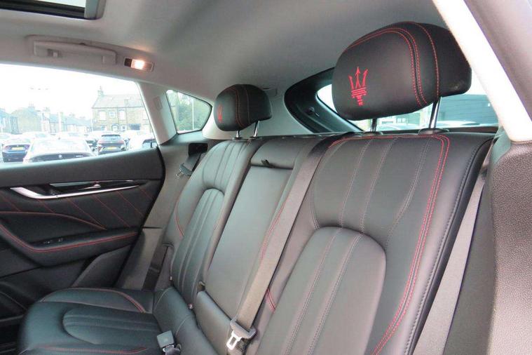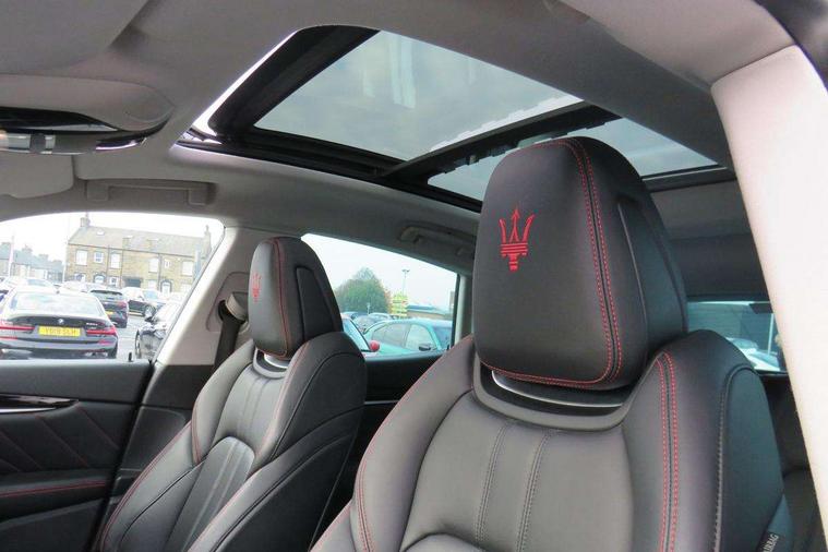 7" multifunction digital display cluster with on-board computer and driver information, Apple car play/Android Auto, Drive mode selector, Front and rear parking sensors with graphical display on central digital cluster, Instrument cluster in black with white retro illuminated dials, Maserati connected services including connect app, maintenance, emergency call, breakdown call, Maserati guide, drive and guard, Maserati dash mounted design specific clock, Maserati Touch Control + 8.4" touchscreen display with rotary control, include Android Automotive OS, Nav system, DAB radio, Bluetooth, AHA, Car setup, Off road mode setting via off road button, Power tailgate, Service indicator, SIRI smart personal assistant, Speed sensitive power steering, Sport mode setting via sport button, Stop/start system, Adaptive air suspension, High double wishbone front suspension with 5-arm multilink rear suspension, Mechanical limited slip differential, Skyhook - Electronically variable active damping suspension system, ZF 8 speed automatic transmission with tip up/down function from gear knob and fully manual mode, Air shutter control, Anti trap windows, Auto dimming door mirrors, Automatic headlamp activation, Body colour lower mouldings - lower bumpers, wheels arches and sides, Body coloured side skirts, front and rear fascias with chrome inserts on front fascia, Chrome effect boot sill finishers, Chrome line exterior, Dark finish skid plates, Demist sensor, Electrochromatic electrically adjustable foldable and heated exterior mirrors with integrated LED indicator lights, Electrochromatic rear view mirror, Front and rear electric windows with one touch/anti pinch, Full LED adaptive matrix headlights with anti glare high beam assist, Heated rear windscreen, Laminated front glass with high thermal and noise insulation, LED front and rear foglights, LED tail lights and third stop light, Rain sensor, Sport rear spoiler in body colour, Twin, dual pipe exhaust system in chrome plated stainless steel, 12 way power front sports seats with two memory settings for driver side, 12V socket in luggage compartment, 3 spoke multifunction steering wheel, 60/40 split rear bench seat, Air conditioned front passenger glove box with USB Socket, Air quality sensor, Brushed stainless steel sports pedals, Driver and passenger sunvisor with mirror and courtesy light, Front and rear courtesy lamps, footwell lights and door panel handle LED lights, Front armrest with twin mechanical opening, with illuminated storage compartment, air conditioned and 12V socket, One 12V socket and two USB sockets for rear passengers, Power height and reach adjustable steering column, Rear armrest with 2 cupholders, Rear seats with ski hatch, Soft close doors, Sports seats, Through load system including ski bag, Velour floormats, 3x3 point rear seat belts, All wheel drive intelligent Q4 system with torque vectoring, Curtain airbags, Drivers knee airbag, Dual stage Driver/Passenger side, window Airbags, Electronic parking brake, Front seat belts with pre-tensioners and load limiters, rear seat belts with load limiters, Hill descent control, Hill holder, Increased Control and Efficiency (I.C.E), Integrated vehicle control, Maserati Stability Programme (MSP) with ASR, ABS, EBD, BAS and MSR, Passenger airbag deactivation system, Tyre Pressure Monitoring System (TPMS) with pressure displayed within the central digital cluster, Ventilated brakes with 380mm X 34m with 6 piston fixed callipers at front, 330mm X 22mm with single piston floating callipers at rear, Aluminium key fob, Maserati NavTrak vehicle tracking system with Automatic Driver Recognition and Remote Inhibition, Perimeter alarm system including volumetric sensing, anti-lift device and electronic immobiliser, Remote central locking,