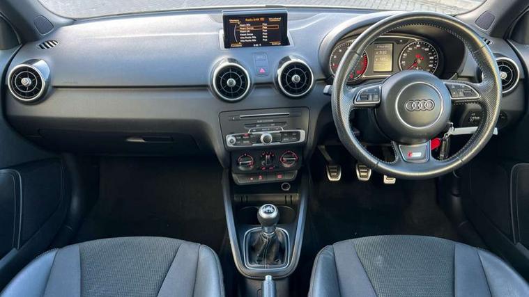 Audi drive select, Driver's information system, Electro-mechanical PAS, Low washer fluid indicator, Service interval indicator, Voice control system, Additional SD card reader, Audi music interface, Bluetooth audio streaming, DAB Digital radio, Adaptive brake lights, Adaptive Xenon headlights plus with LED daytime running lights, dynamic range control and headlight washers, Body coloured bumpers, Electric adjustable door mirrors, Electric front windows, Front fog lights, Heat insulating glass, Heated door mirrors, Heated rear windscreen, LED rear lights, Rear diffuser, Rear wiper, Roof spoiler, S Line body styling, 12V Accessory socket in centre console, Adjustable rear head restraints, Black cloth headlining, Cupholders in centre console, Door sills trims with aluminium inlays, Front floor mats, Front head restraints, Front seats - 'Easy Entry', Height adjustable front seats, Illuminated glovebox, Isofix attachments on rear seats, Jack and tool kit, Leather handbrake, Lumbar adjustment for front seats, Rake/reach adjustable steering wheel, Split folding rear seats, ABS/EBD, Brake assist function, Driver and passenger side airbags, Driver/Front Passenger airbags, EDL, ESP with ASR, First aid kit, Front and rear seatbelt reminder, Front passenger airbag deactivation, Head airbags, Height adjustable front seatbelts, Rear three point seatbelts x 2, Tyre pressure monitor, Warning triangle, Locking wheel bolts, Remote control central locking, Thatcham category 1 alarm + immobiliser, Tyre repair kit,